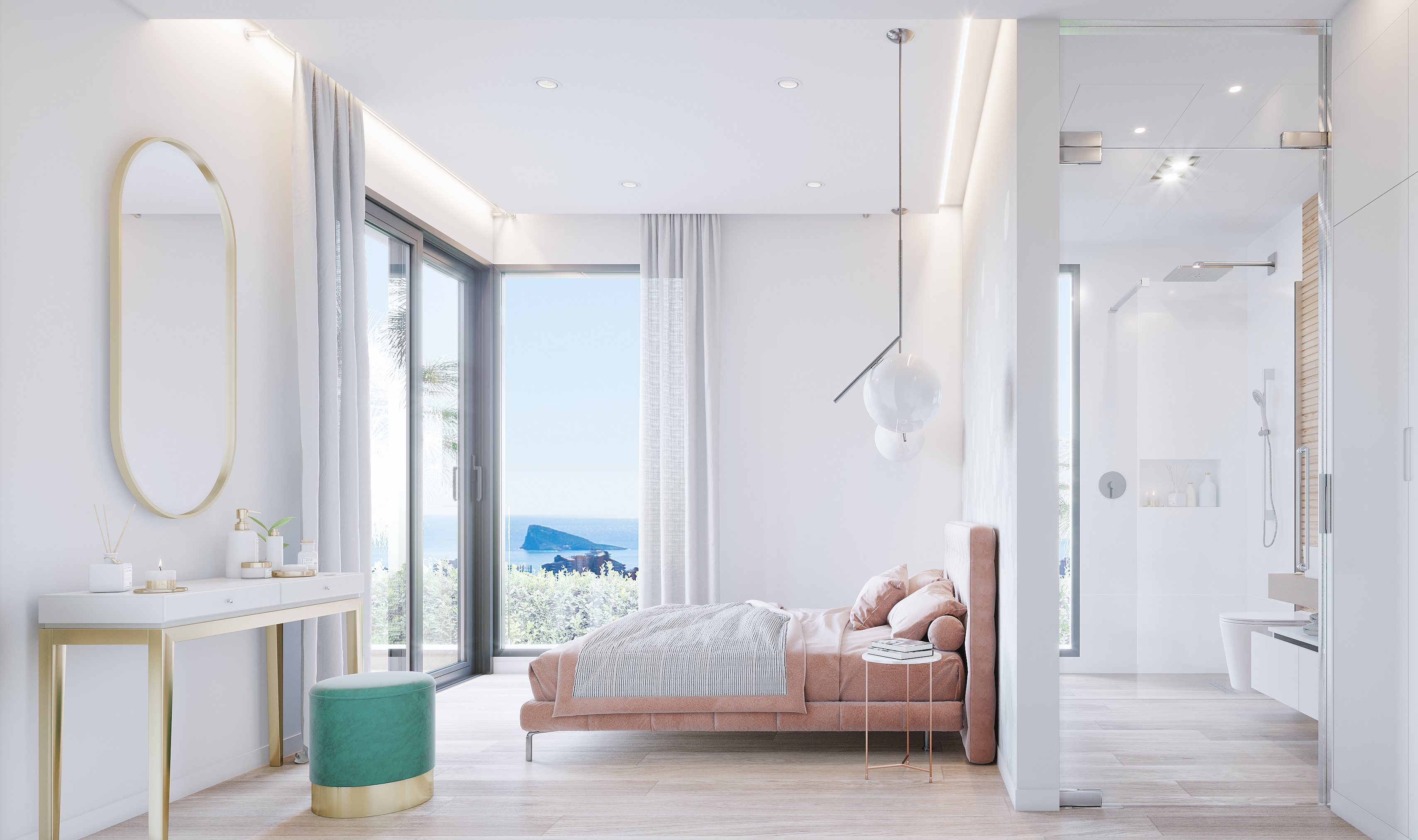 3 soveværelser, 3 badeværelser, garage, terrasse og have. Fuldt udstyret køkken og badeværelser. Forinstallation til klimaanlæg. Fantastisk udsigt til Sierra Cortina og Middelhavet. Tæt på golfbane, marina, spa og faciliteter. 5 minutter til Benidorm.