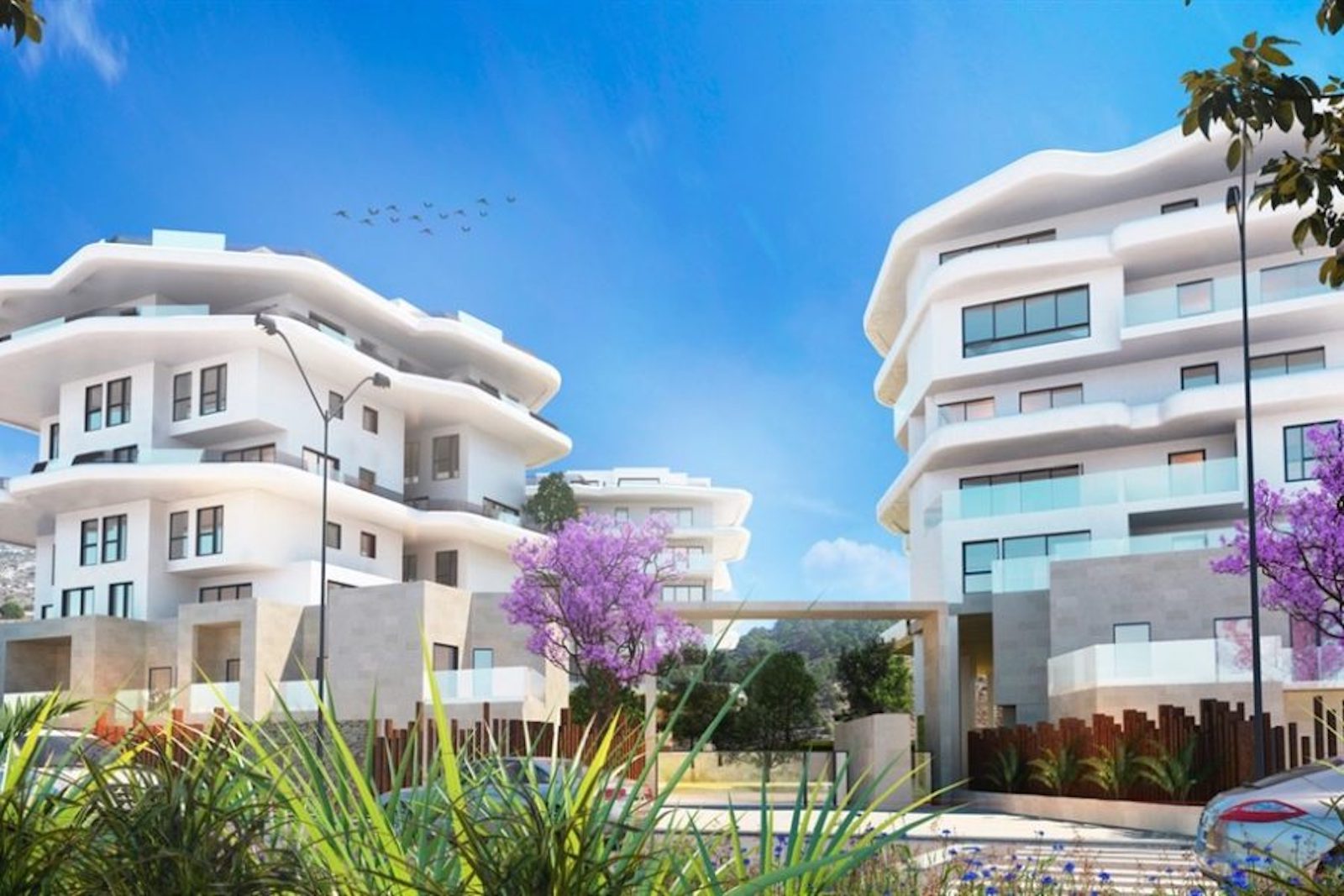 Boligerne er moderne og innovative og der er mange boligtyper at vælge imellem: byhuse, lejligheder i to plan, lejligheder og penthouses. Alle boligerne har store middelhavsvendte terrasser og komplekset er bygget af høj kvalitet og indeholder eksklusivt udstyr som komplet klimaanlæg, omhyggeligt udvalgte gulvbelægninger og vægbeklædning, køkken- og badeværelsesudstyr af velrenommerede mærker. Garage/parkering og opbevaring er inkluderet.