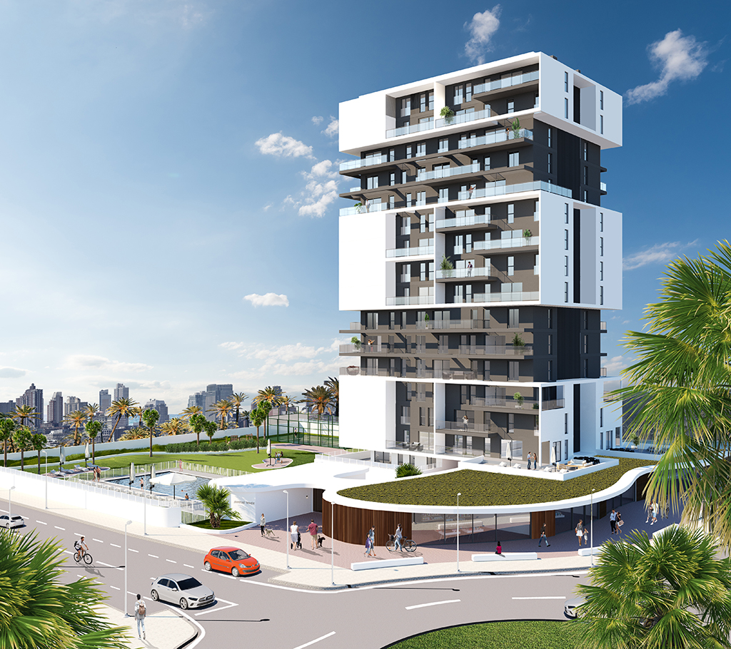 Projektet er kendetegnet ved et innovativt arkitektonisk design på 16 etager i en bygning med den bedste udsigt over Calpe, Peñón de Ifach naturpark med sin betagende klippe som er blevet byens vartegn; en uovertruffen beliggenhed, kun få minutters gang (350 meter) fra den fantastiske Arenal-strand, hvor du kan nyde en spadseretur langs den smukke promenade. Området er også godt forbundet til Alicante med motorvej AP-7, og ligger kun en time fra Alicante lufthavn.