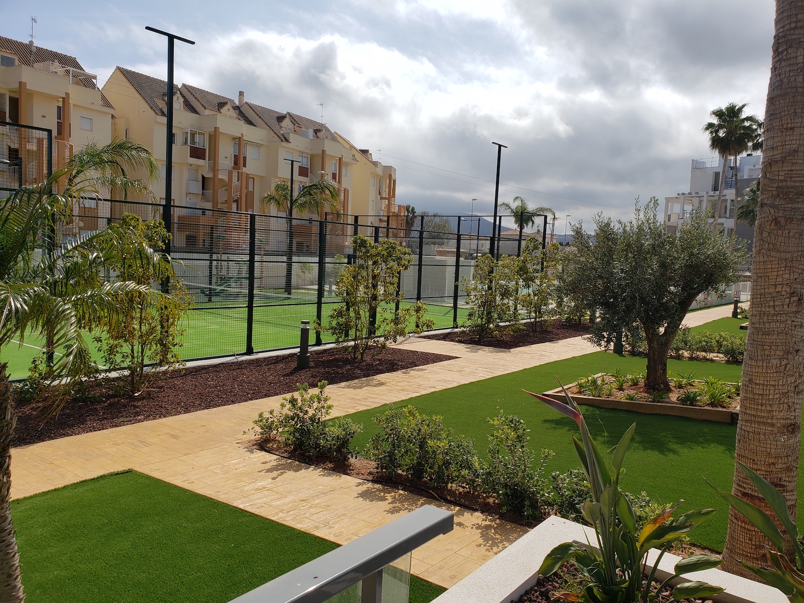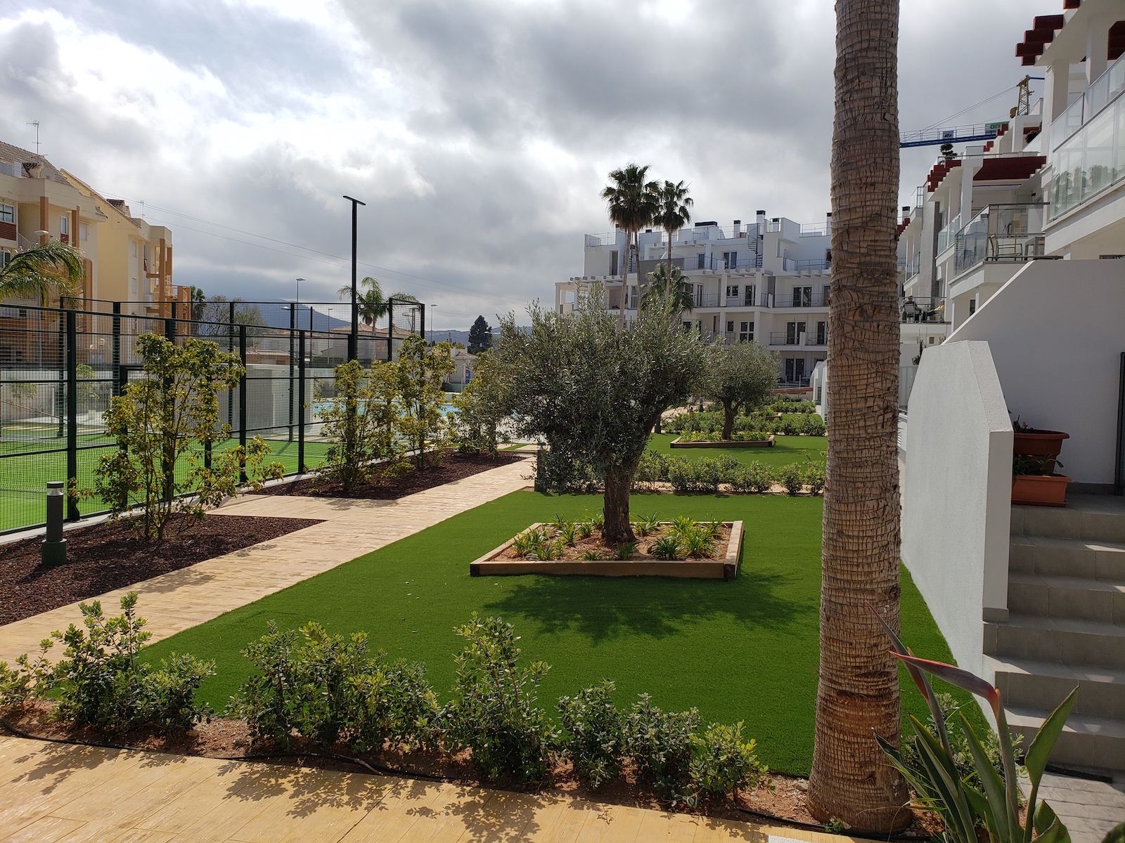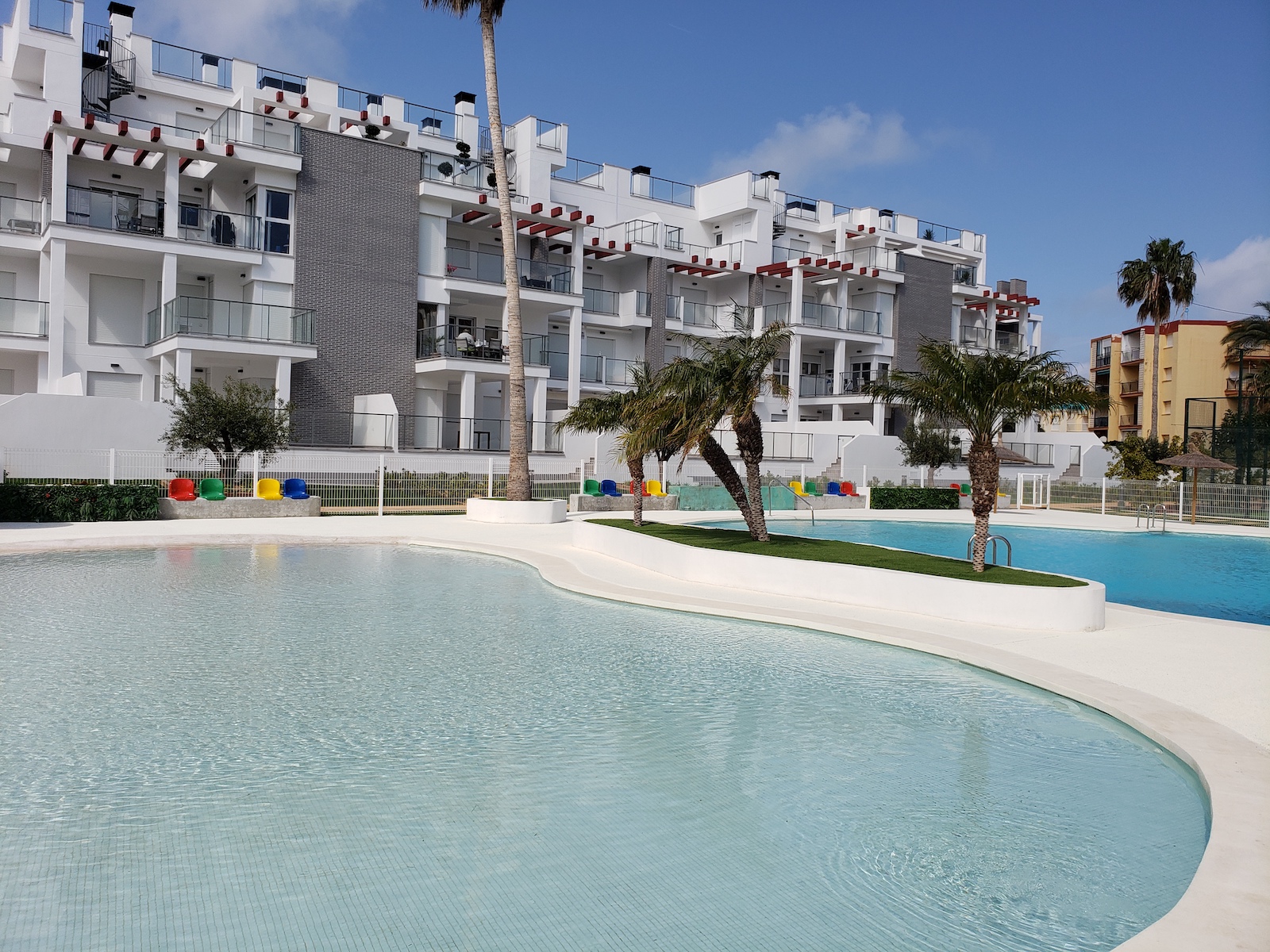 Lejlighedskompleks kun 5 min. til fods fra havet i Denia med smukke haveområder, natbelysning i fællesarealerne, en legeplads, underjordisk parkering, fælles pool for voksne og børn.