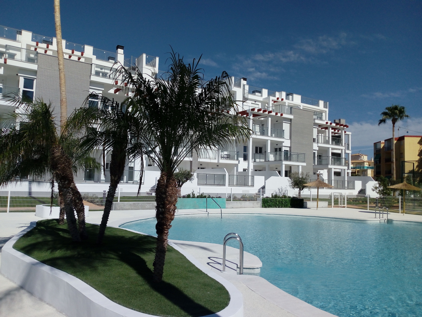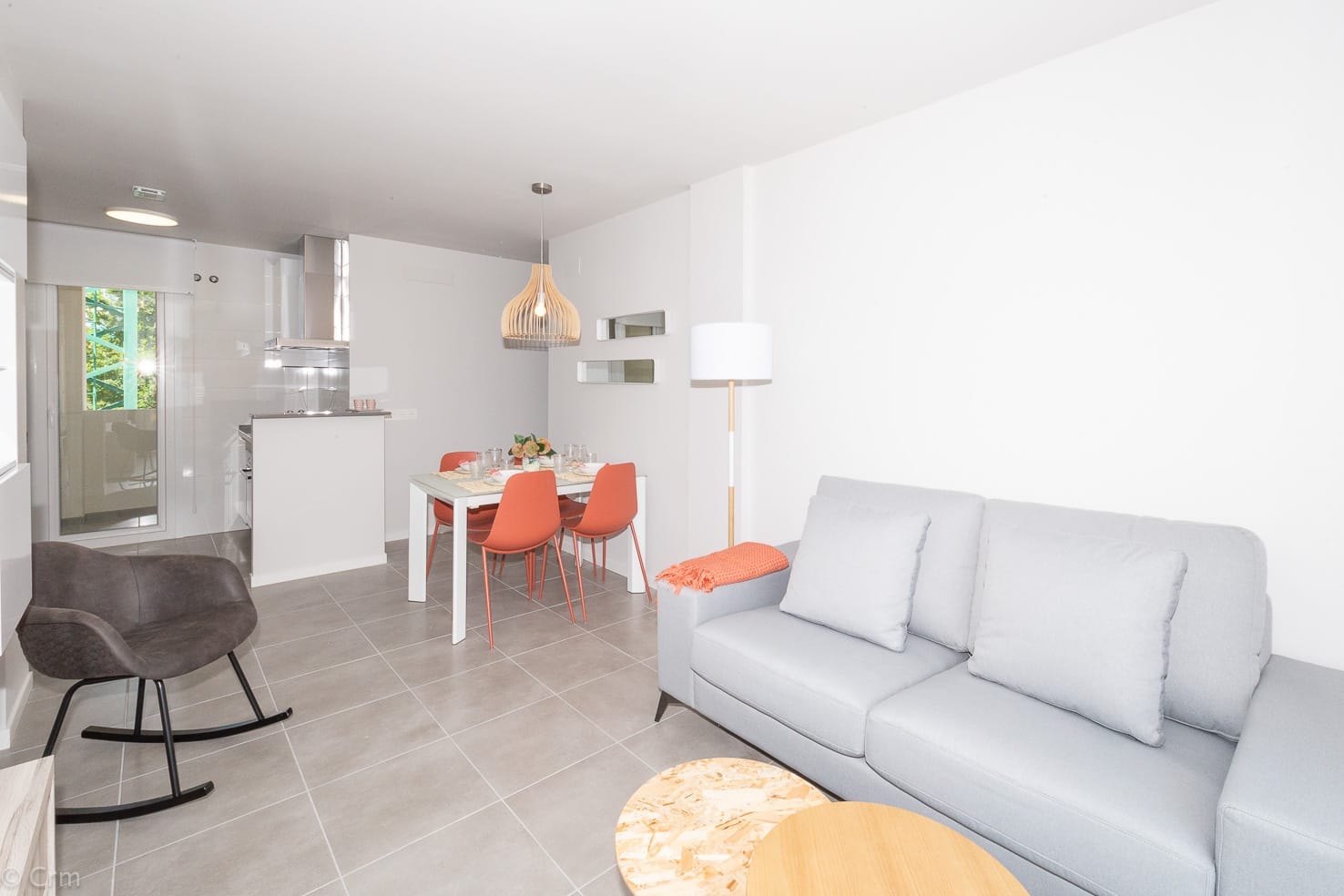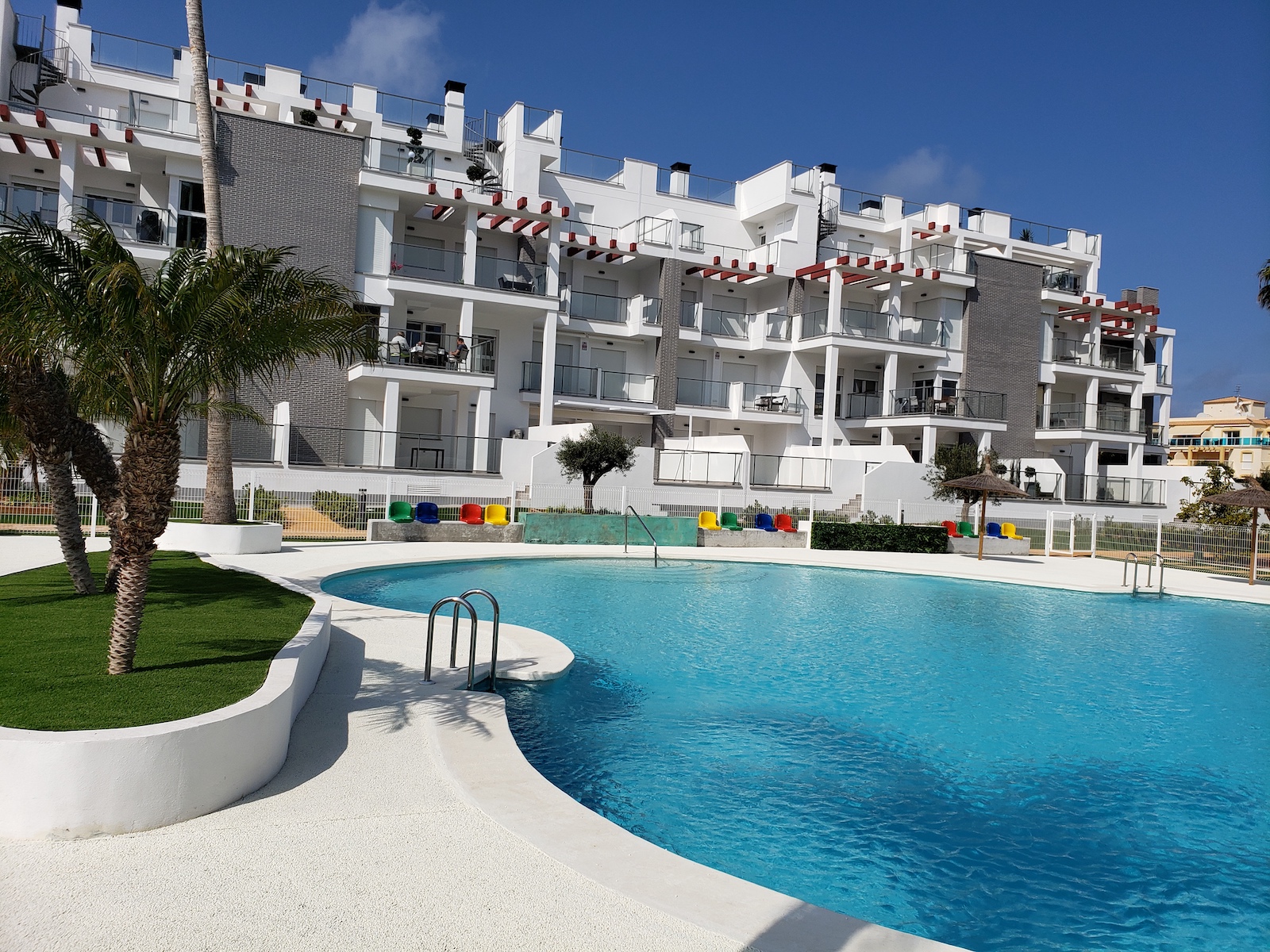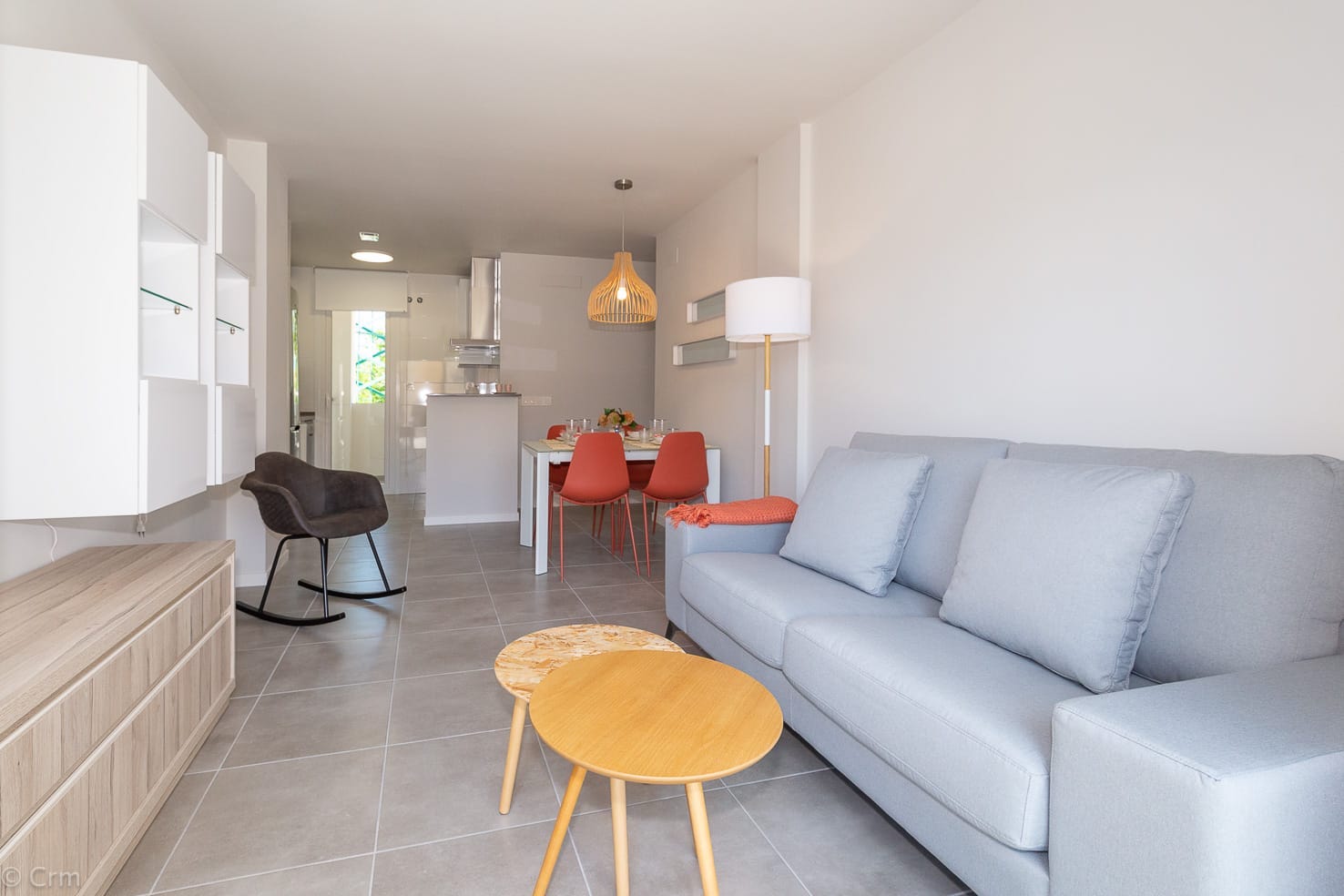 Lejlighedskompleks kun 5 min. til fods fra havet i Denia med smukke haveområder, natbelysning i fællesarealerne, en legeplads, underjordisk parkering, fælles pool for voksne og børn.
