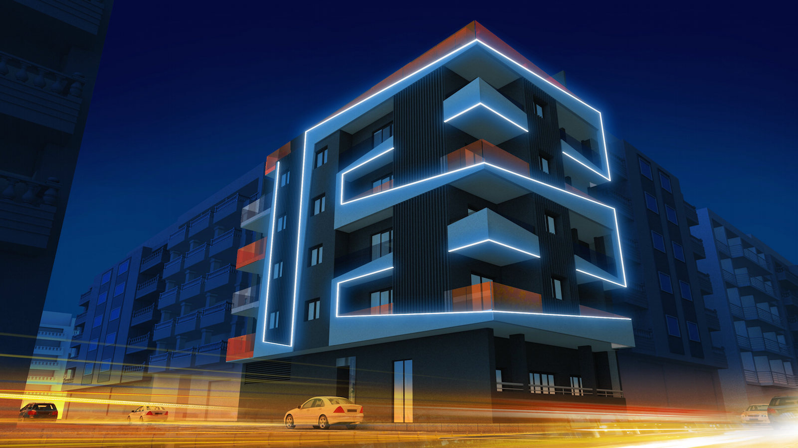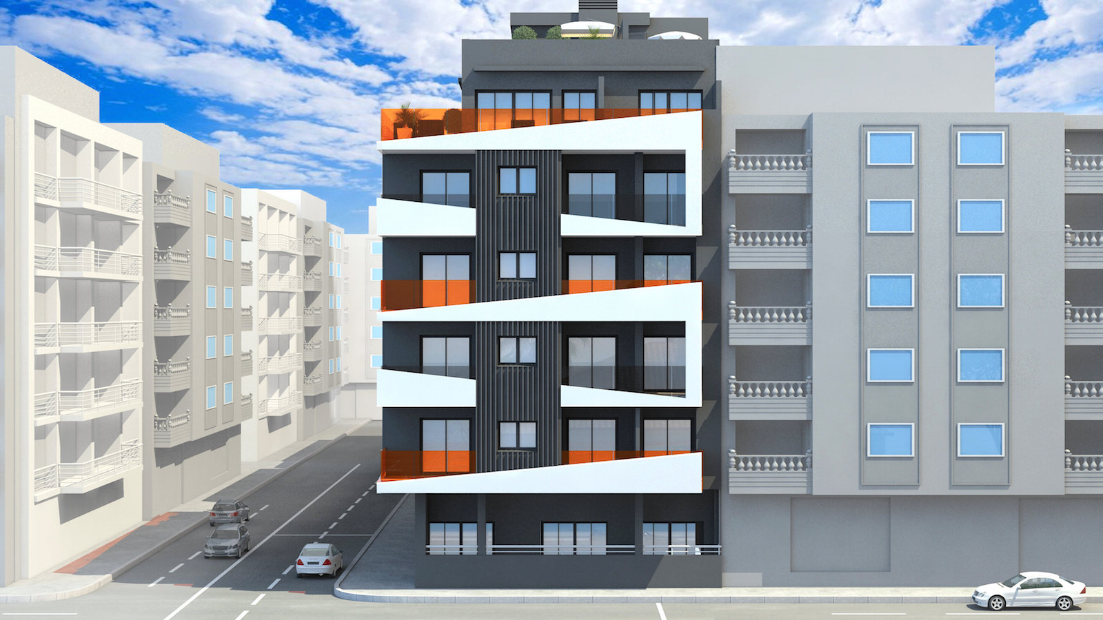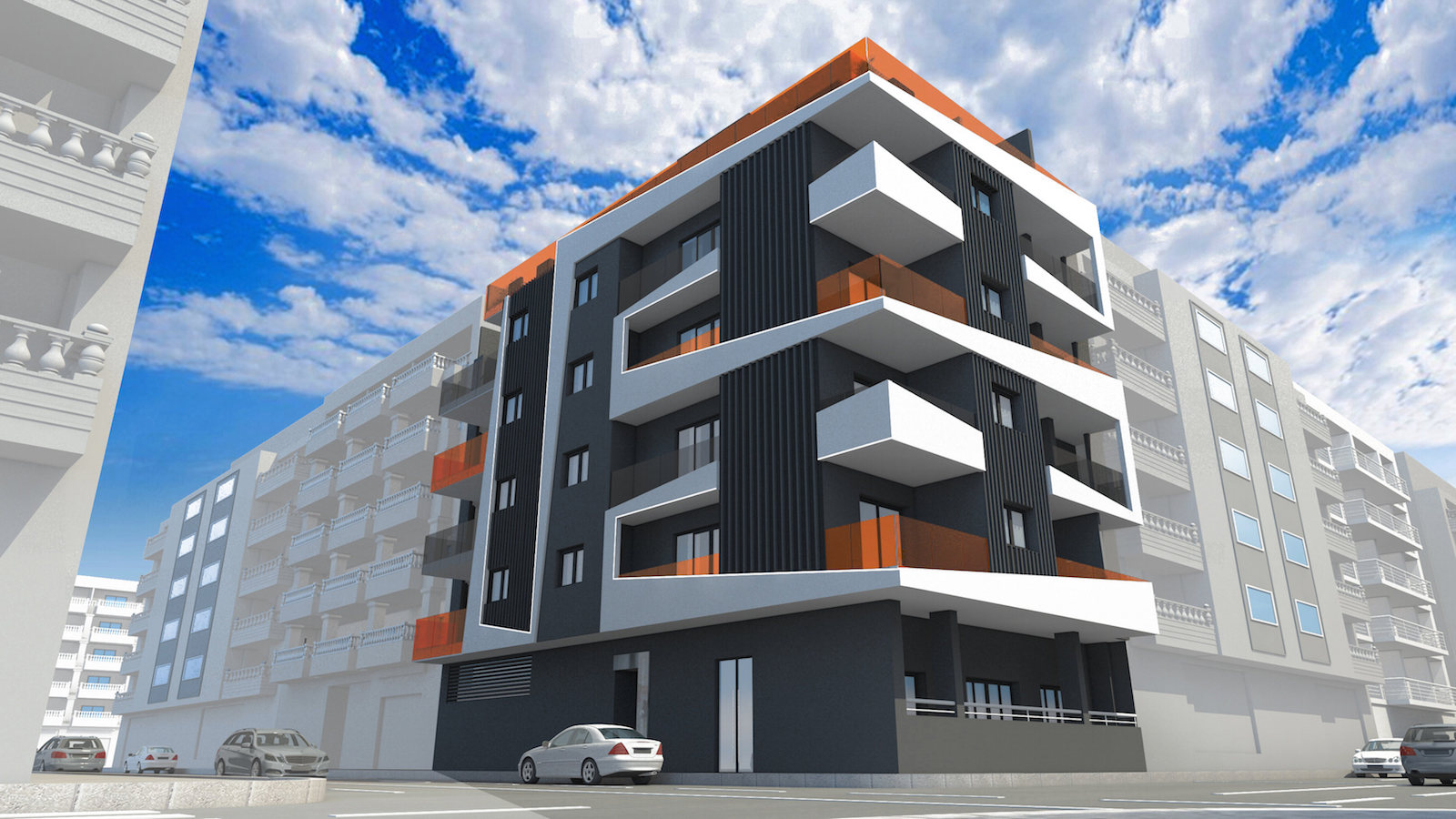Vi præsenterer dette projekt med 19 lejligheder perfekt beliggende i Torrevieja. Komplekset på 6 etager, med en enestående og moderne facade, inkluderer lejligheder med 1 og 2 soveværelser, chill-out område, klimatiseret pool og finsk sauna.