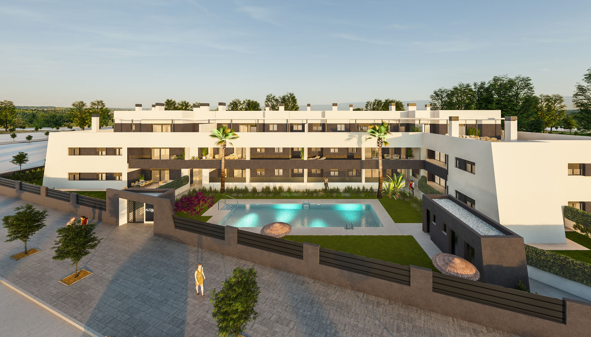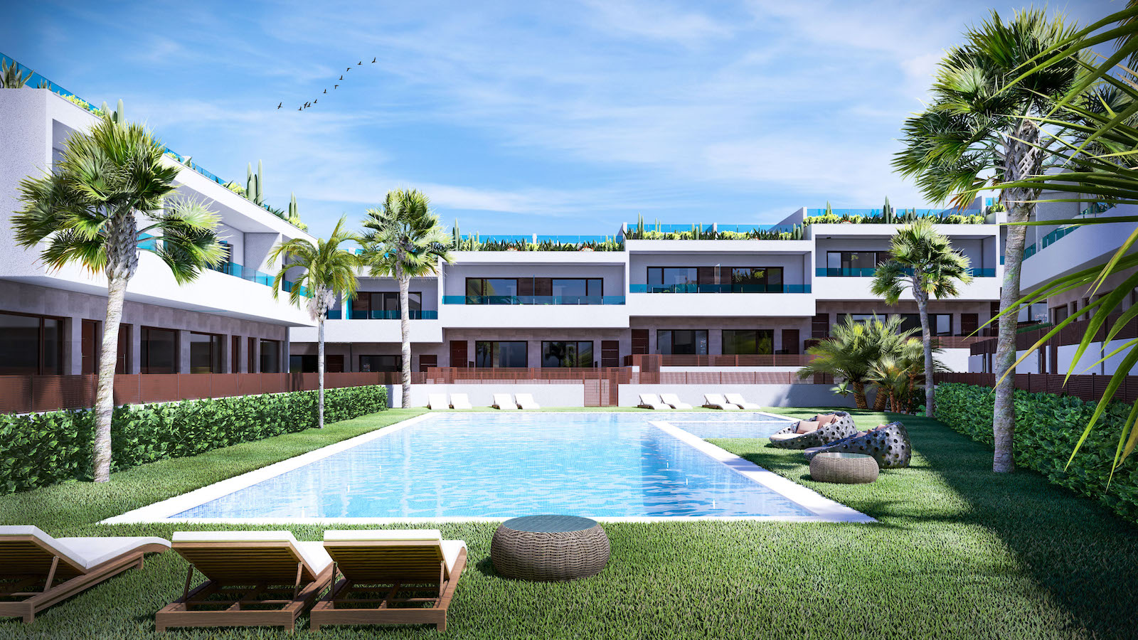 Dejlige nye duplex rækkehuse med 3 soveværelser + 3 badeværelser, solarium med udsigt over havet og lagunen og en stor fælles pool.