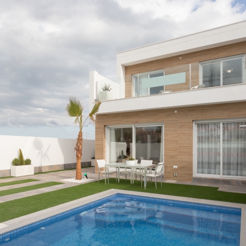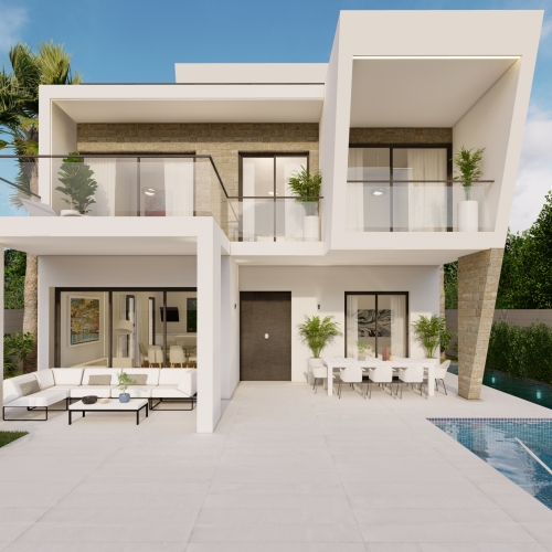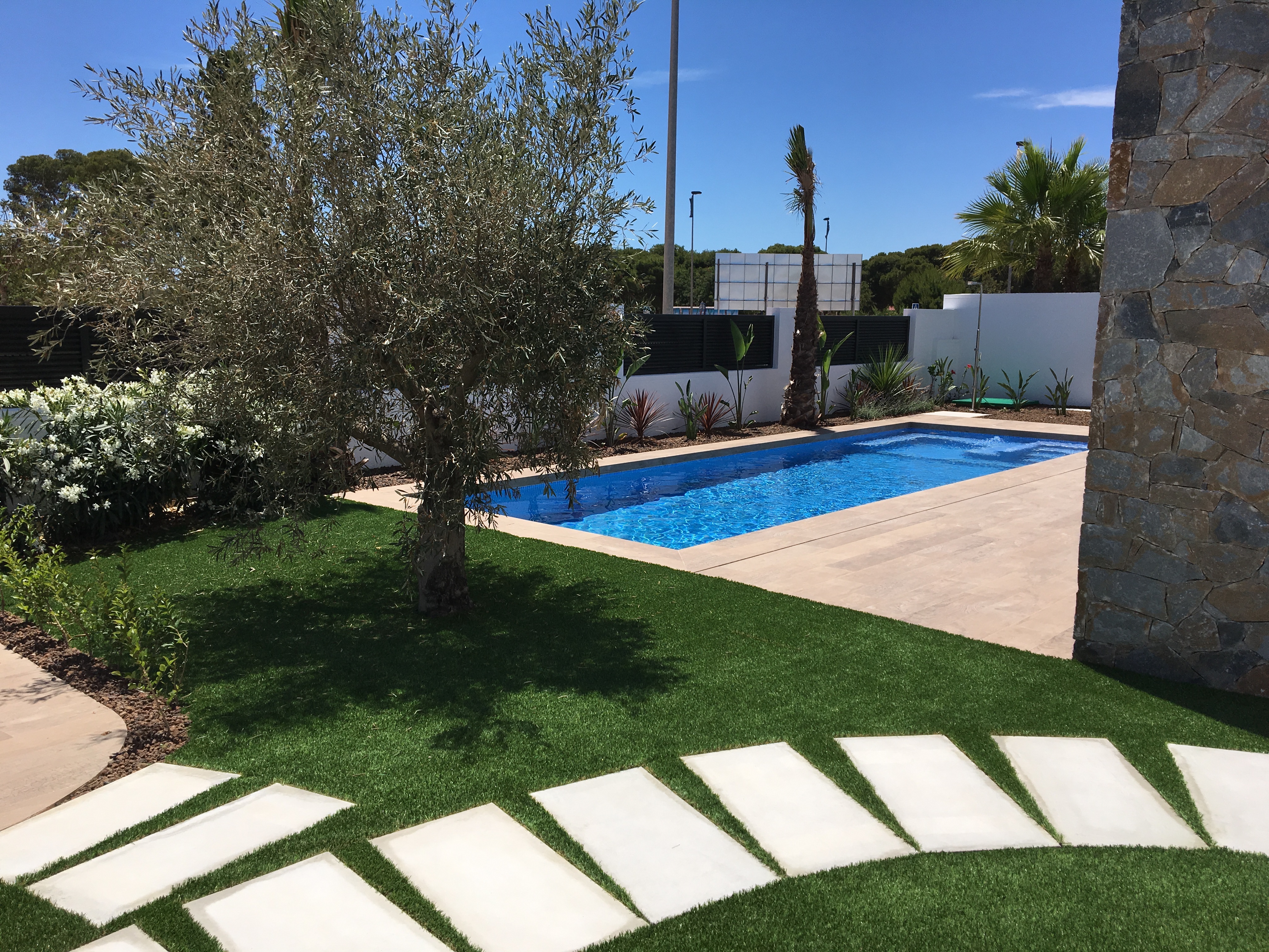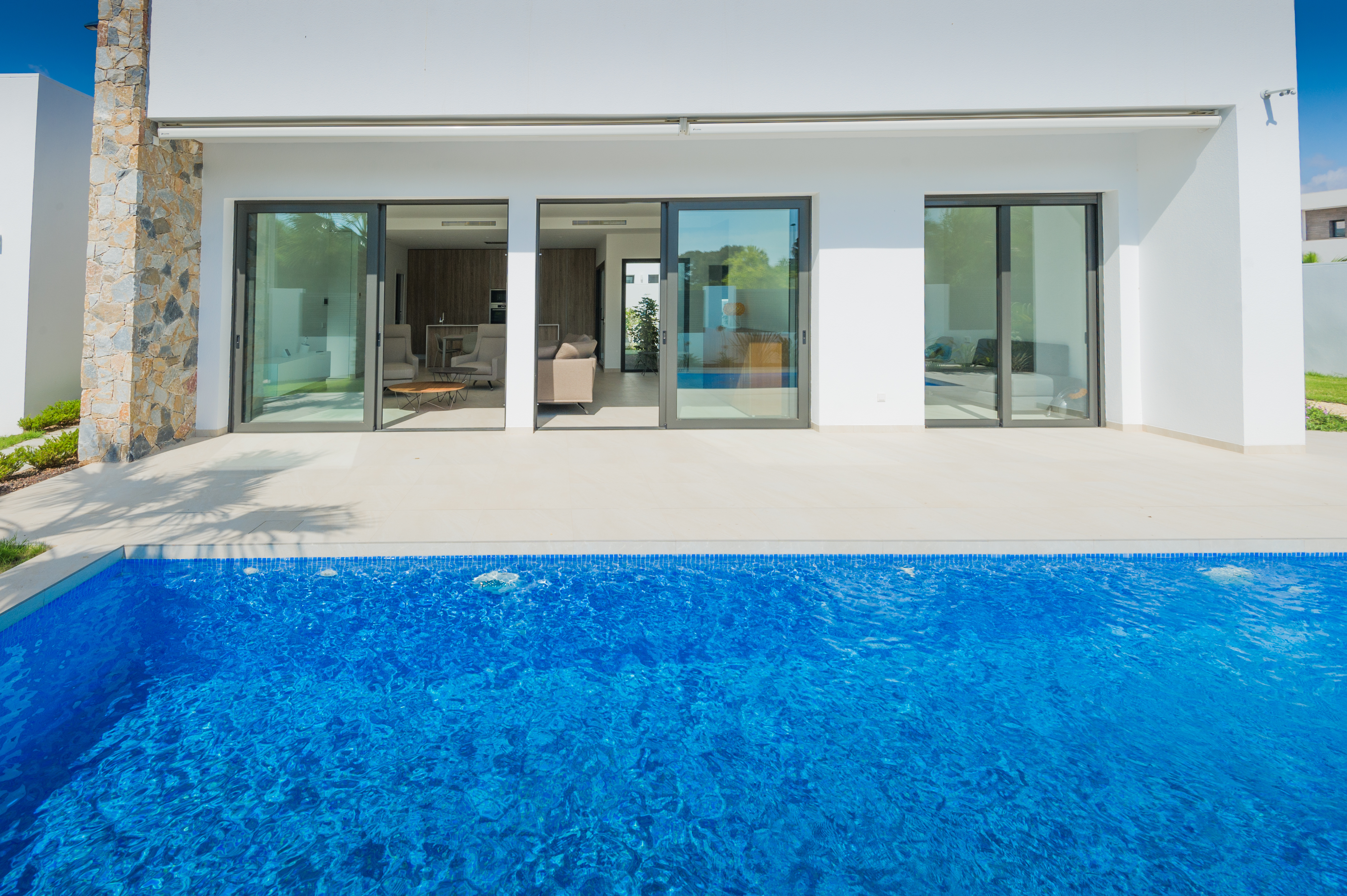 Storslået villa med privat pool i Pilar de la Horadada, tæt på alle faciliteter, 1 km fra golfbanen Lo Romero og 3 km fra stranden.