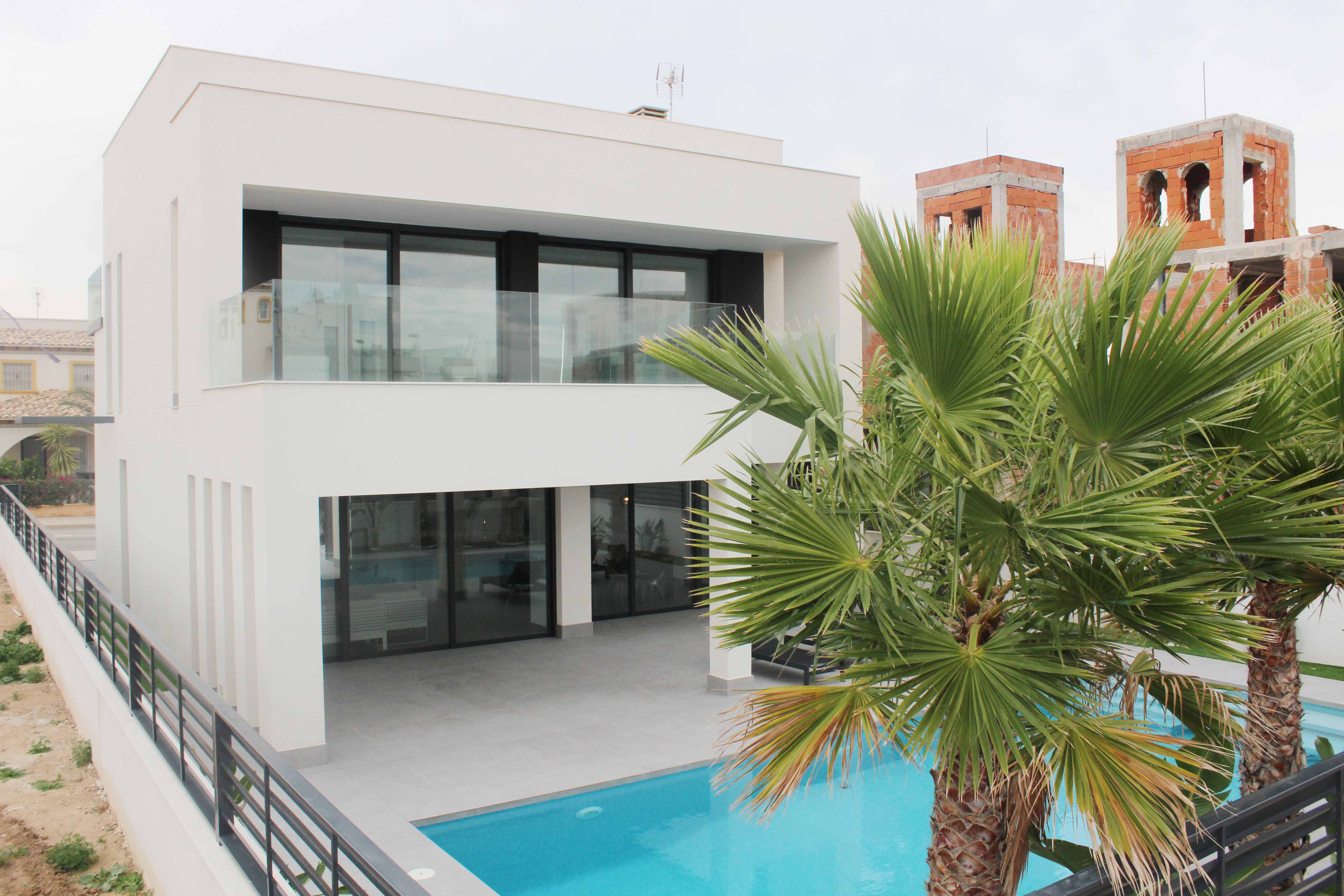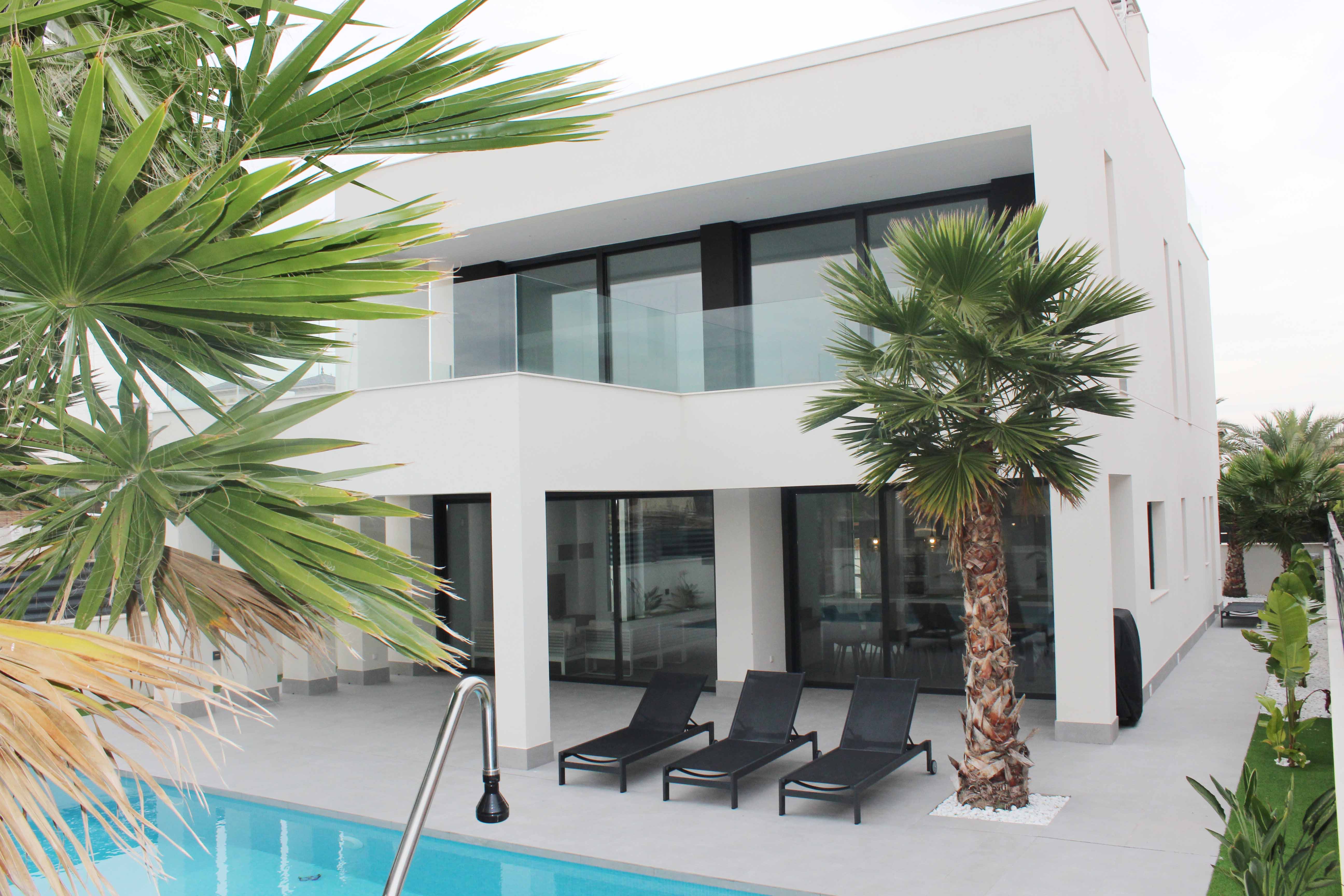 Designervilla med privat pool 250, beliggende blot 250 meter fra havet i El Pinet.