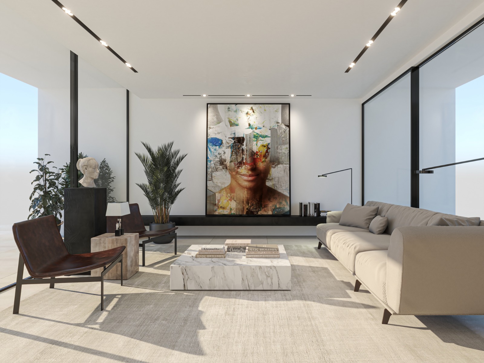Når du kommer ind i villaen, har du en god udsigt gennem entreen, køkkenet, spiseområdet, stuen og hele vejen til den anden ende af grunden.