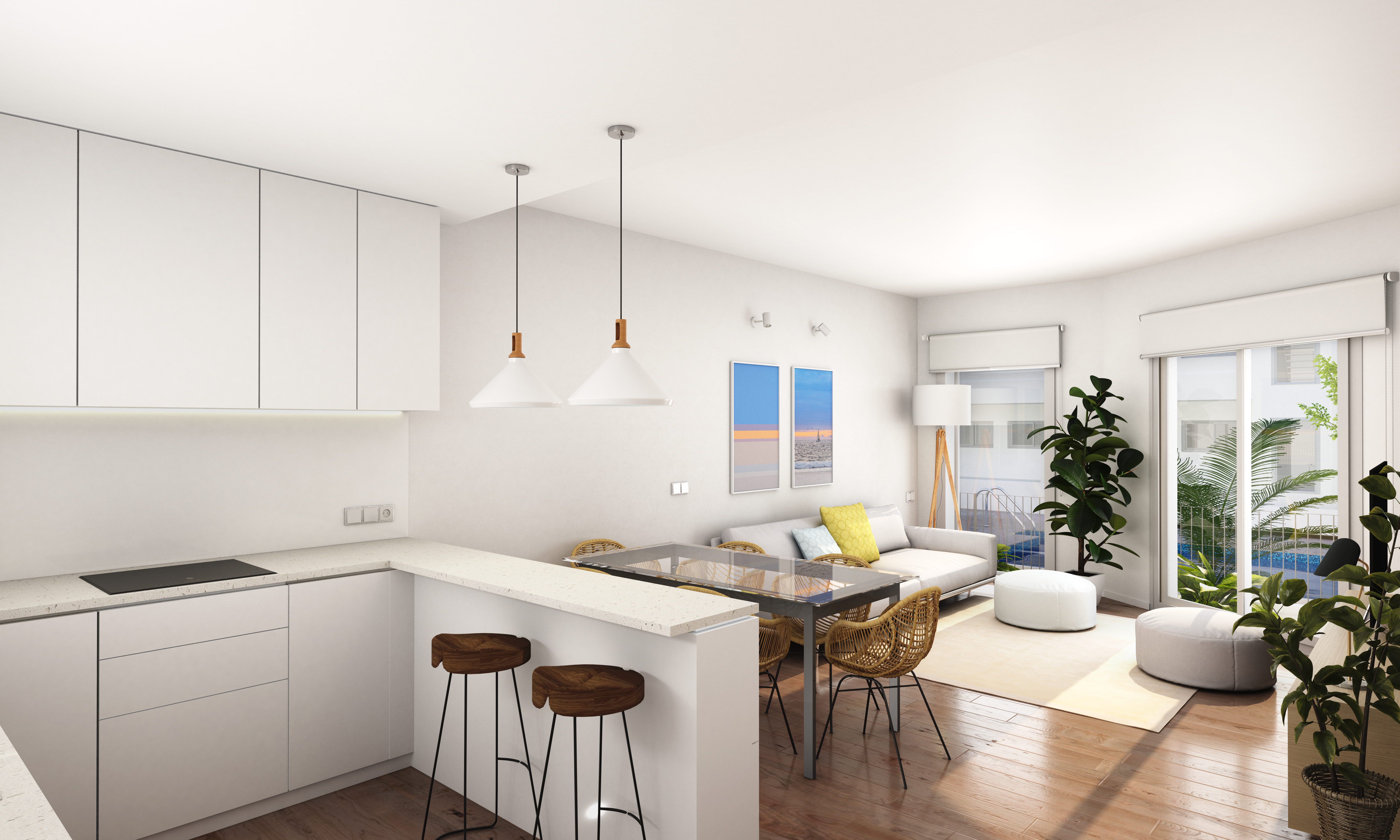 Komplekset består i alt af 125 boliger. Lejligheder i stueetagen med 2 og 3 soveværelser med have, lejligheder på øverste etage med 2 og 3 soveværelser med solarium og duplex med 3 soveværelser, have og solarium.