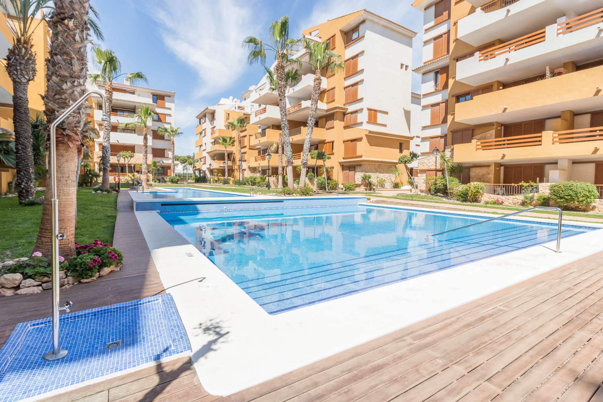 Disse nye lejligheder har en førsteklasses beliggenhed i Punta Prima. Denne udvikling er tæt på stranden med adgang til havet og stranden kun få meter væk. Alicantes internationale lufthavn ligger kun en times kørsel derfra. La Recoleta er bygget i traditionel middelhavsstil med brede veje ned til havet, pletfri haveområder med smukke pool områder, hvilket gør dette til et perfekt sted at slappe af og nyde det fantastiske klima året rundt.