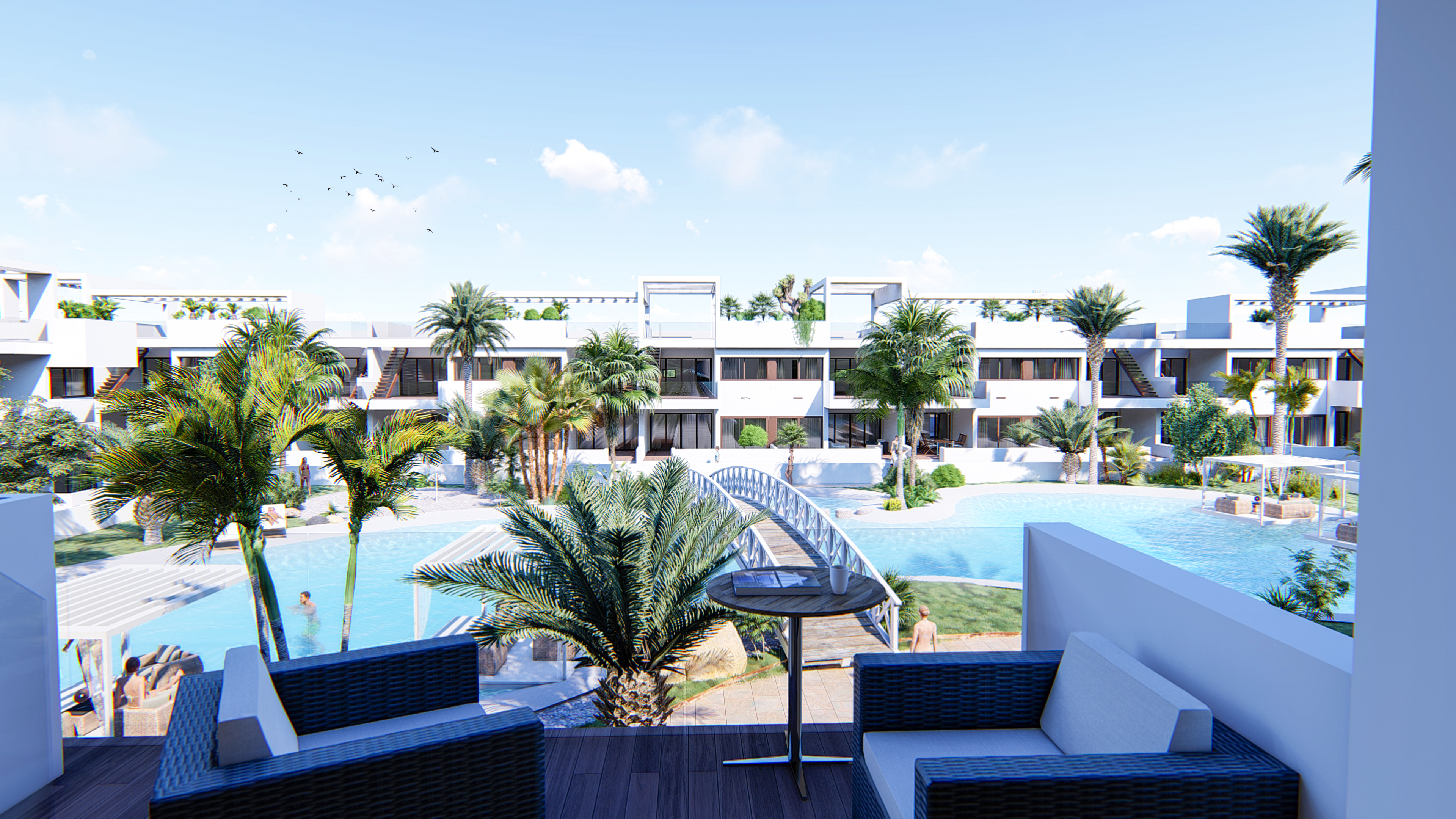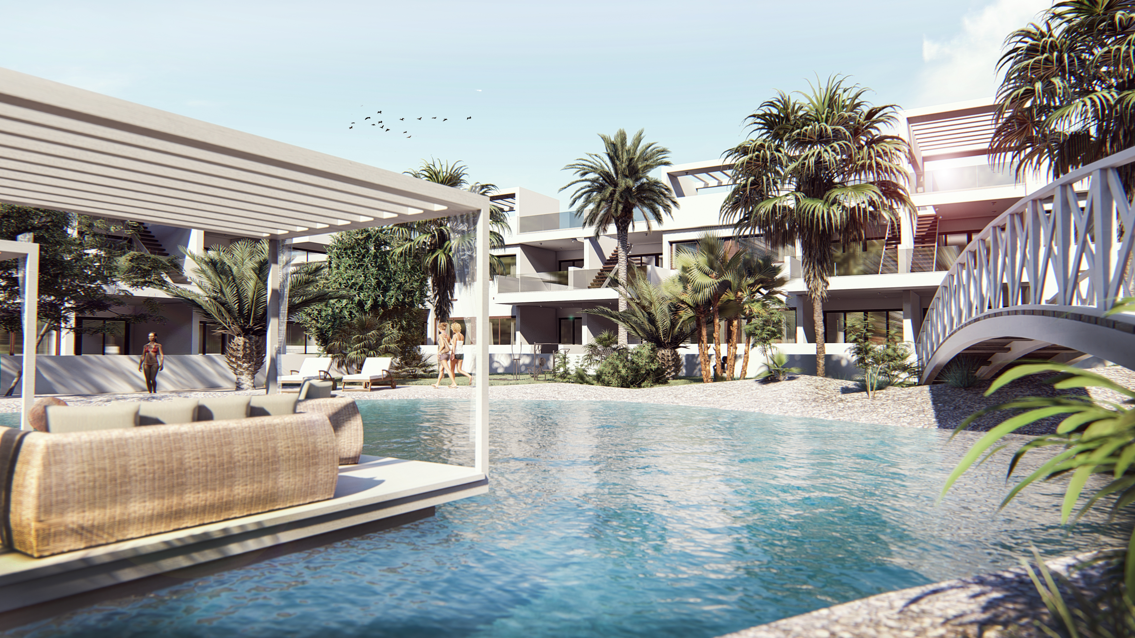 Projektet ligger lige foran det naturlige område i Salinas i Torrevieja og giver dig en utrolig udsigt over Laguna Rosa og Middelhavet. Omgivet af: Restauranter, hospitaler, supermarkeder og golfbaner.