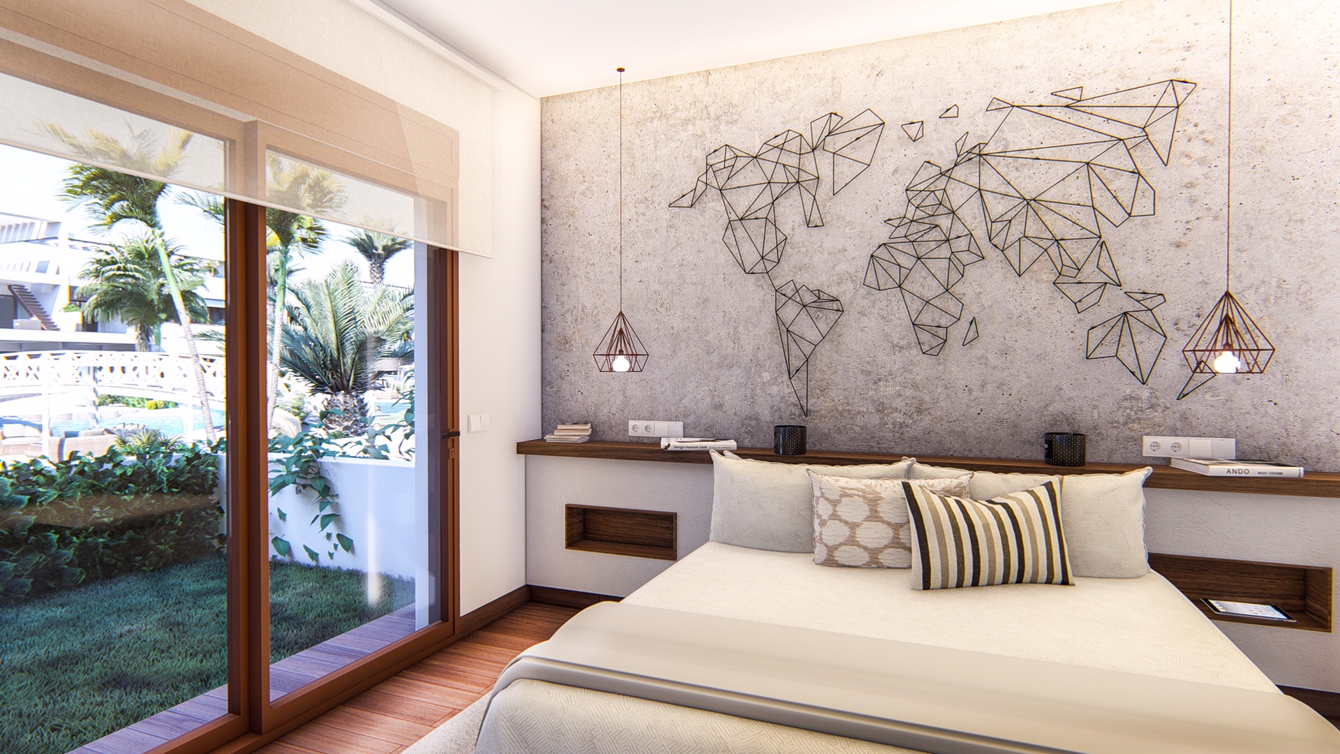 Komplekset består af 64 rækkehuse alle har 2 soveværelser og 2 badeværelser. Stueetagen med terrasser på forsiden og på bagsiden af huset. Øverste etage har en terrasse foran og et imponerende solarium på 74m².