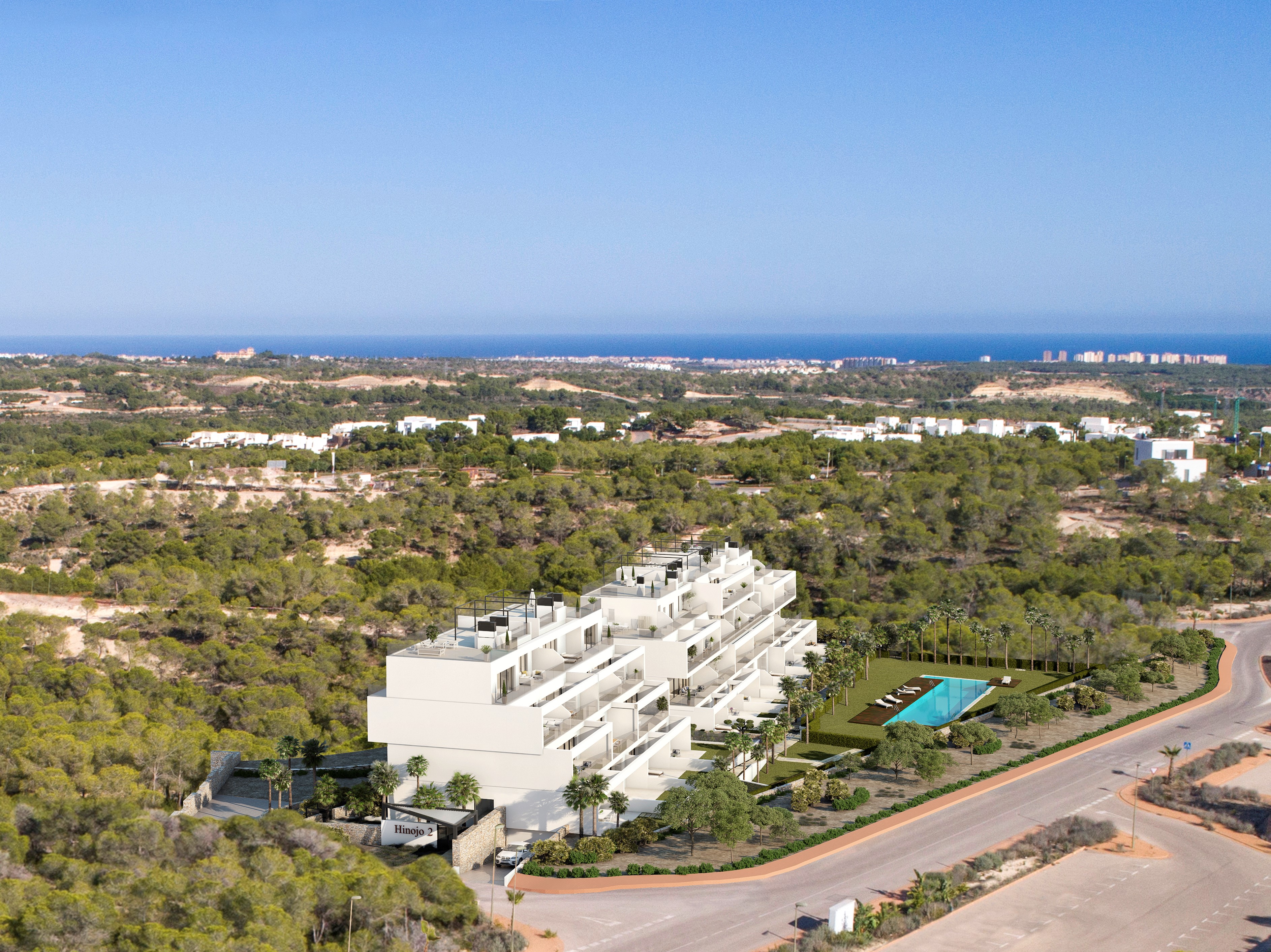 2 og 3 soveværelses lejligheder på Las Colinas Golf & Country Club i det nye samfund "Hinojo". Hinojo samfundet ligger på et højt punkt i Las Colinas og med panoramaudsigt over skoven og havet.