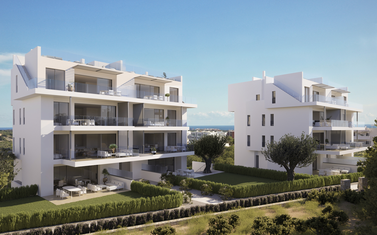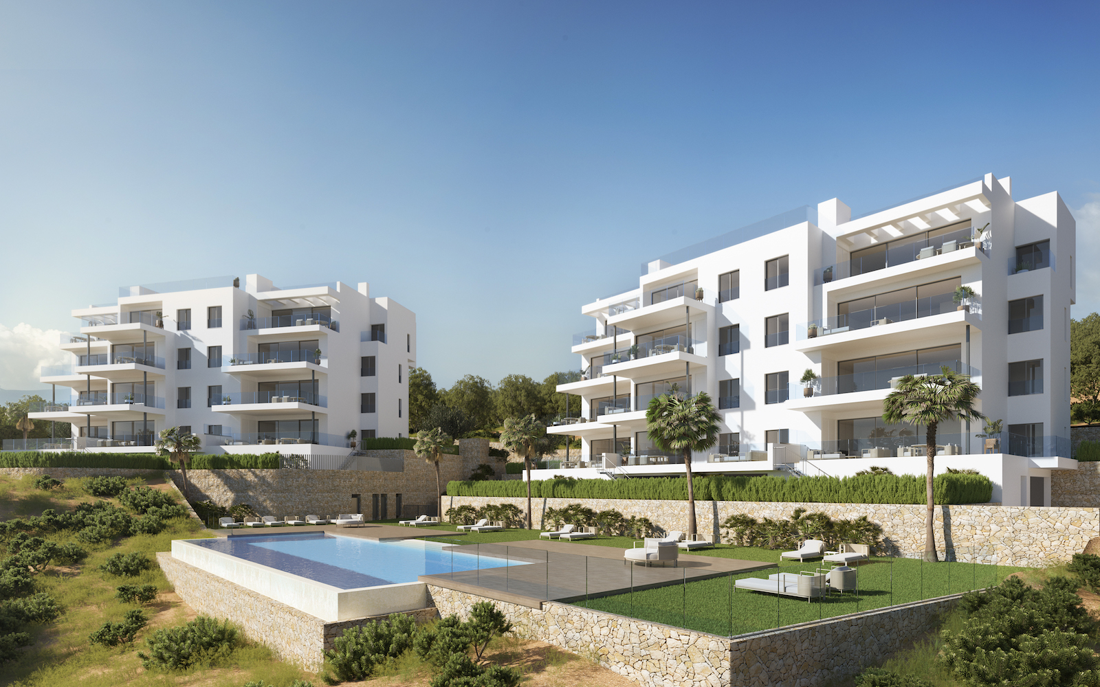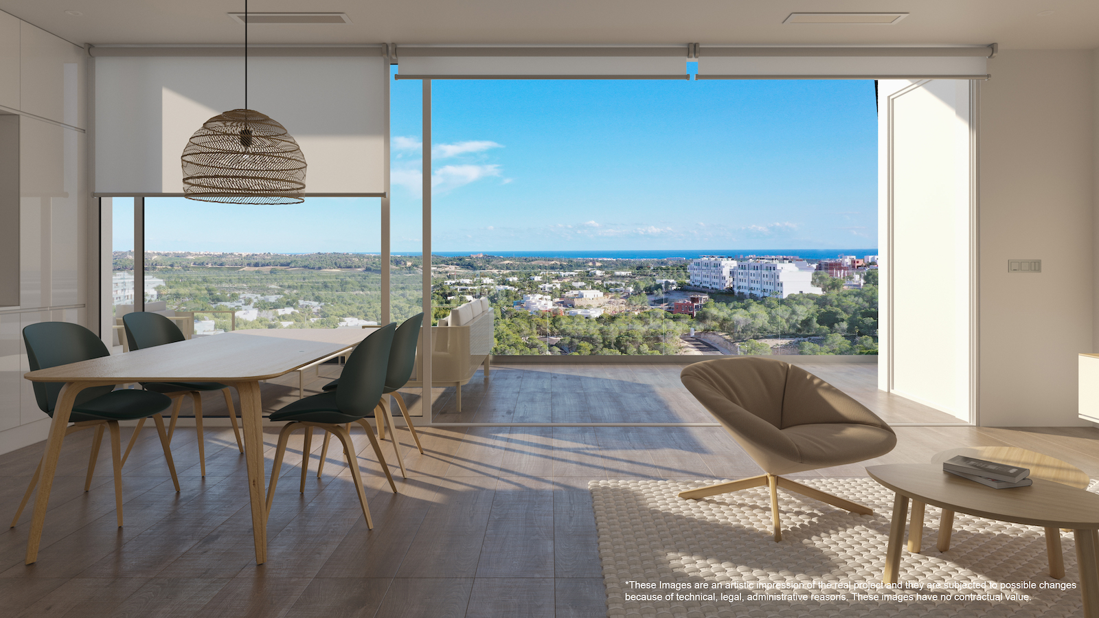 Dette består af to bloks med 16 luksuslejligheder: 4 stueetager, 8 mellemste etager (1. og 2. sal) og 4 penthouselejligheder med en fantastisk udsigt til den fantastiske golfbane, skoven og den fantastiske havudsigt.