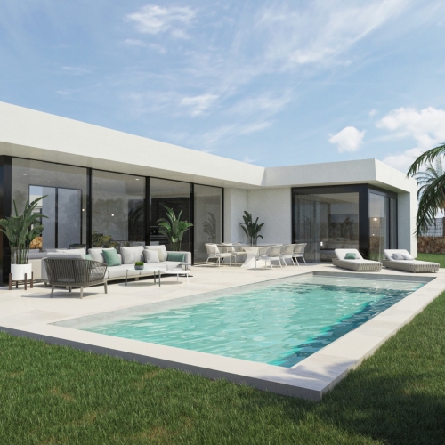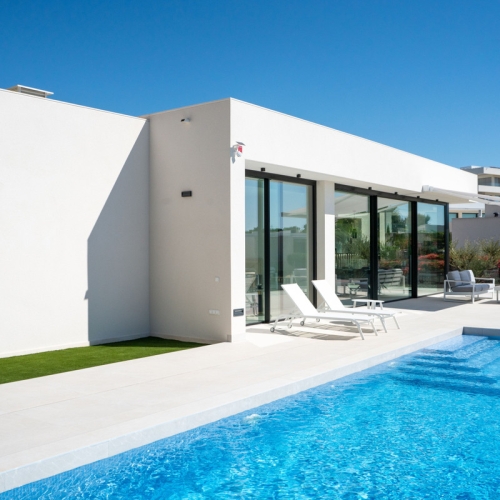 Villaer med masser af naturligt sollys med orientering mod syd, vest og sydvest. Villaer med 3 og 4 soveværelser, en smuk privat swimmingpool samt udsigt over skoven eller golfbanen.