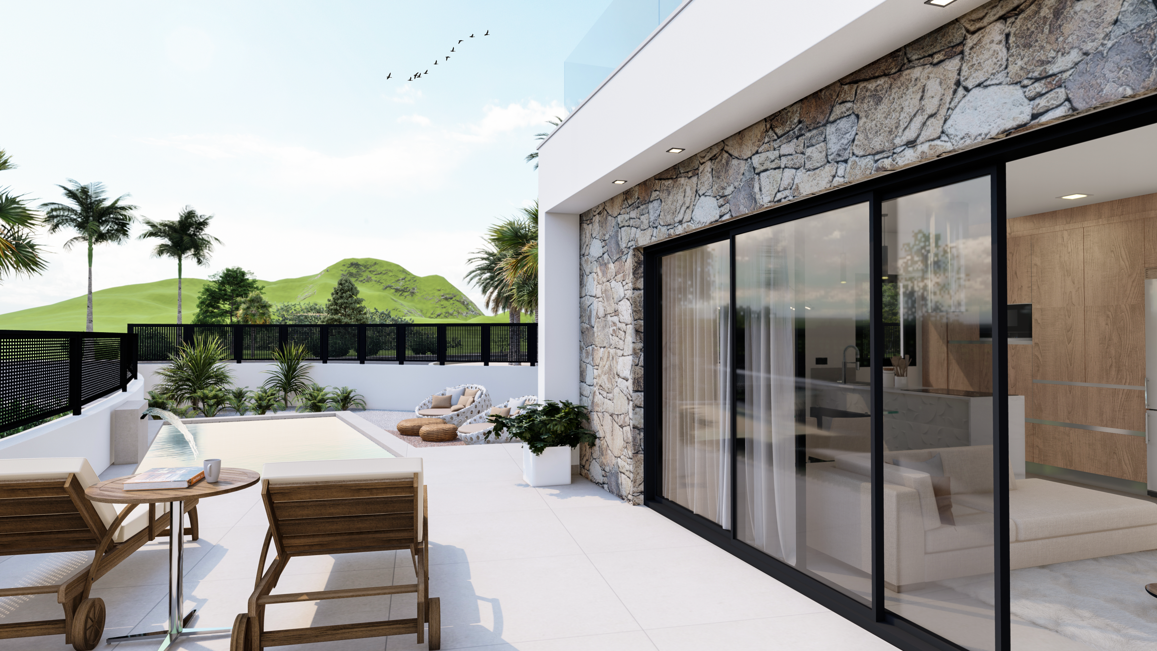 Boligen består af 14 eksklusive villaer på 3 soveværelser, der kombinerer moderne design, kvalitet og funktionalitet. Placeringen tilbyder en fantastisk udsigt til pitch og putt golf i Isla del Fraile urbanisering og til grønne områder og bjerge, der omgiver området. En villa består af en stor stue, et møbleret køkken, 3 badeværelser og terrasse. Hver villa har sin egen grund med terrasse, have, pool og parkeringsplads.