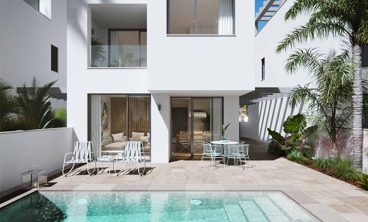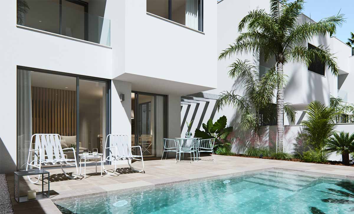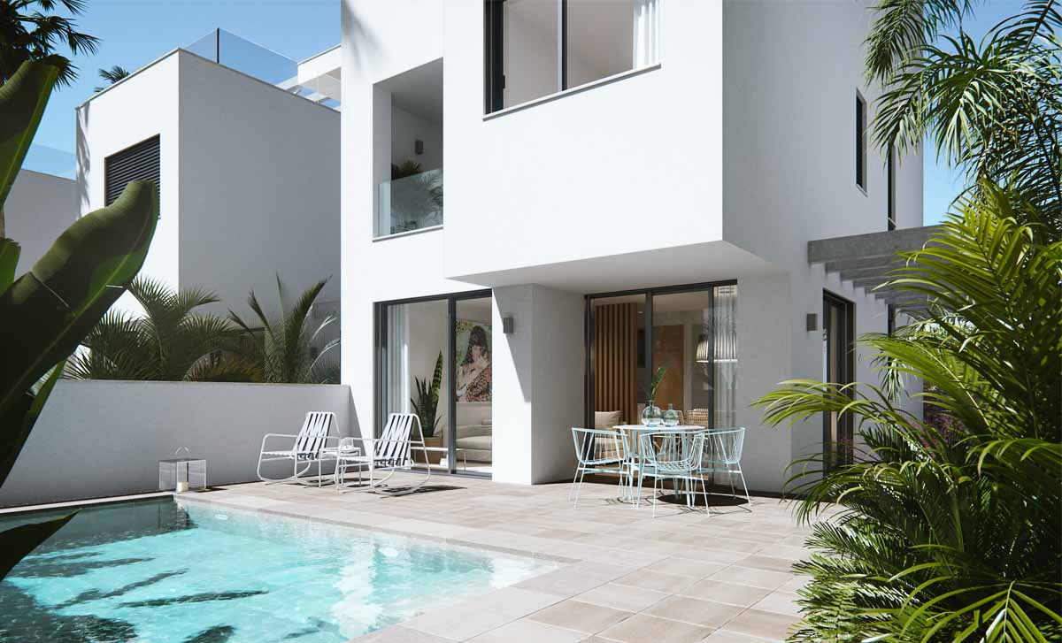 Villaerne indeholder som udgangspunkt tre soveværelser; dog er det også muligt at bygge dem med 4 soveværelser. To soveværelser kommer med et komplet badeværelse og påklædningsværelse. Køkkenet er fuldt udstyret med materialer af høj kvalitet. Køber vælger kvaliteter og apparater. Spisestuen omgivet af store vinduer, der giver et behageligt dagslys og har direkte udgang til swimmingpoolen og haven med belysning og kunstvanding.