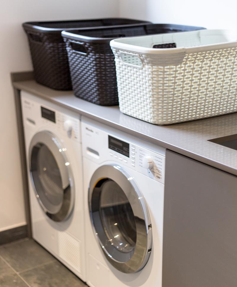 af sauna. Separat vaskerum i stueetagen i huset med vaskemaskine og tørretumbler af Miele-mærket.