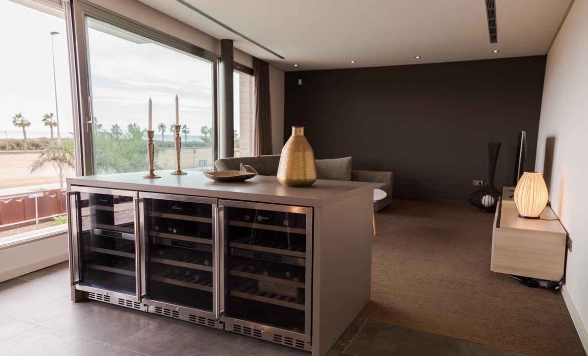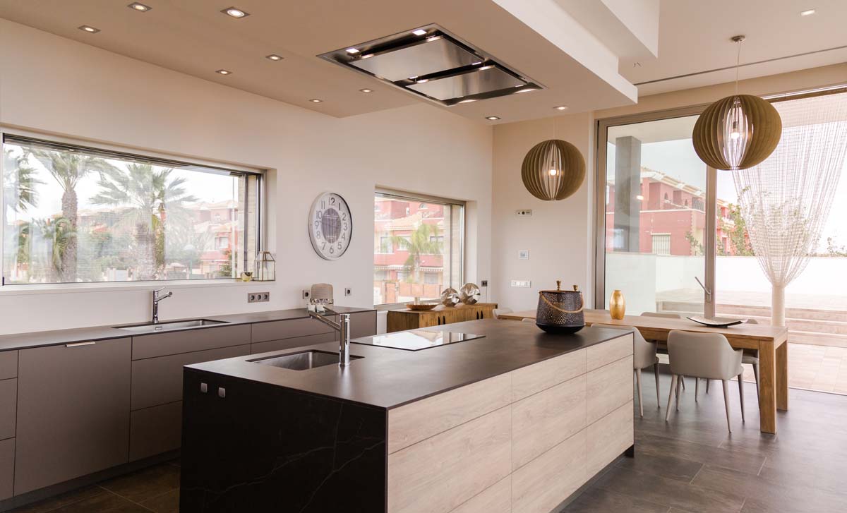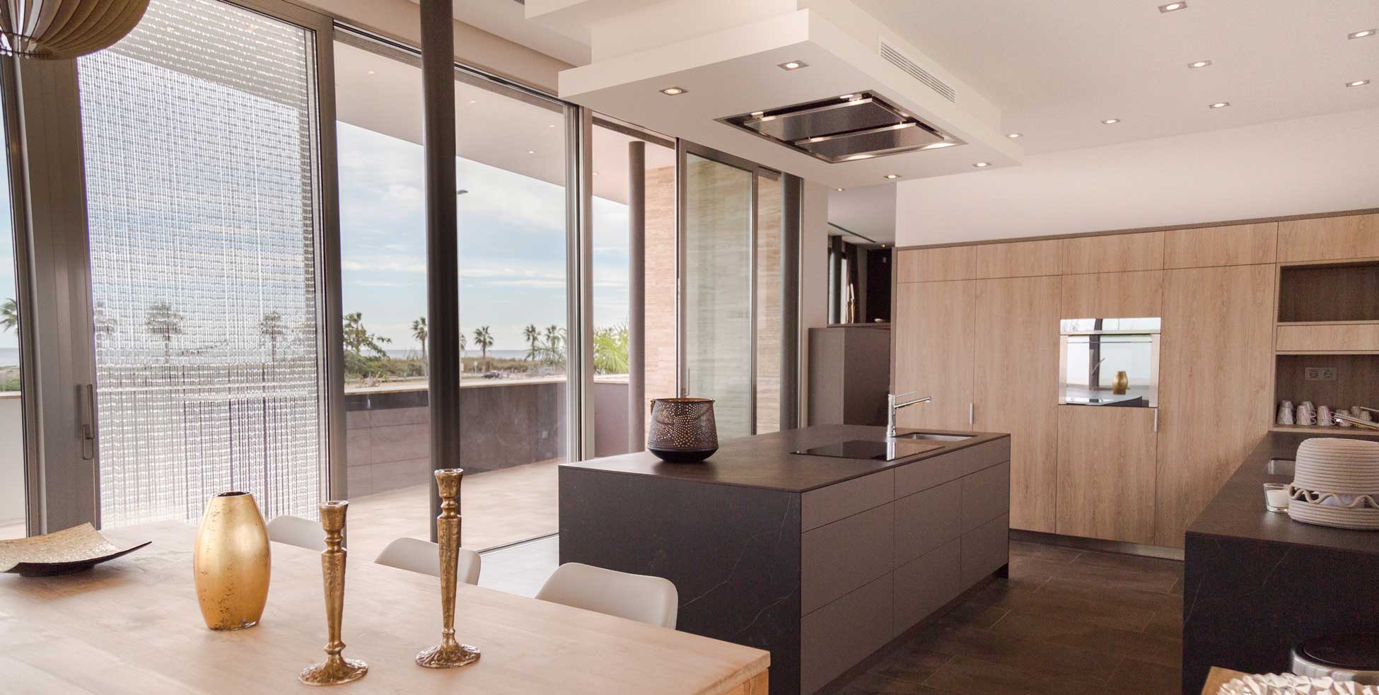 Villaens moderne design og finish af høj kvalitet gør det sammen med dets store vinduer, dets høje lofter og den uovertrufne udsigt over havet, køkkenet er hjertet i huset. Køkkenet er fuldt møbleret med integrerede apparater fra det italienske mærke Smeg,