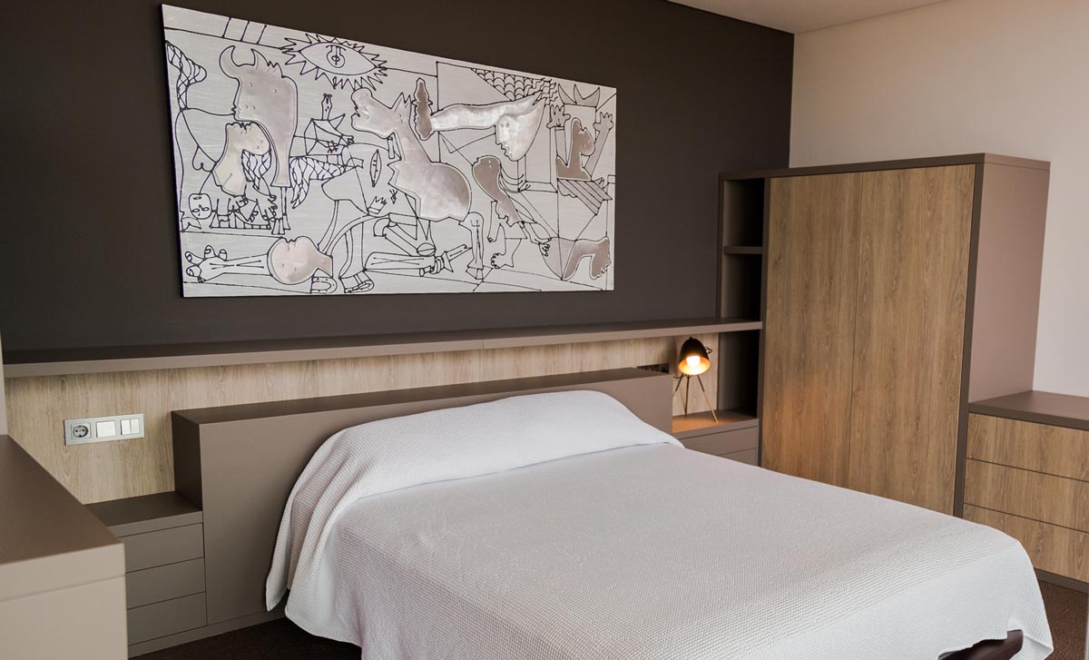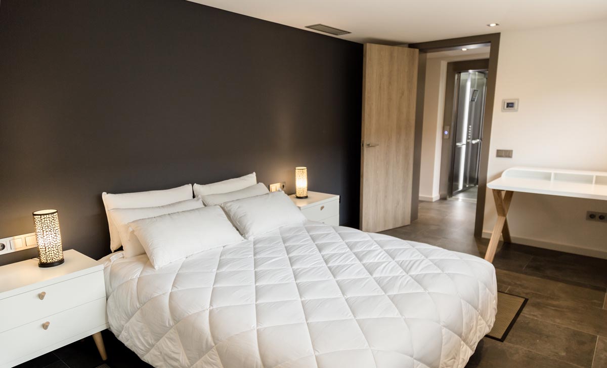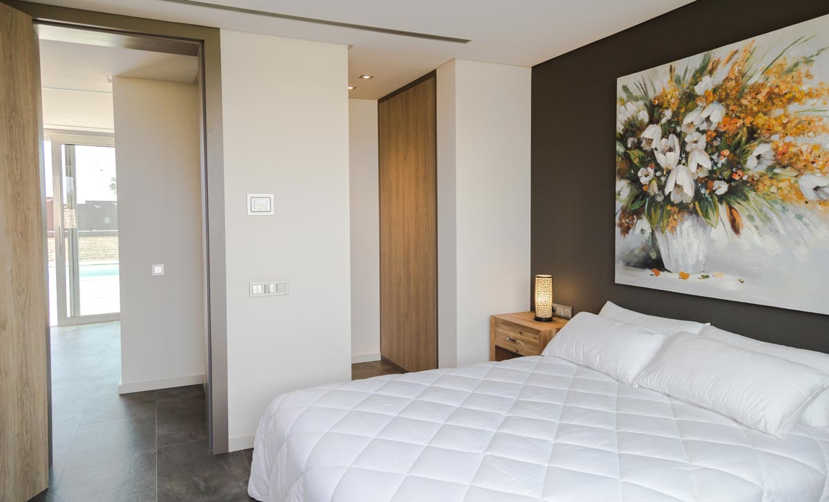 I stueetagen har villaen en lejlighed, der er egnet til at bevare beboernes privatliv. Højt til loftet, stort og lyst soveværelse fuldt møbleret med en dobbeltseng og to indbyggede skabe, foret med gulv til loft-døre.