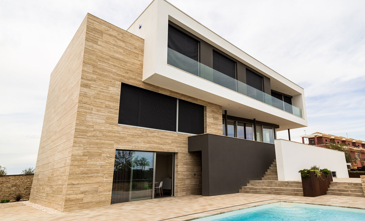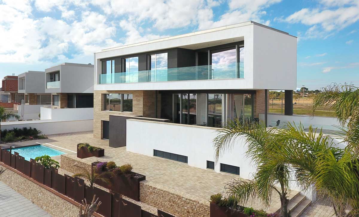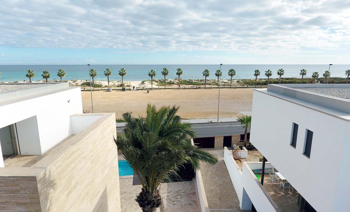 Villa ligger på den første linje af Playa de las Higuericas i Torre de la Horadada, Alicante.