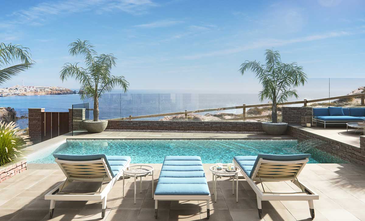 To luksuriøse villaer på en klippe med panoramaudsigt over Marine Reserve.