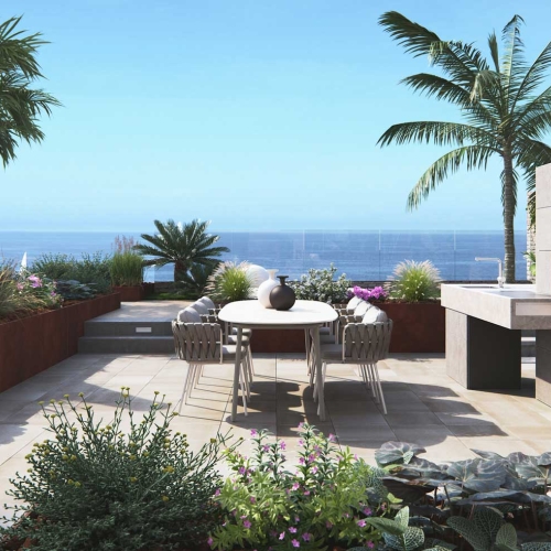500 m2 grund, med et konstrueret areal på 254-264 m2, færdige haver, egen opvarmet swimmingpool med middelhavsudsigt, egen garage, aircondition og varme og kun to minutters gang fra paradis og storslåede bugter.