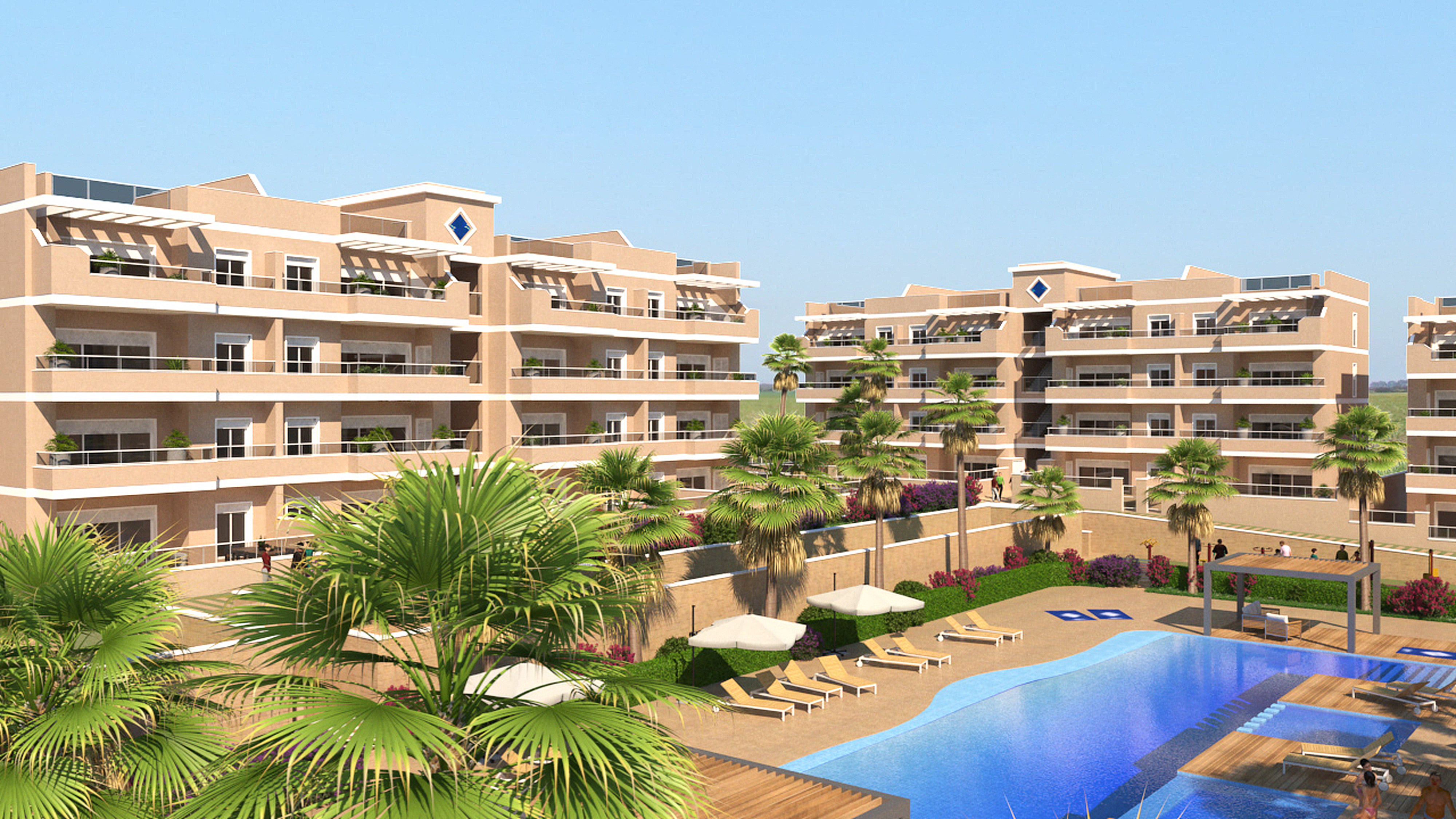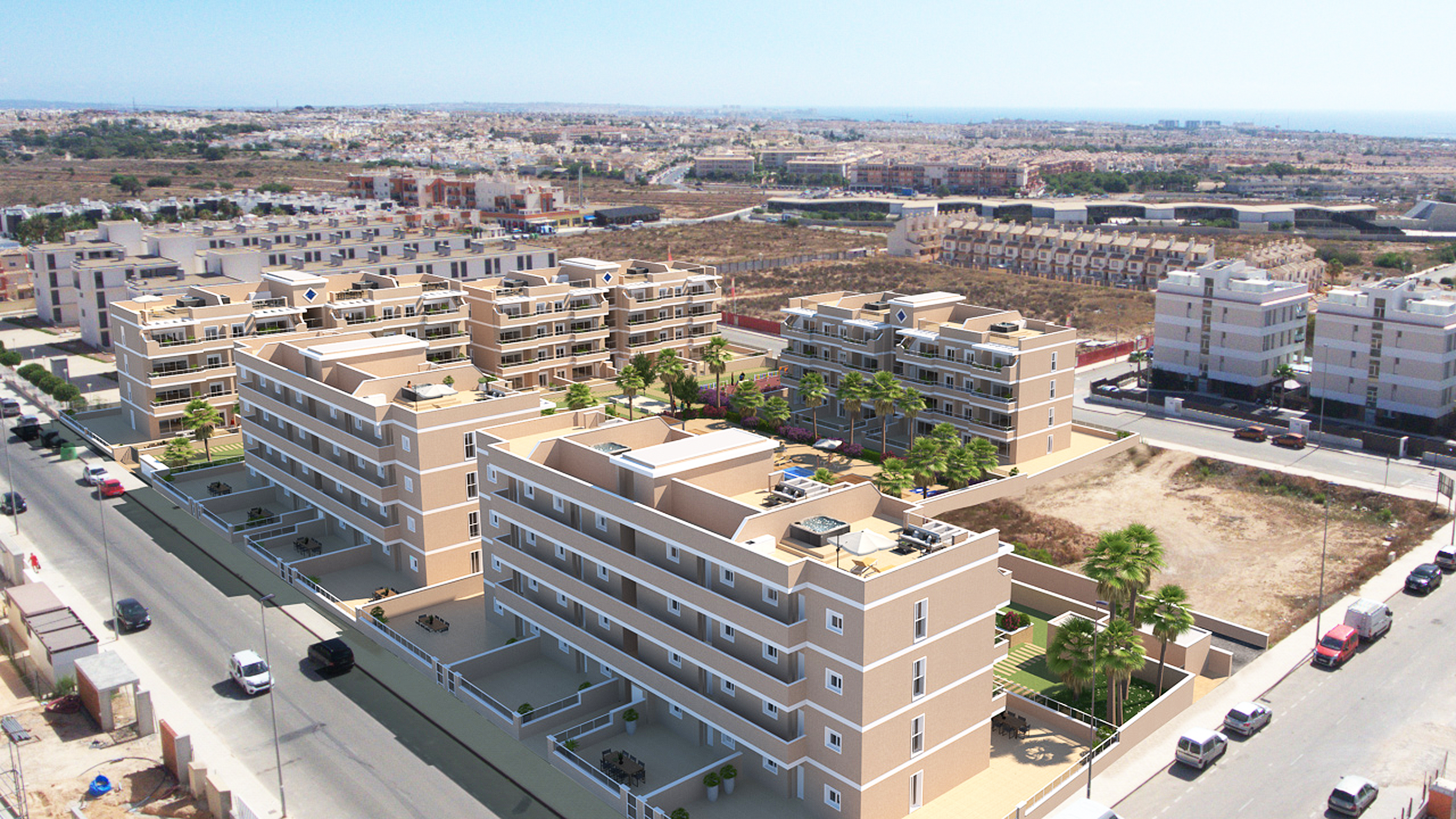 Beliggende kun 2 km. fra <em>La Zenia Boulevard indkøbscenter,</em> gør at disse lejligheder tilbyder den perfekte kombination af fritid og afslapning, ideel til at nyde de milde vintre der tilbyder vores middelhavsklima.