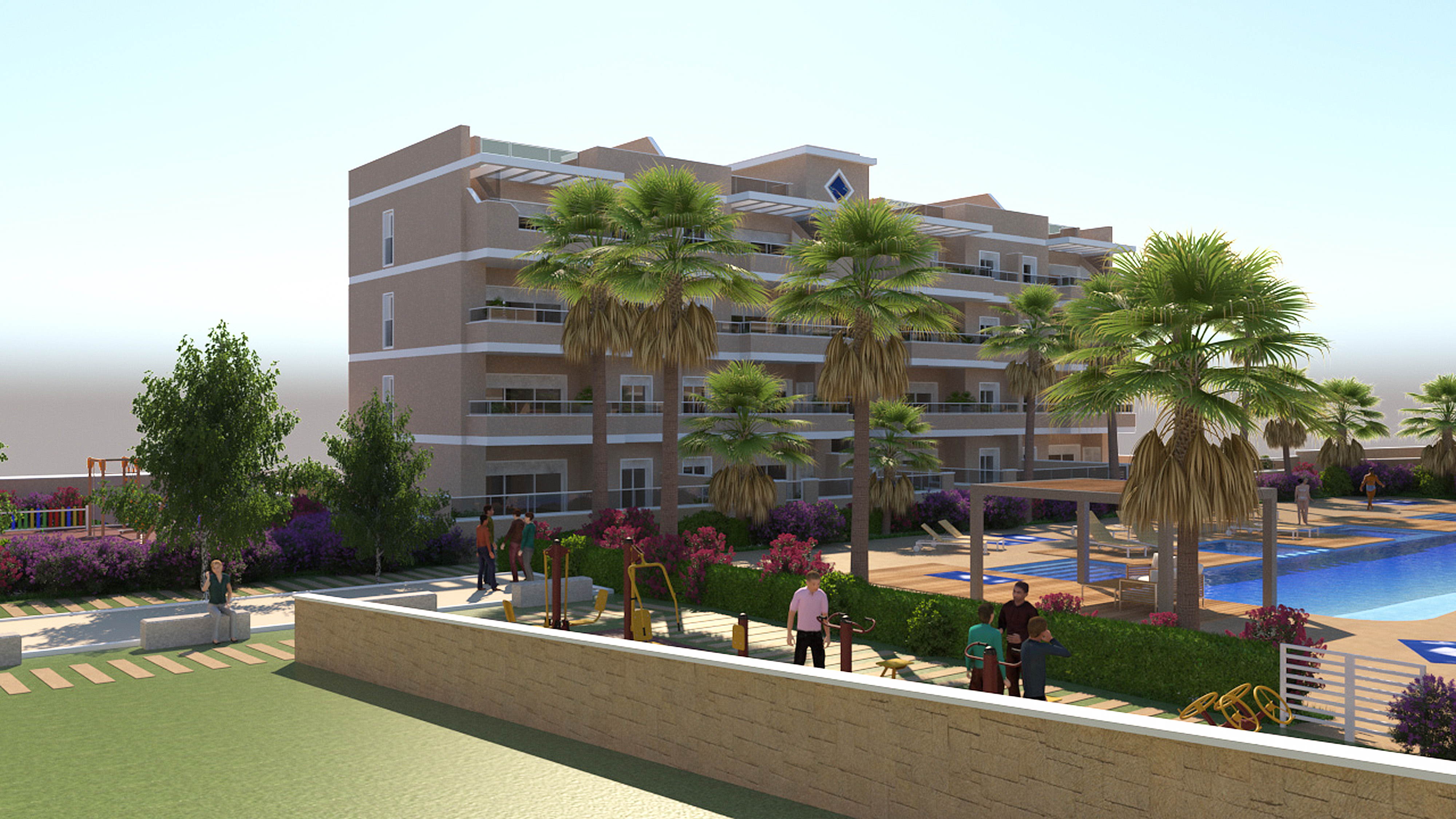 80 lejligheder med 3 soveværelser og 2 badeværelser med tilhørende store terrasser.