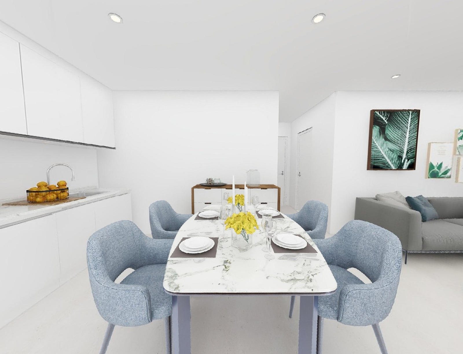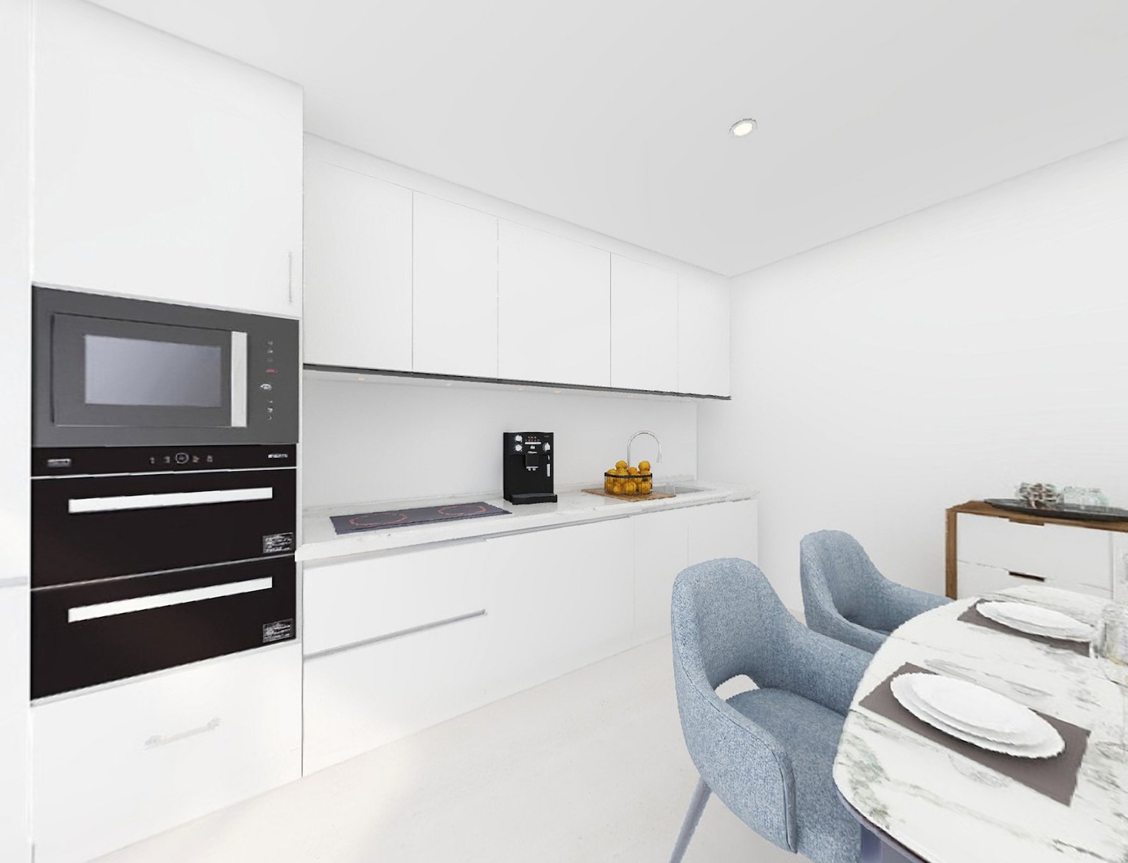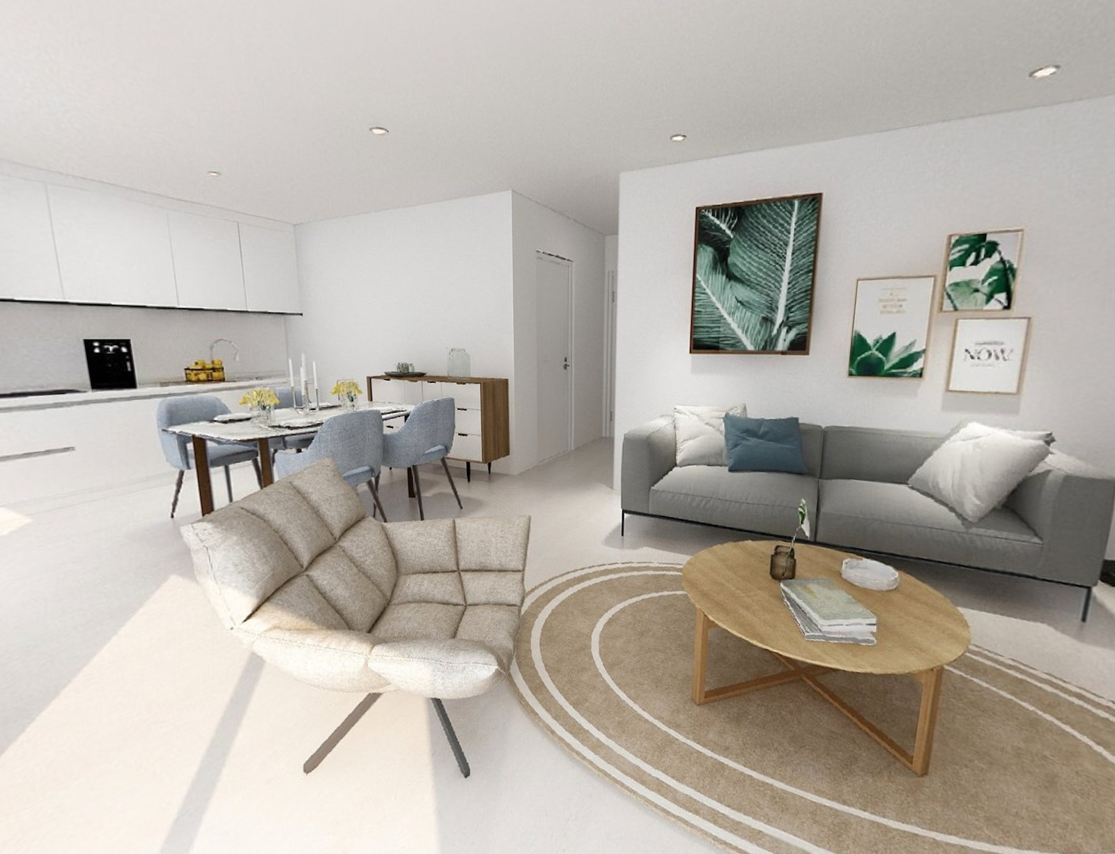Dette boligkompleks tilbyder også et anlagt fællesareal med swimmingpool, hvor du kan nyde solskin året rundt.