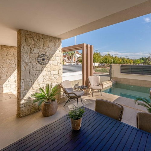 Residential Vela Latina Pueblo III-IV er et luksuriøst kompleks bestående af 28 terrassevillaer i ét niveau med en privat pool til hver bolig. Boligerne er designet i ét niveau med terrasseområder i stueetagen og en stor tagterrasse på første sal, der giver mulighed for at nyde solen hele dagen, året rundt.