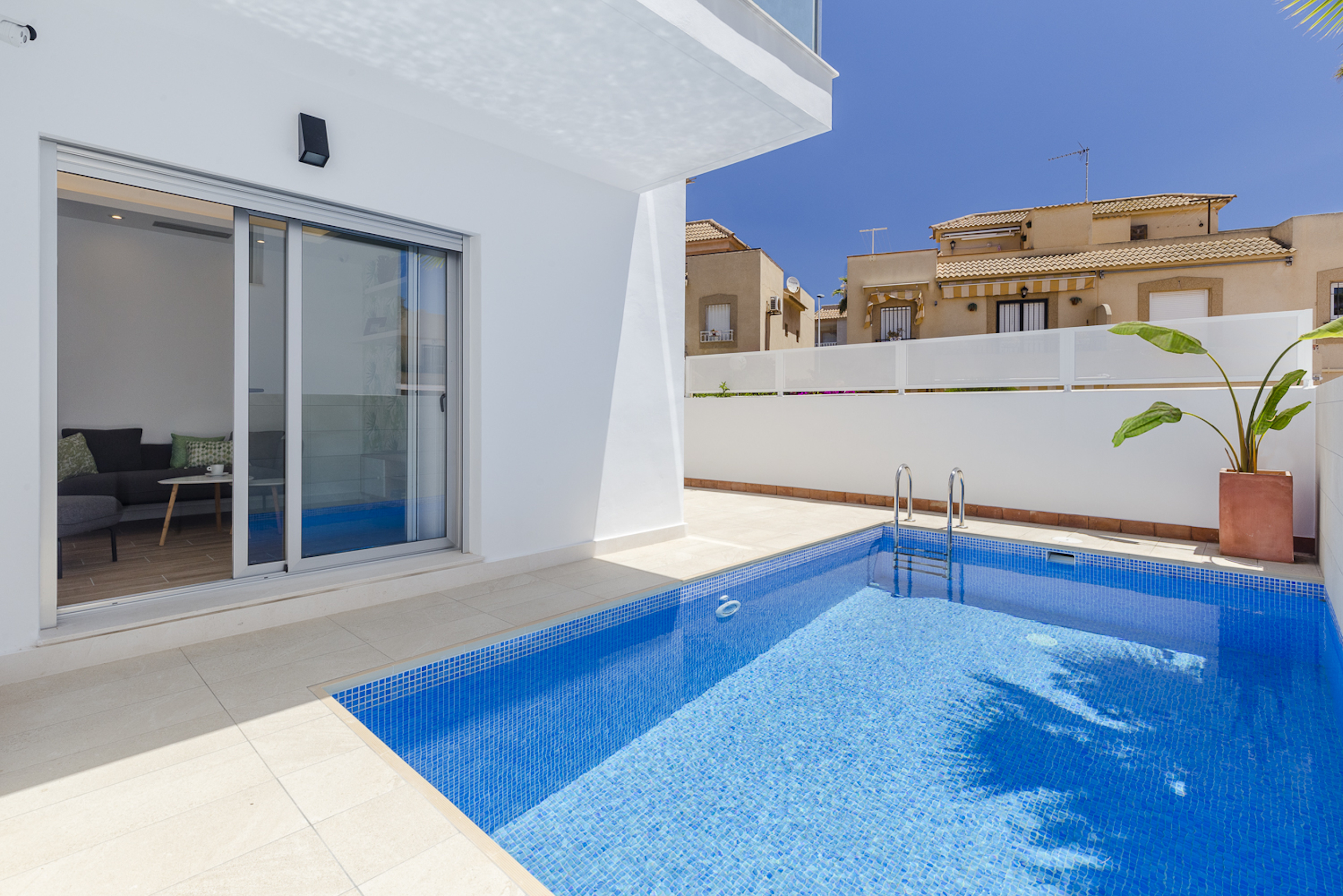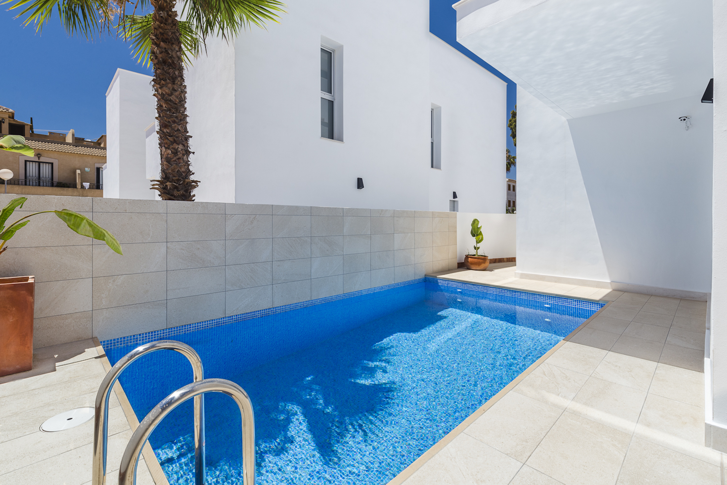 Luksus villa projekter der er designet af Plania på en 600 m2 sydvendt grund. Disse 120 m2 fantastiske villaer har 2 etager, 3 soveværelser, 3 badeværelser, solarium, privat swimmingpool og parkering. De ligger i ”La Rosaleda”, et privilegeret område ved Torrevieja-havet, kun et minut fra stranden.