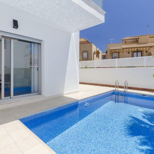 Village Beach Resort er et fritliggende kompleks af 14 villaer med privat swimmingpool, individuel parkering og sikre områder med storslåede grønne zoner beliggende i et af de bedste områder på Costa Blanca i det sydøstlige Spanien.