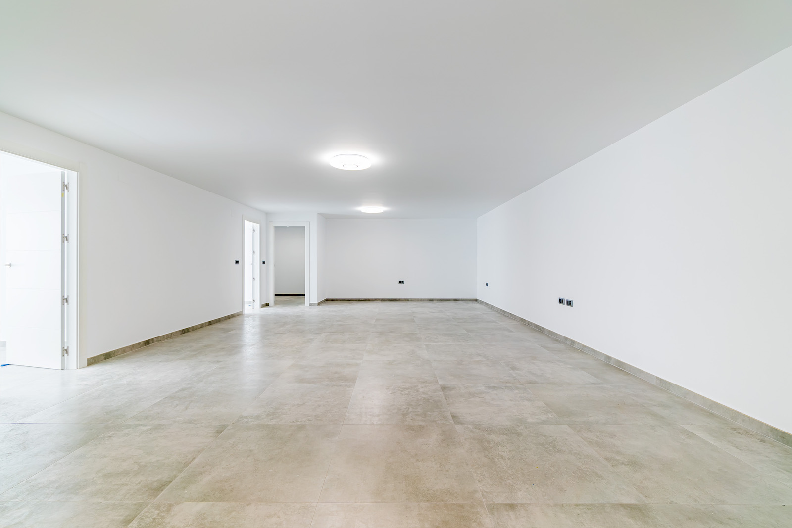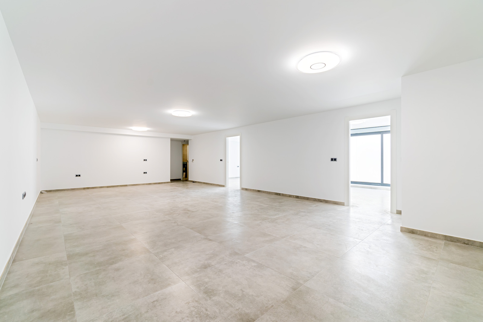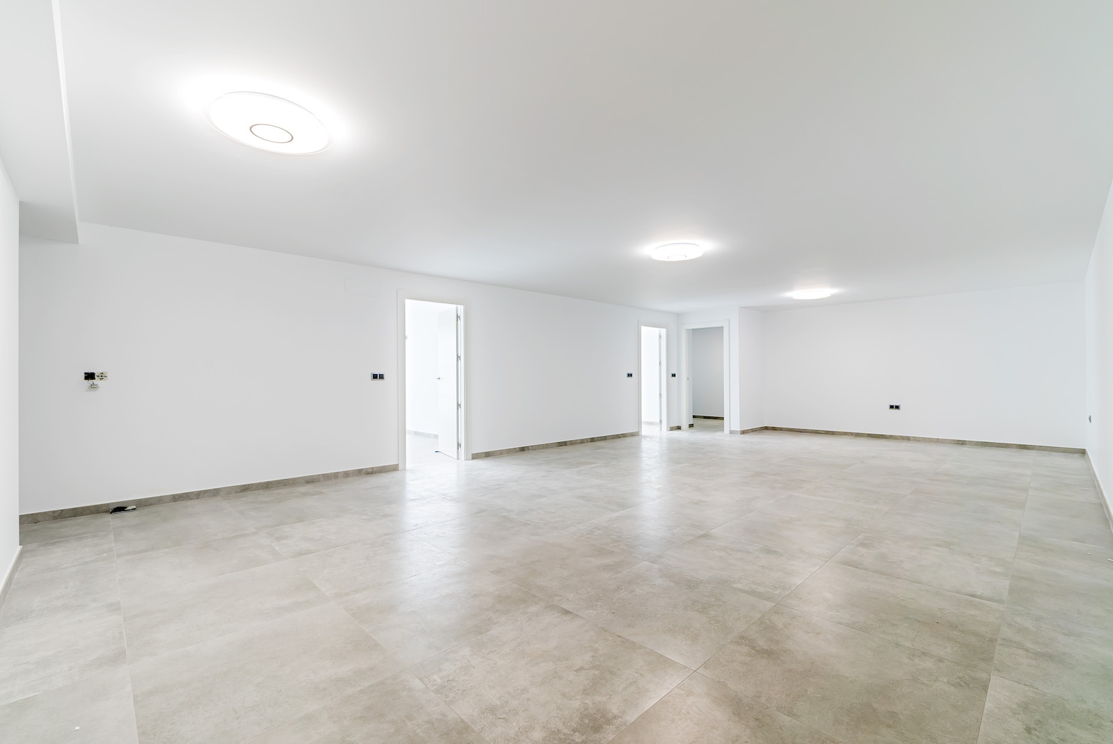 150 kvm naturligt oplyst kælder med forskellige rum.