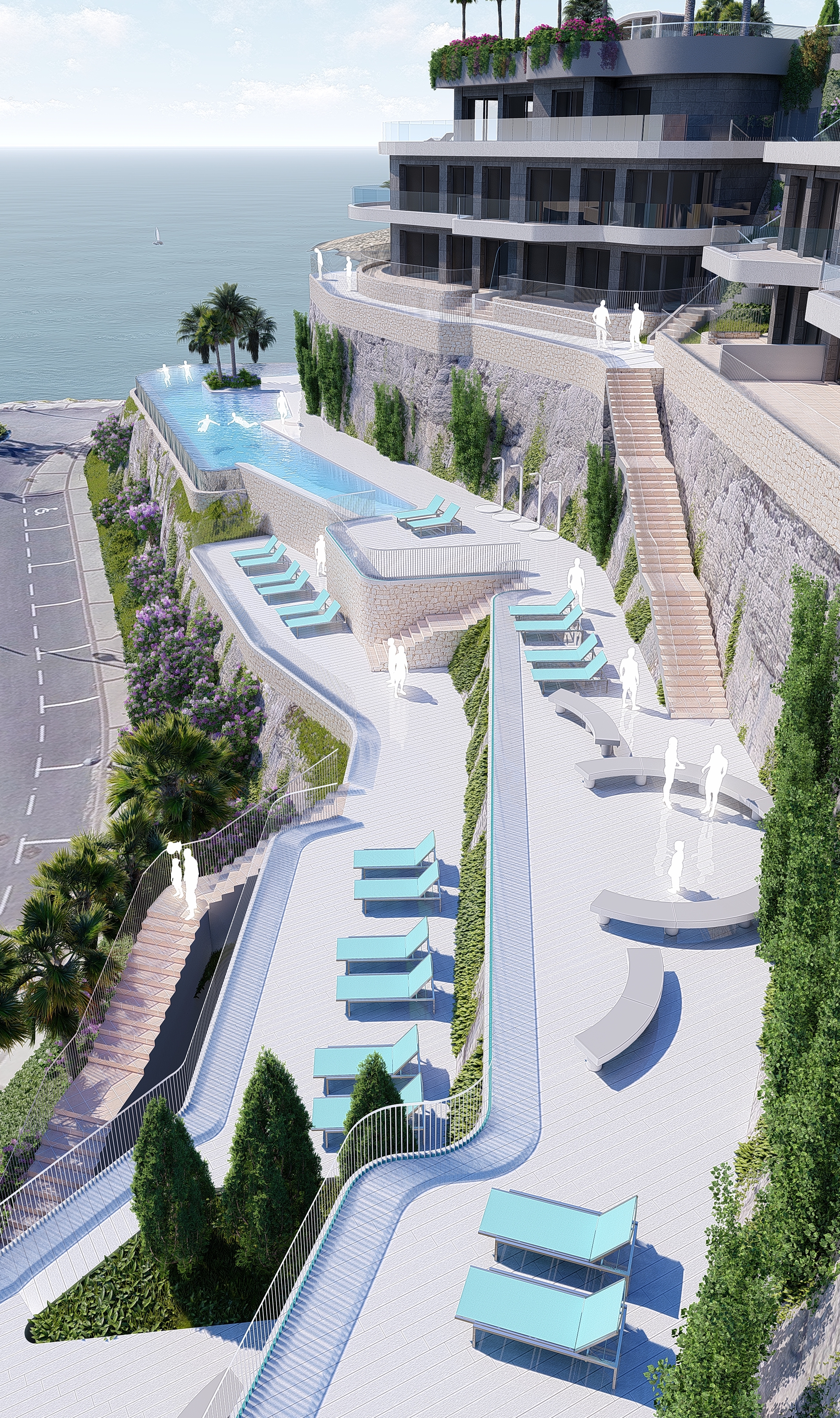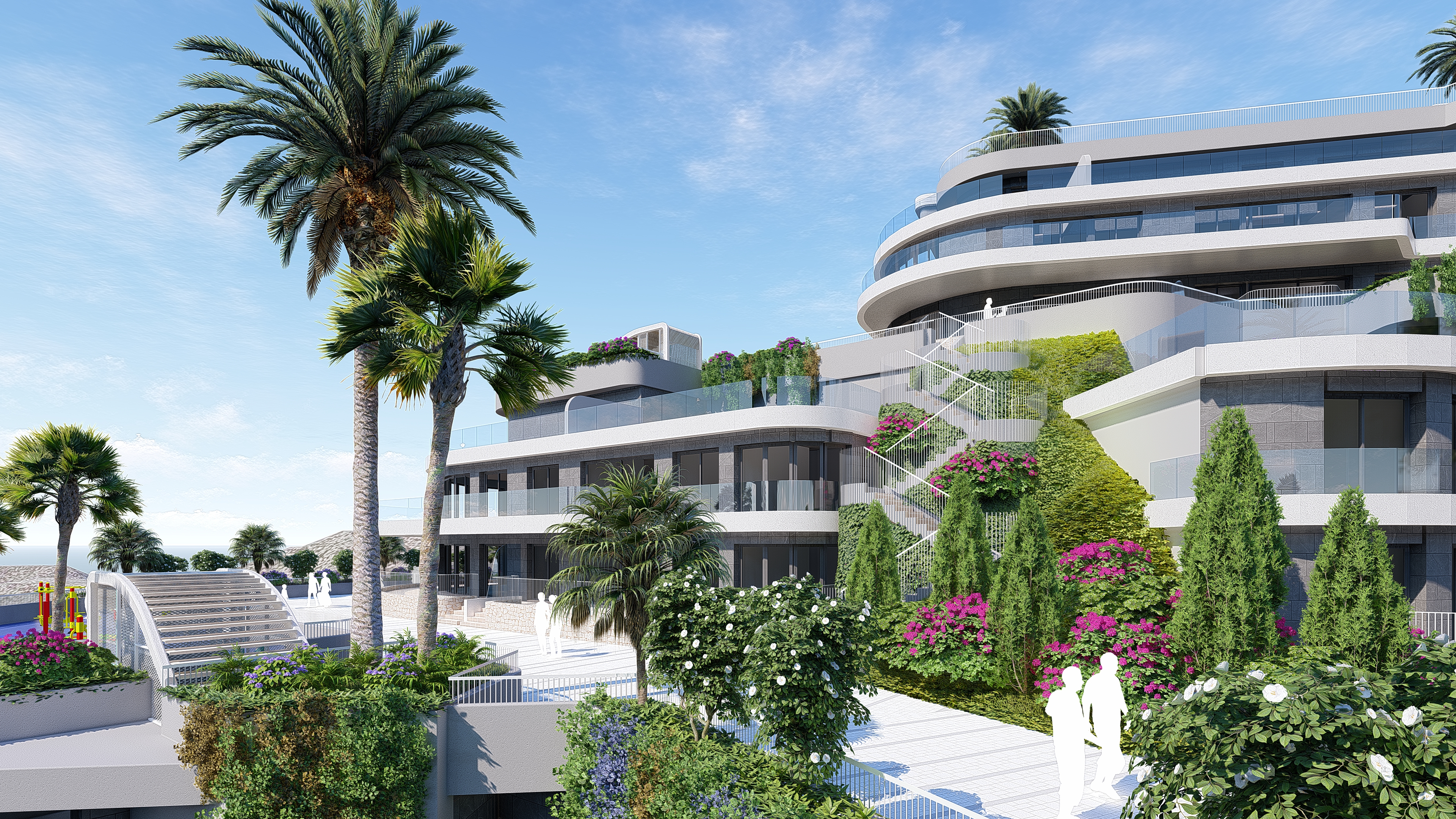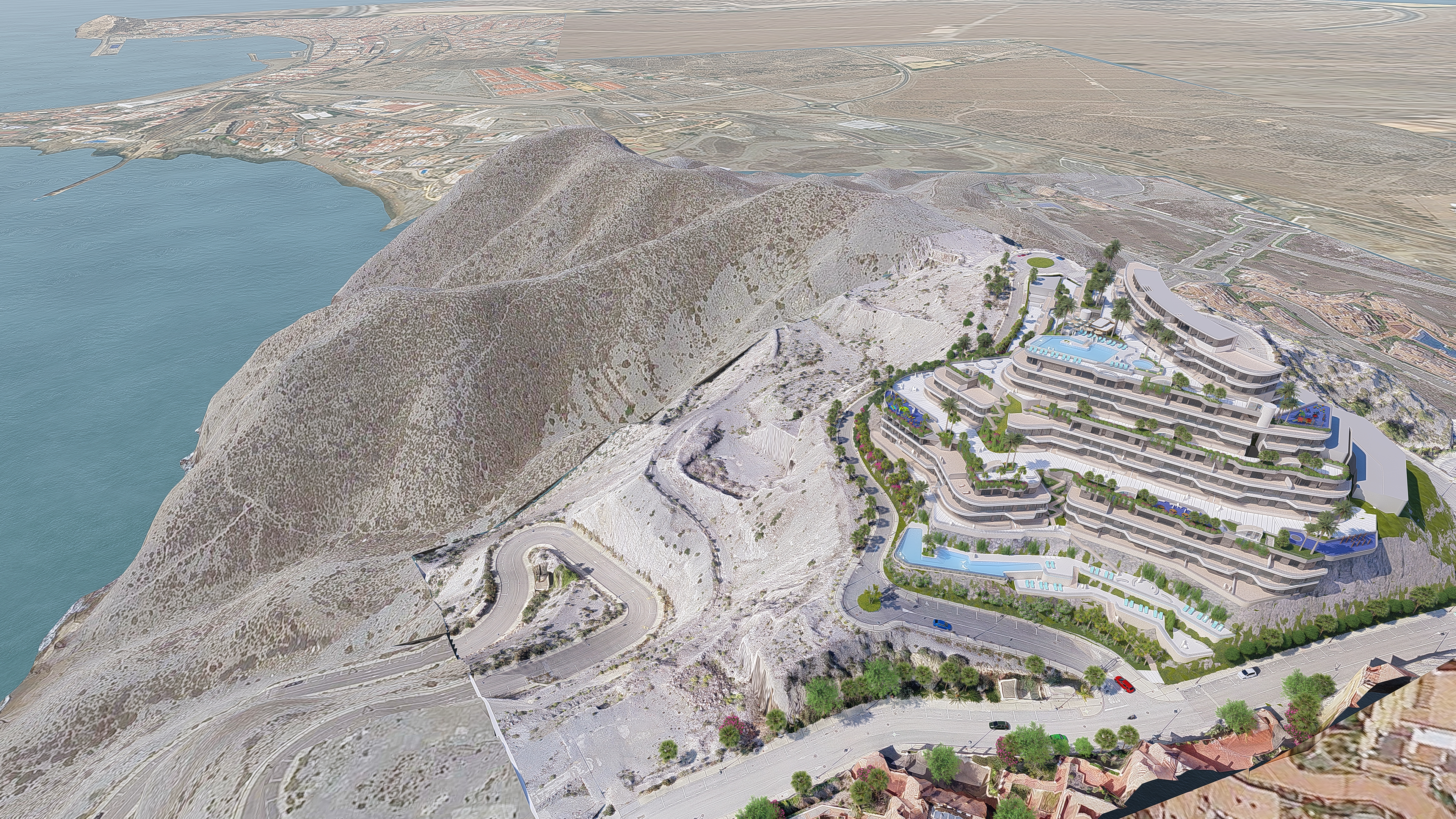 Projektets enestående beliggenhed, giver en fantastisk havudsigt. Byggeriets design og arkitektur smelter sammen med formerne i de naturlige omgivelser, hvori det er beliggende. Takket være den naturlige skrænt, projektet er bygget på, er boligerne designet til at få mest muligt ud af det naturlige lys med den spektakulære udsigt over Middelhavet fra de store terrasser. De ædle materialer, udnyttelsen af bjergets udformning og den enorme mængde vegetation i landskabet, skaber den perfekte harmoni mellem byggeriet og de naturlige omgivelser.