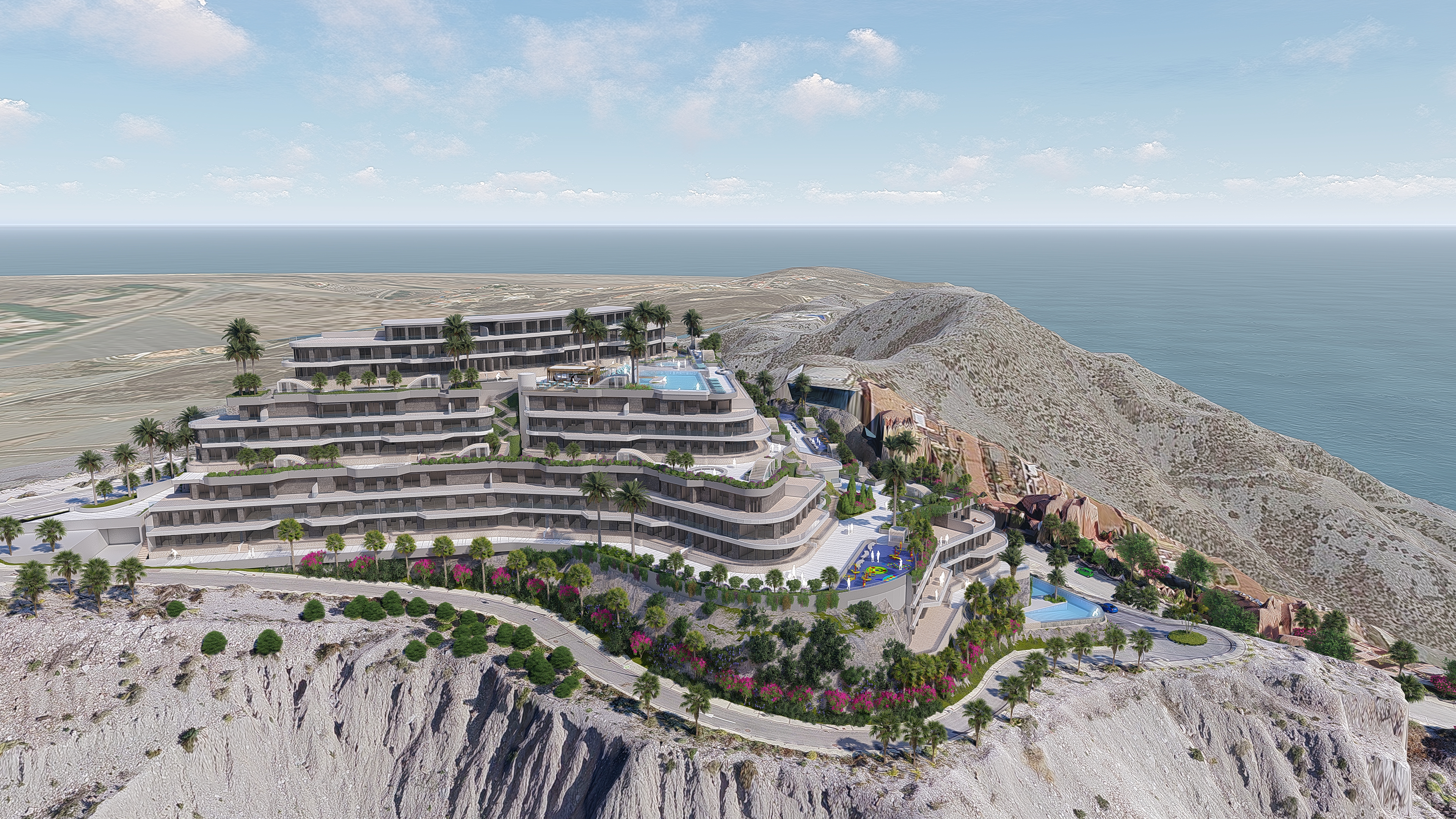 1, 2 og 3 værelses lejligheder og penthouses, beliggende på en bjergskråning lige ned til øen, "Isla del Fraile" i Aguilas, Murcia.
