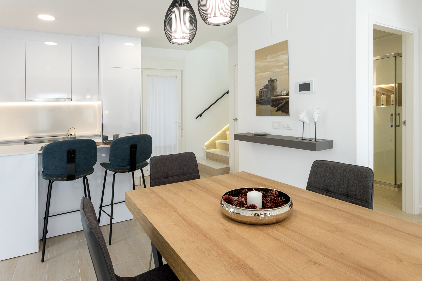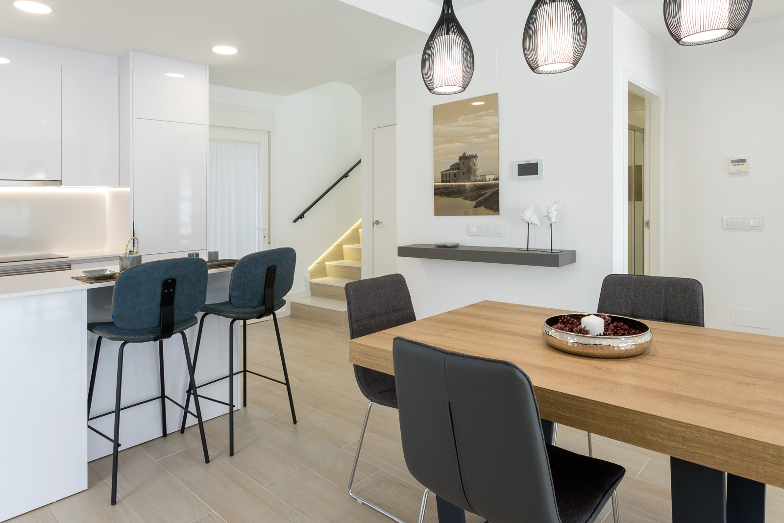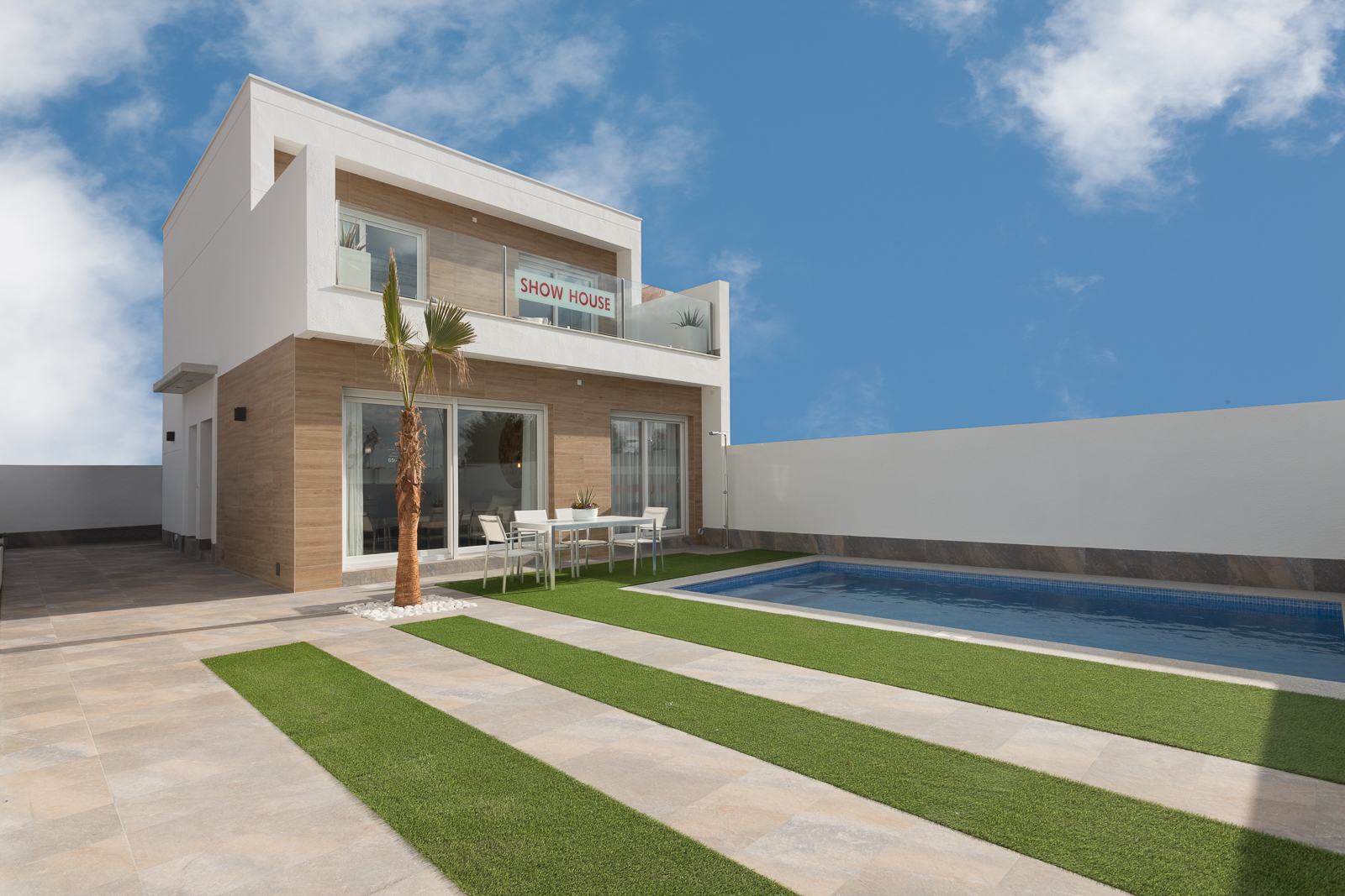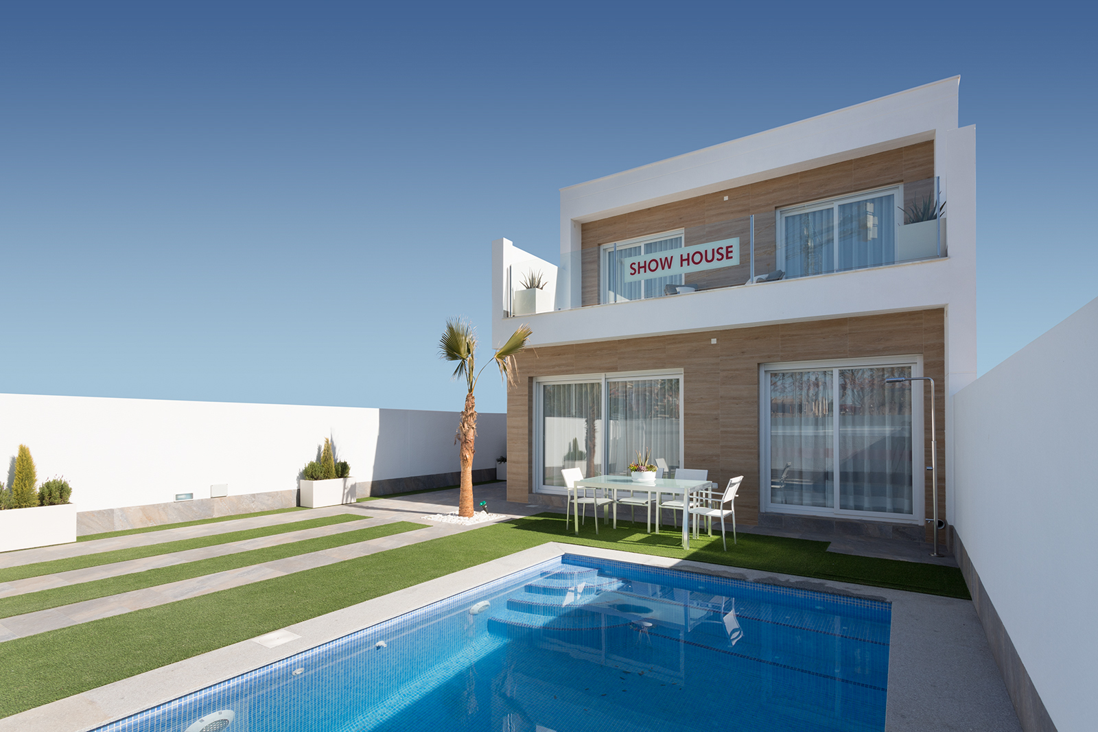 Husene er avantgardistisk design bestående af tre soveværelser, to komplette badeværelser, have og privat pool.