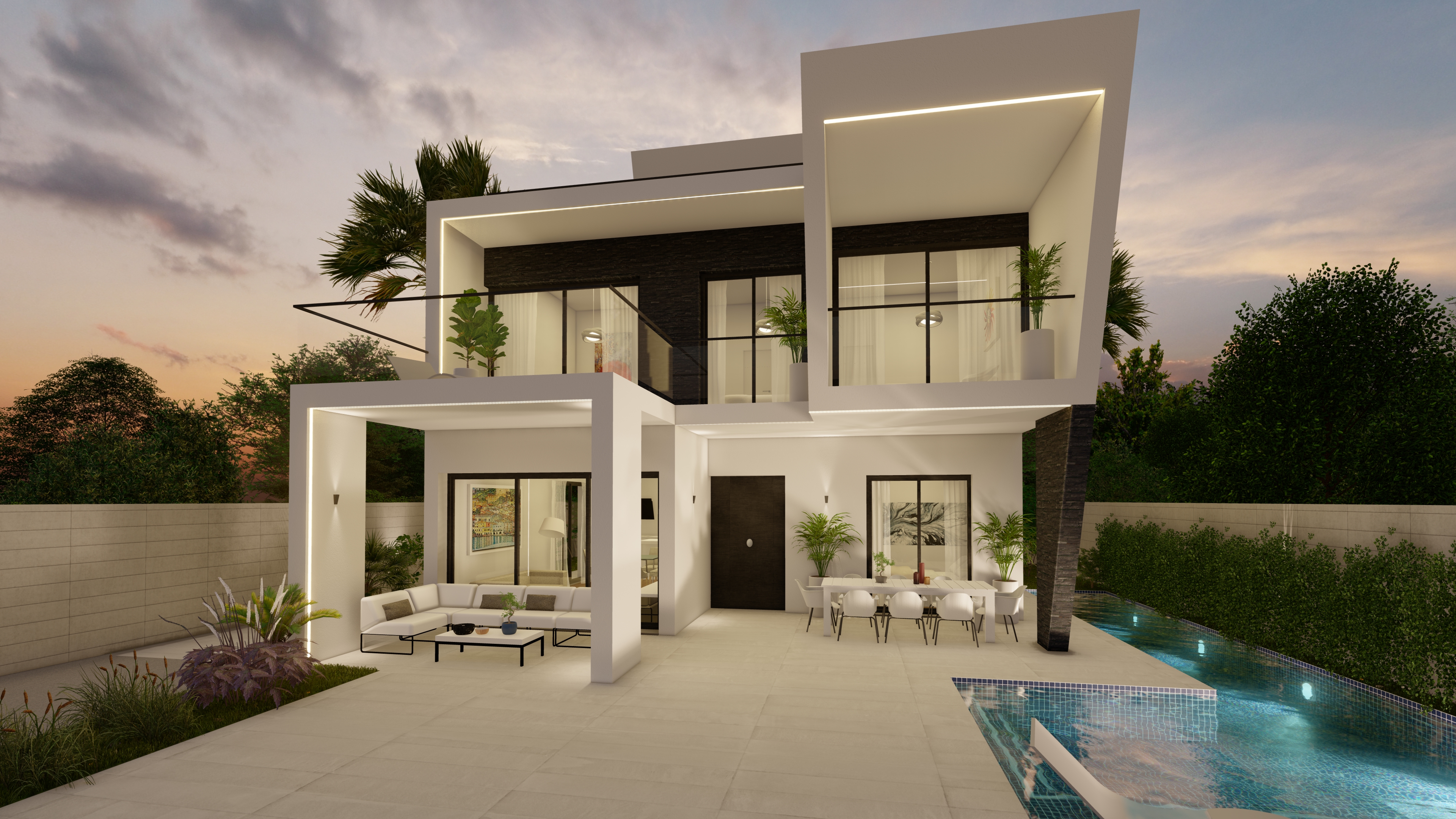 Billederne af projektet er blot en ide til hvordan boligen kan se ud. I dette projekt er man med til selv at designe hvordan villaen i sidste ende skal se ud.
