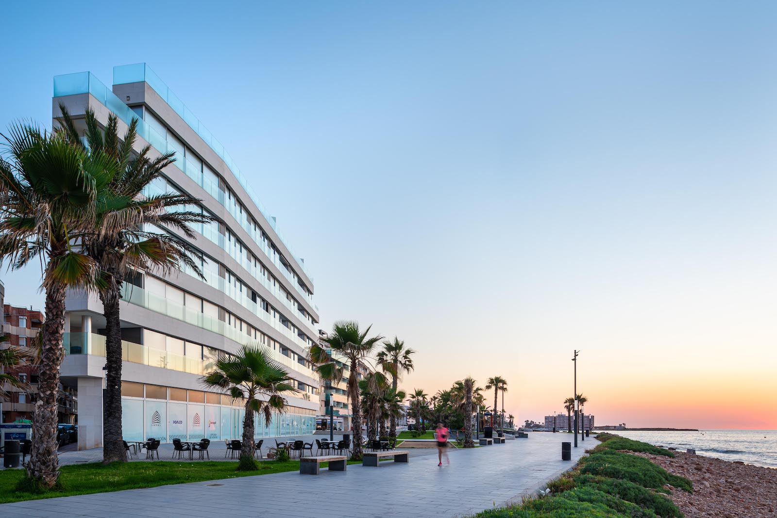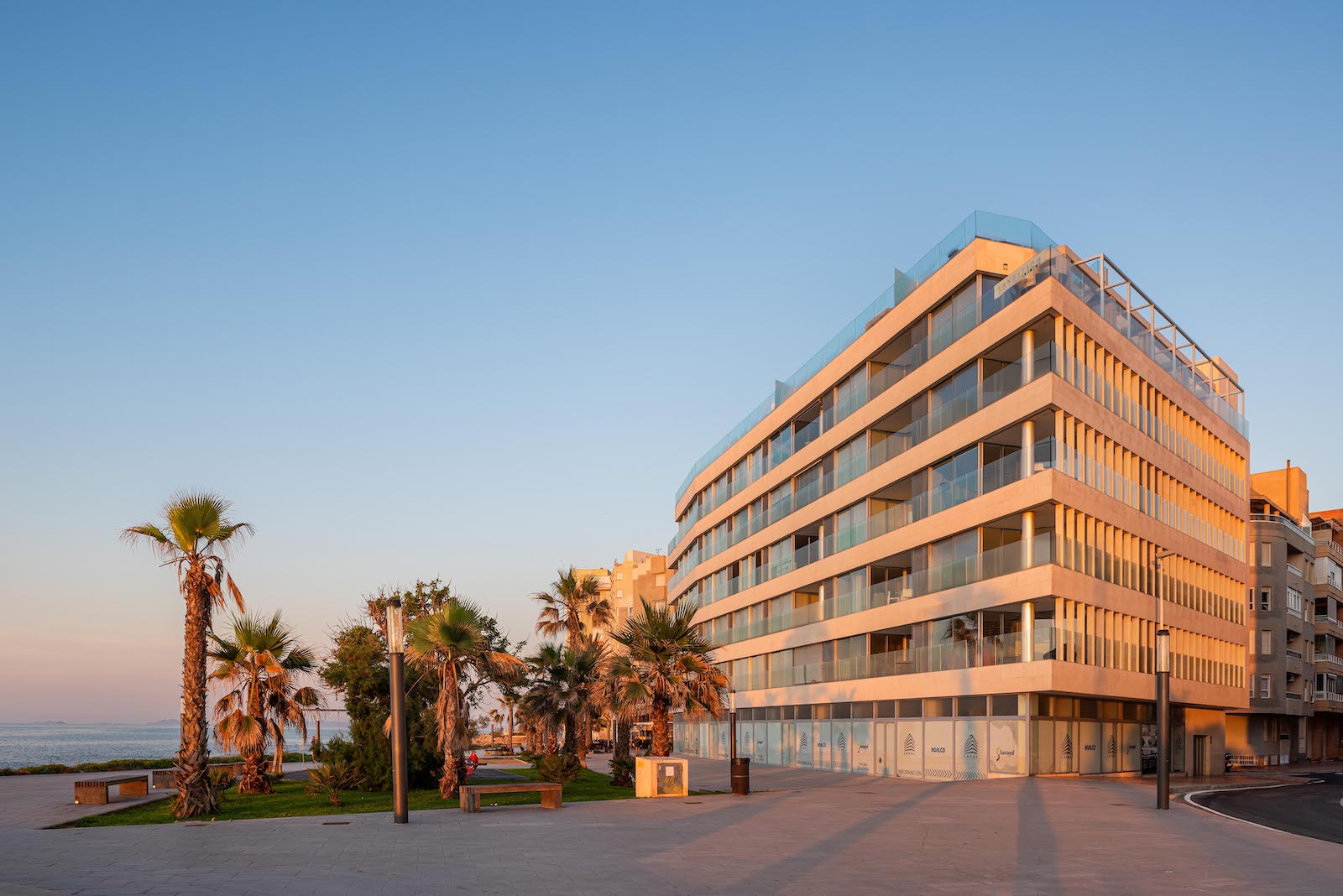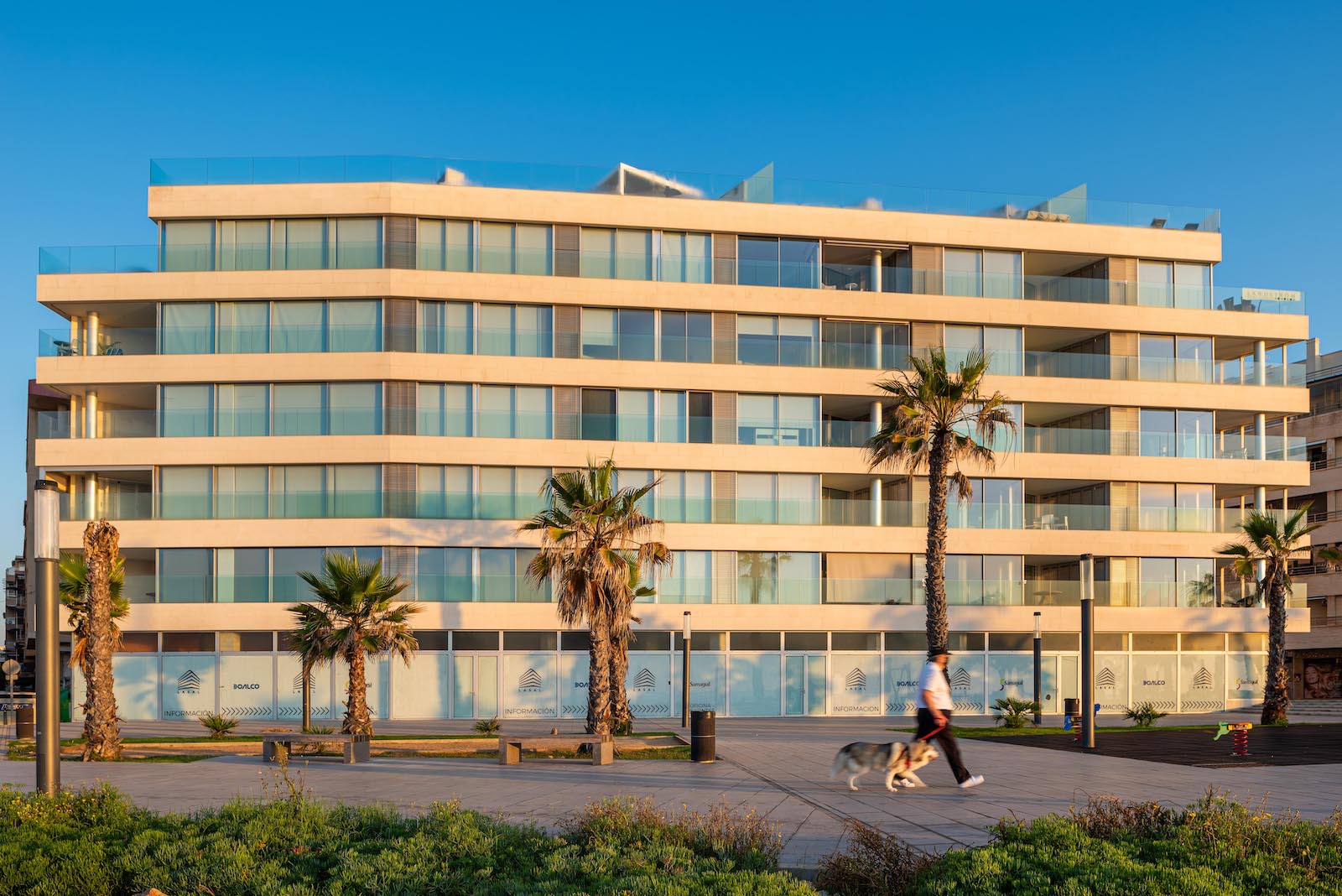 Edificio Lasal ligger på i første linje til vandet ved den nye strandpromenade i Torrevieja og har en facade med en længde på mere end 50 meter ud mod Middelhavet.