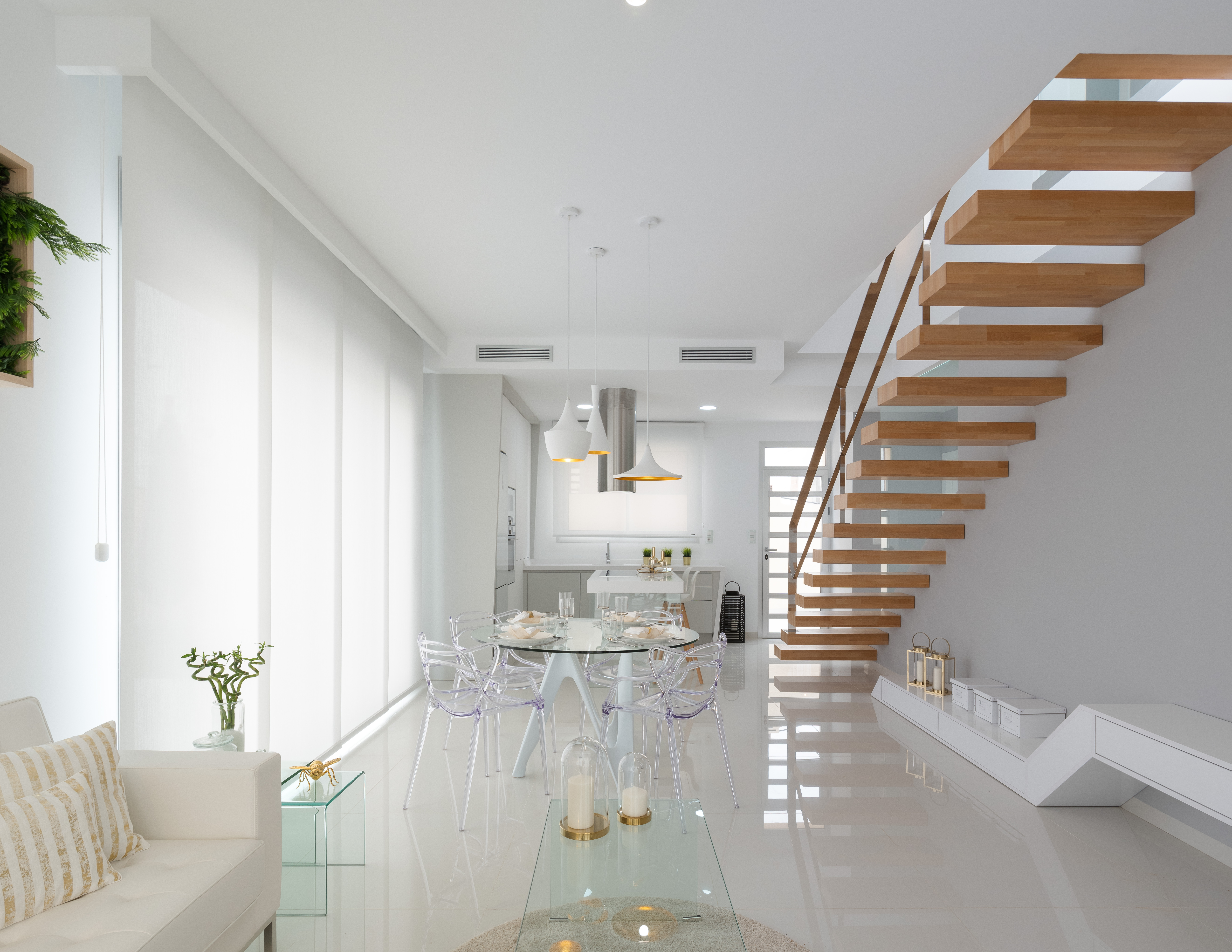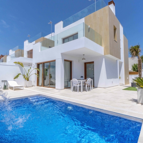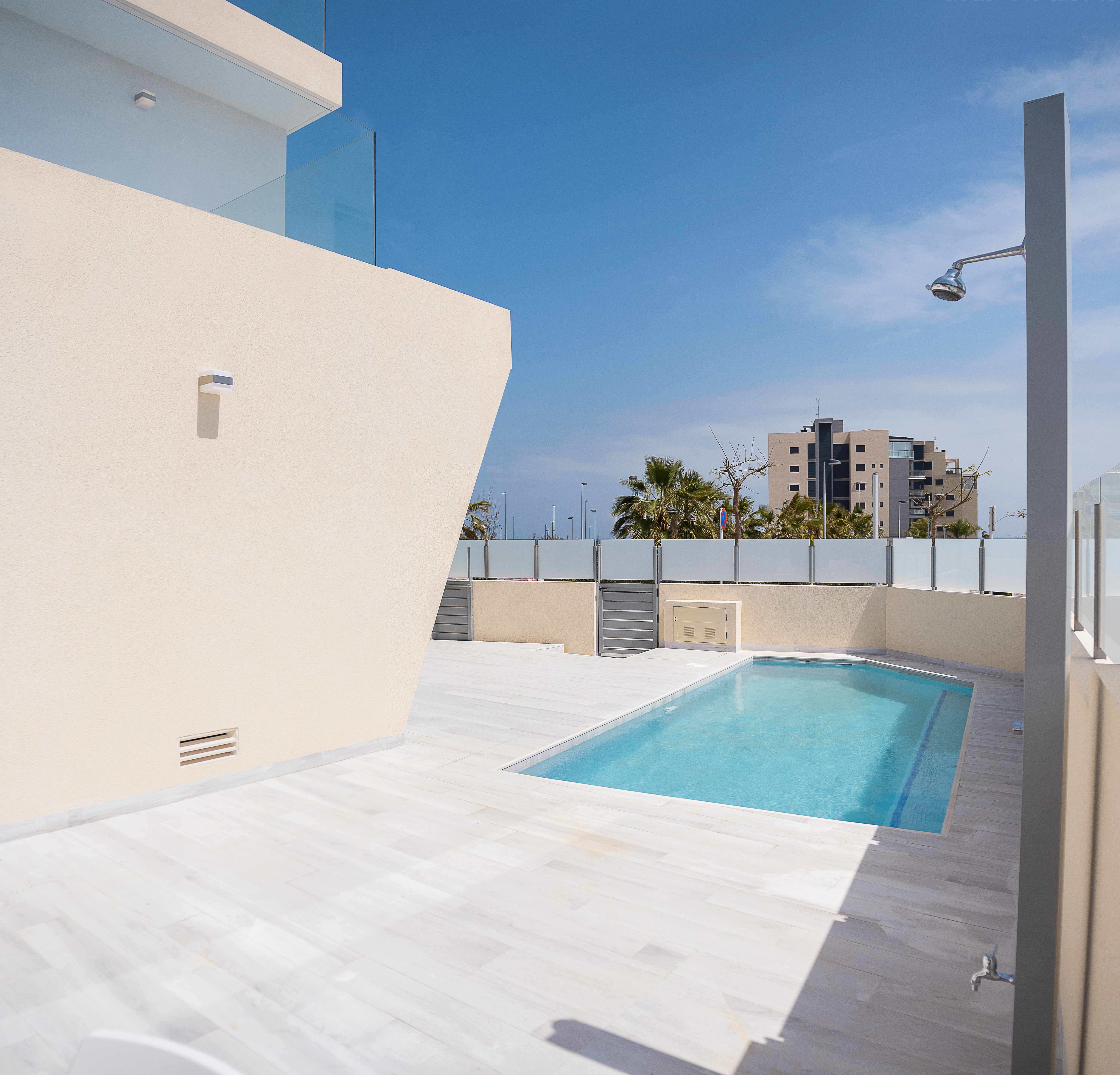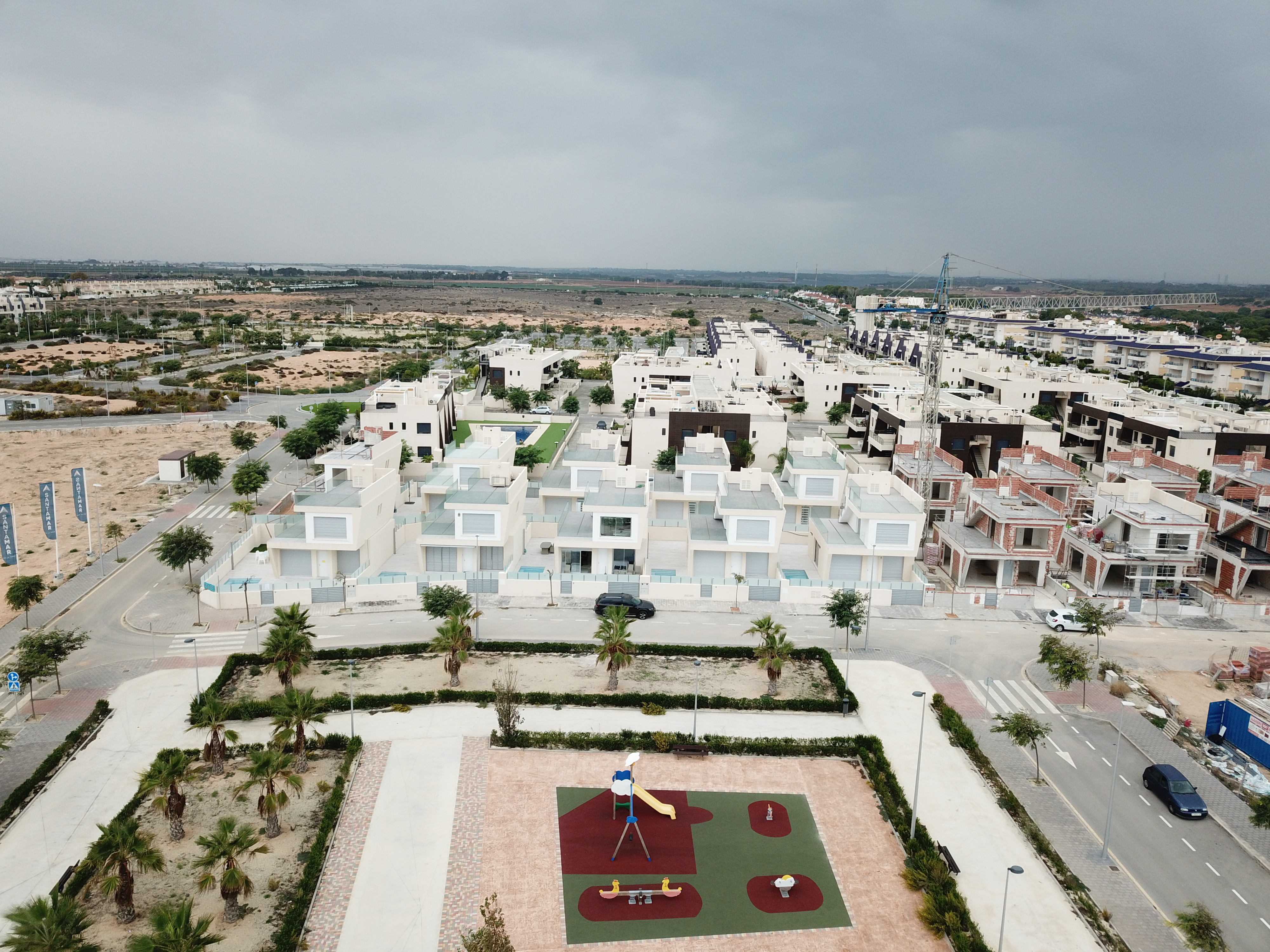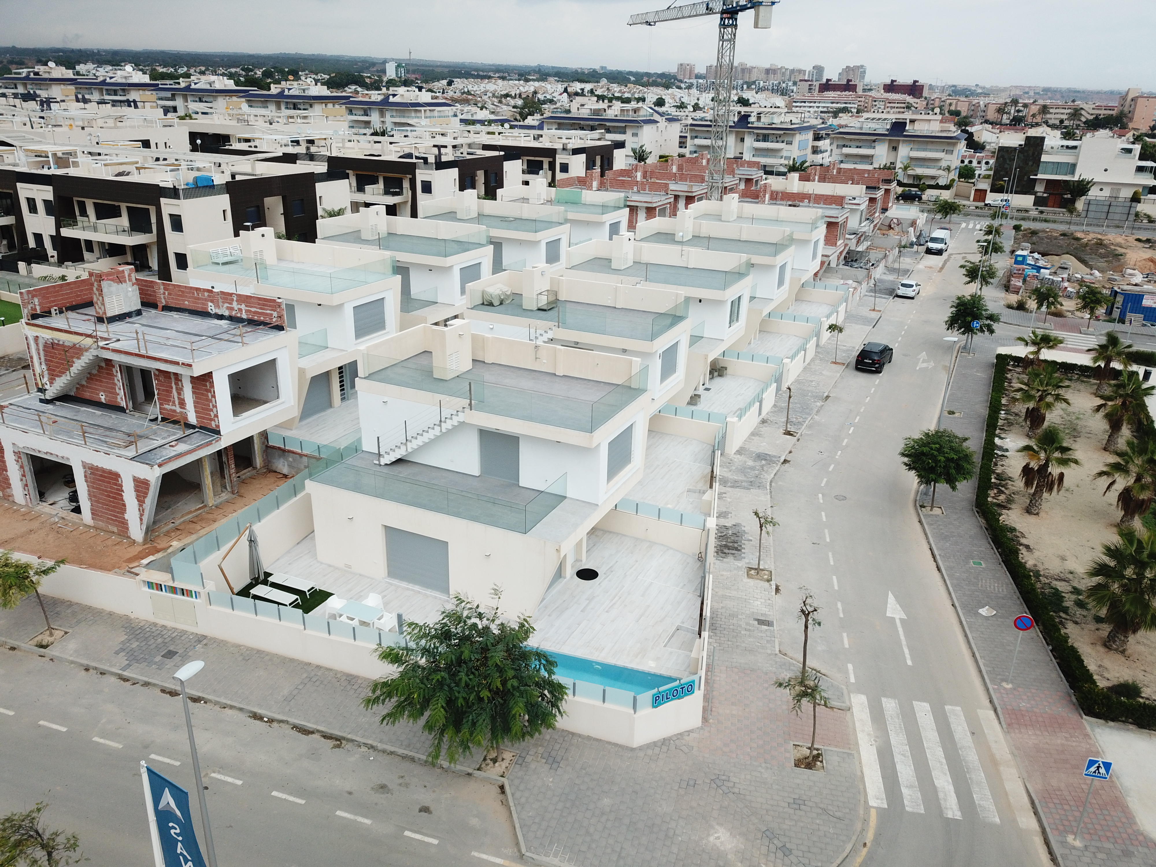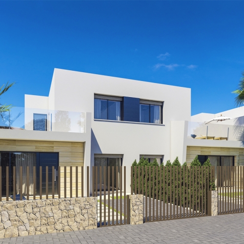 Moderne og smukke villaer med 3 soveværelser og 3 badeværelser beliggende i Torre de la horada. Alle villaer er udstyret med rummelige terrasser (186 m2) og swimmingpool. Detaljeret efterbehandling og glatte farver bruges til at skabe et behageligt ophold.