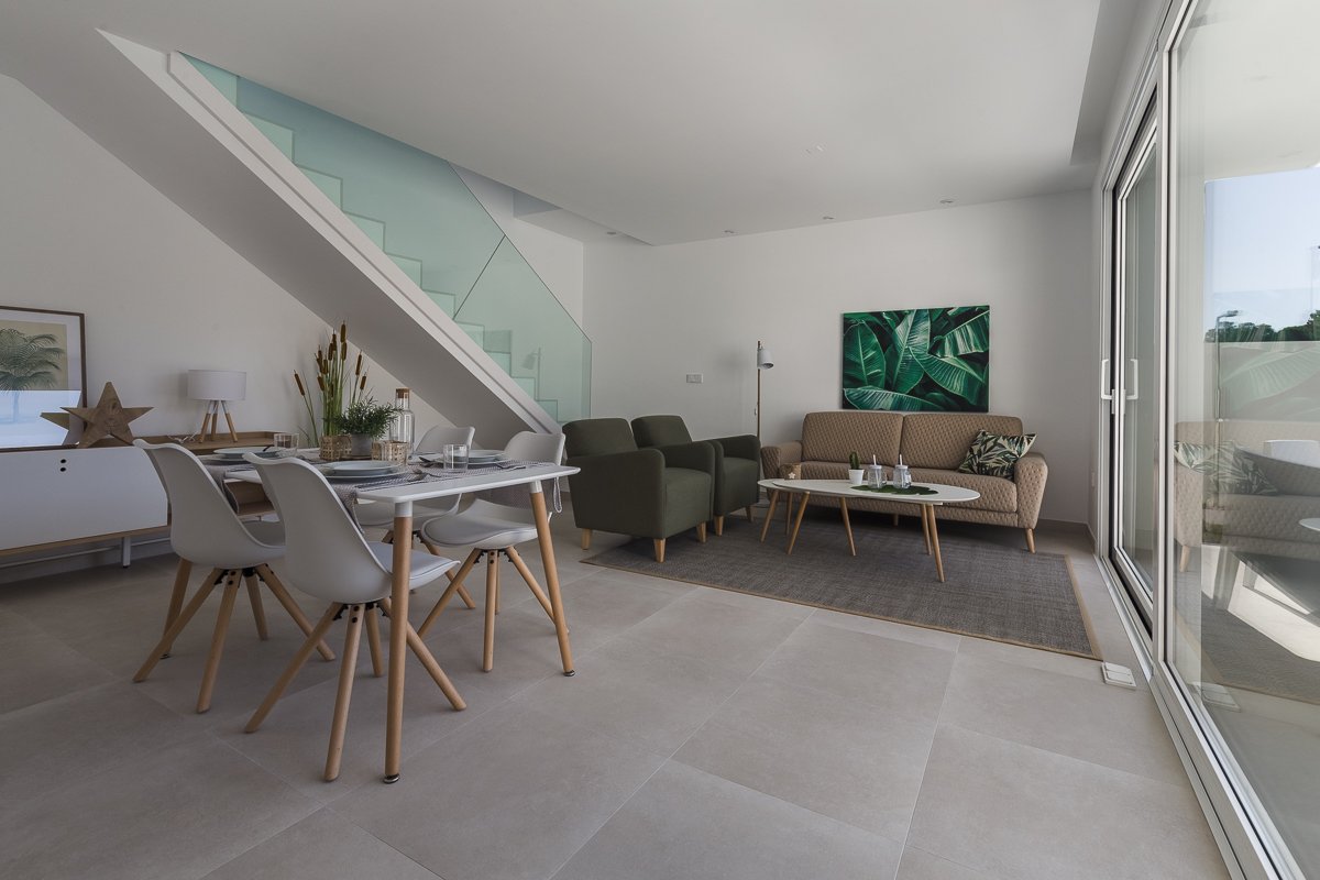 Dette projekt består af 11 villaer, beliggende i Santiago de la Ribera. Ejendommene er designet i en moderne stil og tilbyder adskillige planløsninger, alle med 3 soveværelser, men med mulighed for at lave 4.