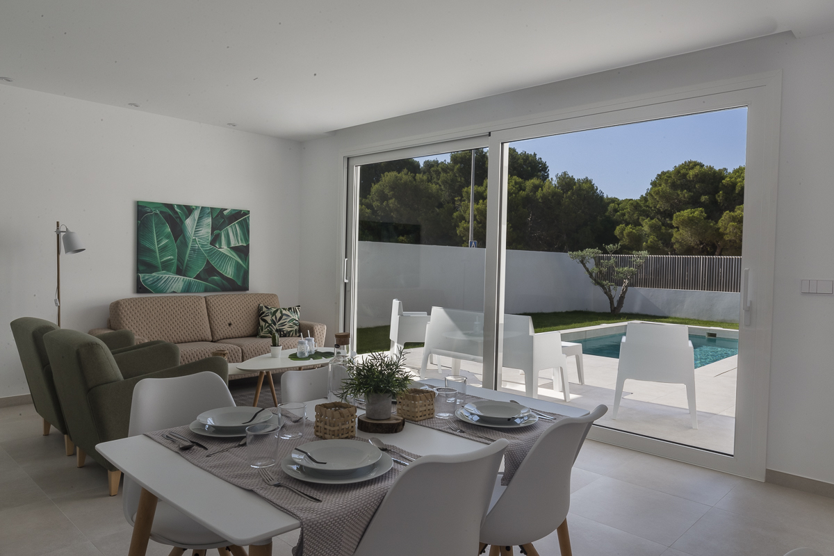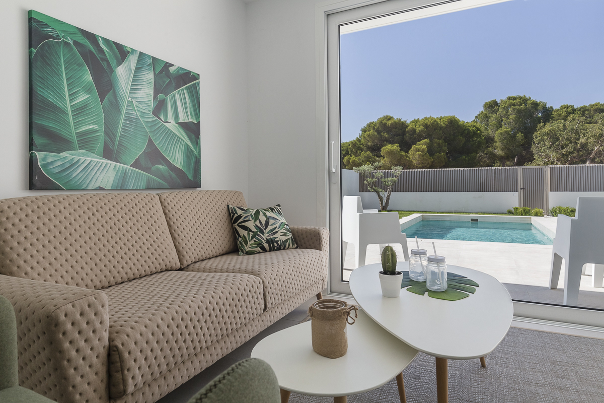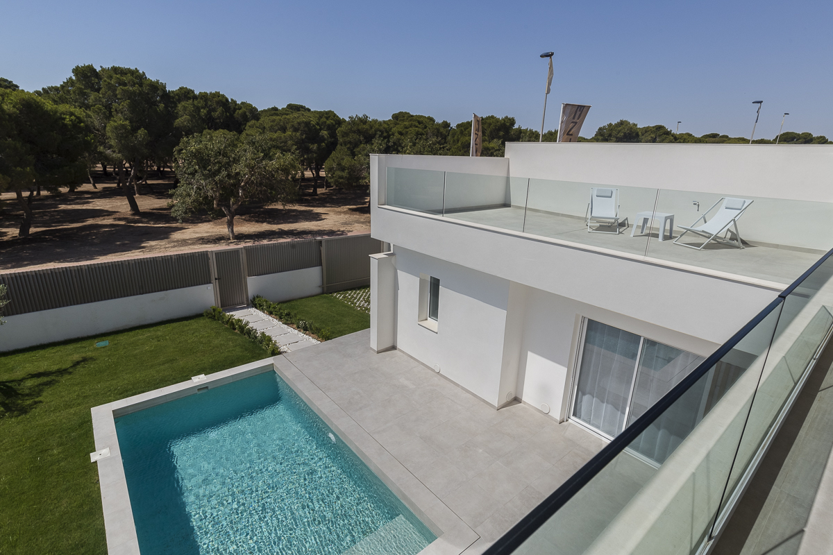 Villaerne leveres med porcelænsgulv, aluminiumsdetaljer, aircondition, køkken med hvidevarer, solcellepaneler og privat swimmingpool med forinstallation af blandt andet varmepumpe.