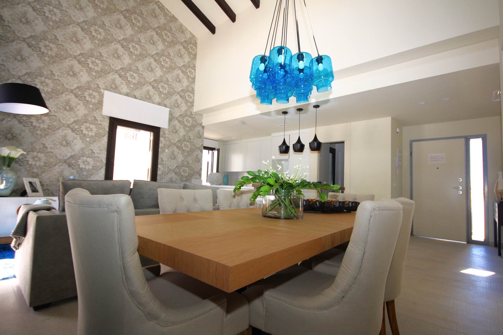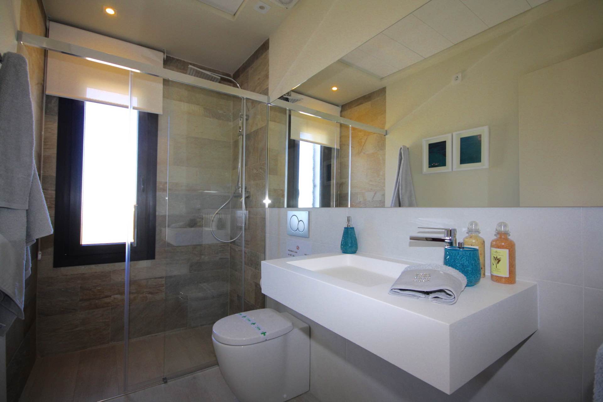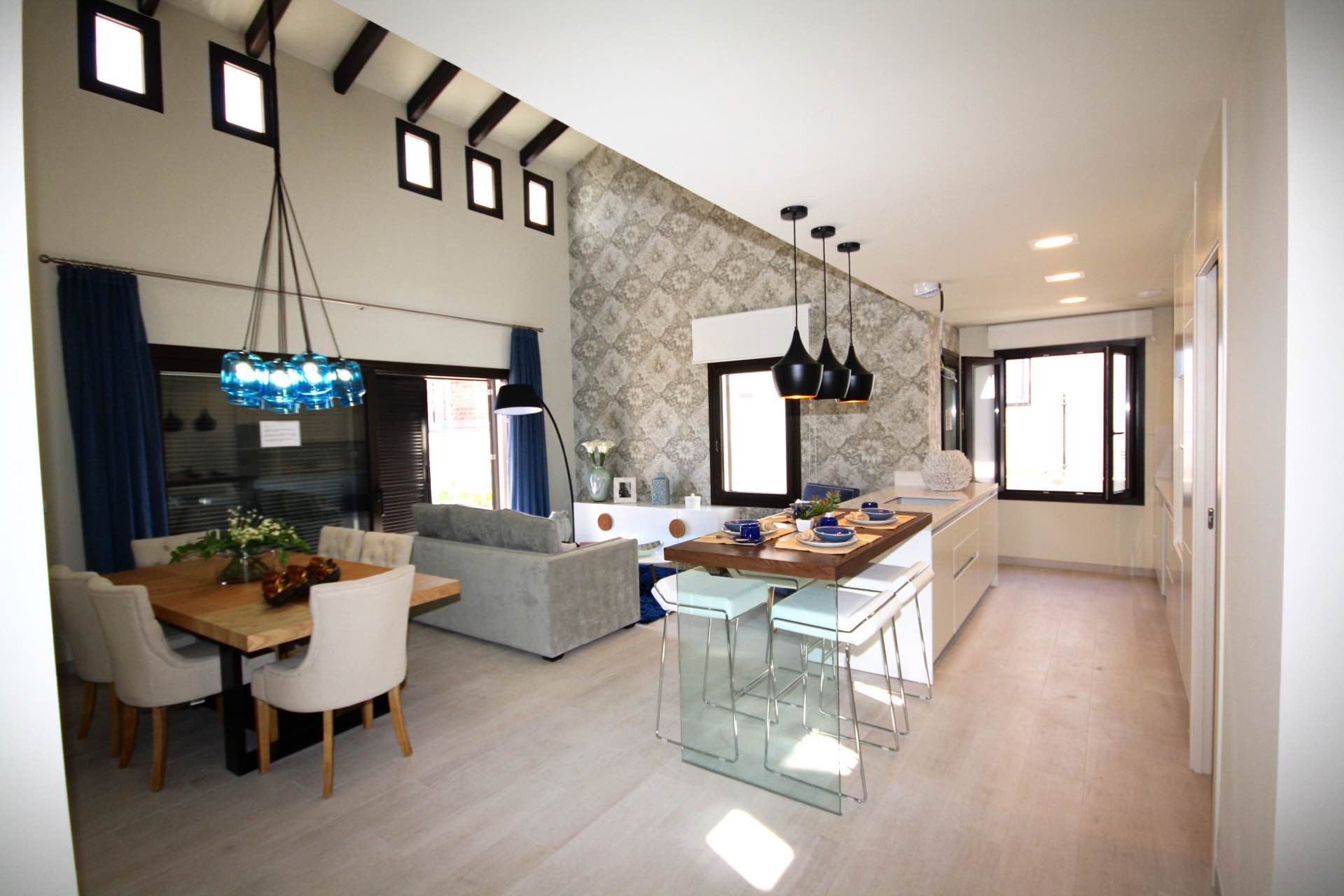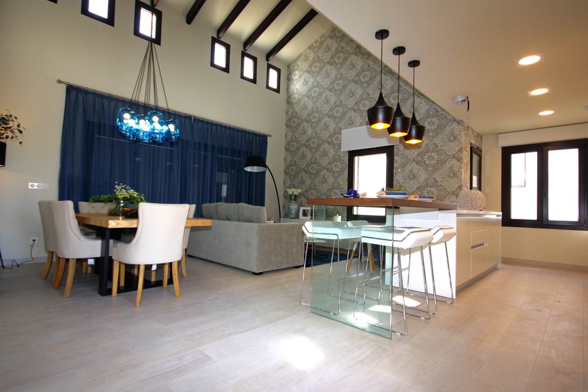 På La Finca Golf finder du denne smukke villa. Villaen tilbyder 3 soveværelser med dobbeltsenge og 2 badeværelser, det store soveværelse har en-suite badeværelse. Arkitekturen er traditionel spansk stil på og interiøret er i førsteklasses materialer. Store vinduer ud til terrassen lukker masser af naturligt lys ind i den rummelige stue og åbne køkken. Villaen har privat parkeringsplads. Den sydvendte terrasse ligger op ad den fælles swimmingpool. La Finca Golf tilbyder en af de mest populære 18-hullers golfbaner på Costa Blanca, i smukke omgivelser og har en betagende udsigt til de omkringliggende bjerge. Udover golfbanen finder du også et 5-stjernet hotel med spa-faciliteter og forskellige restauranter.