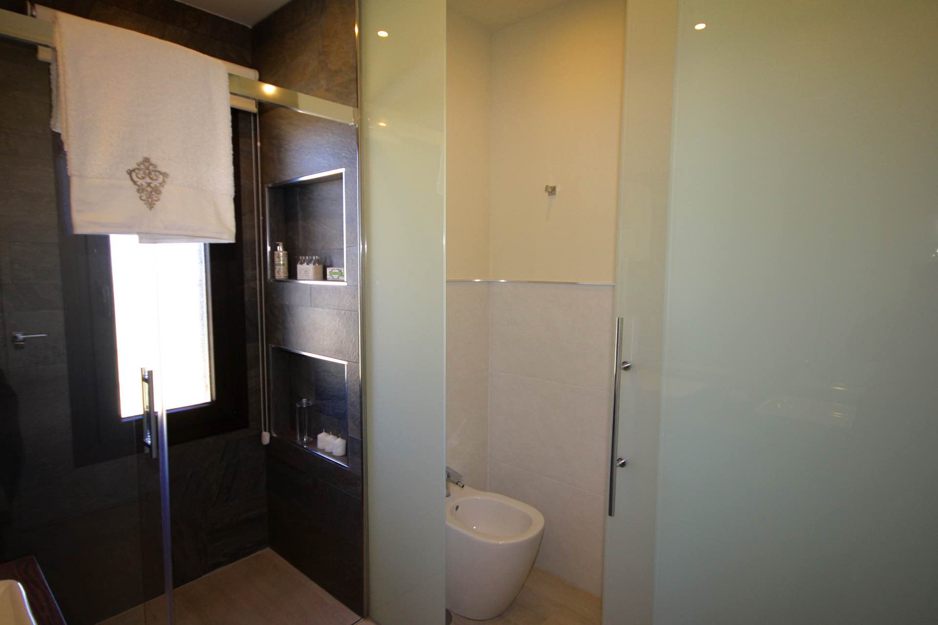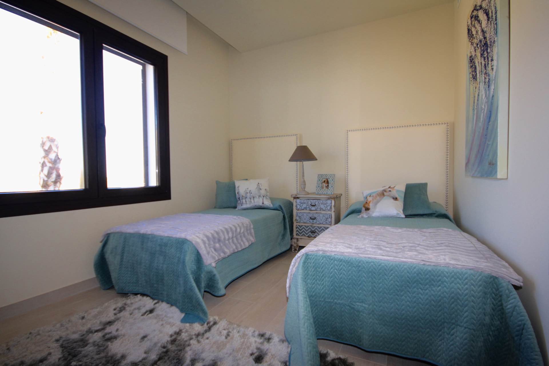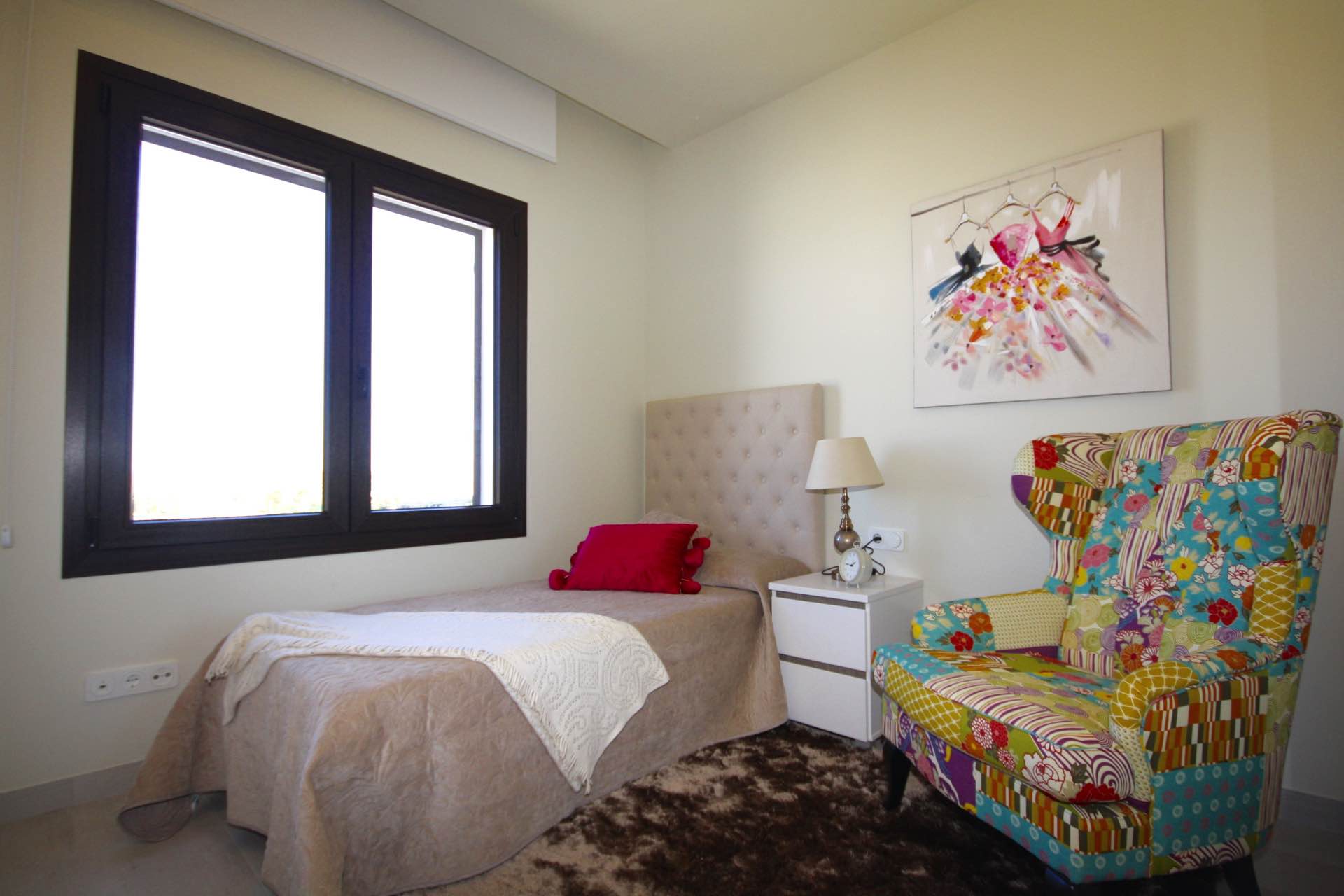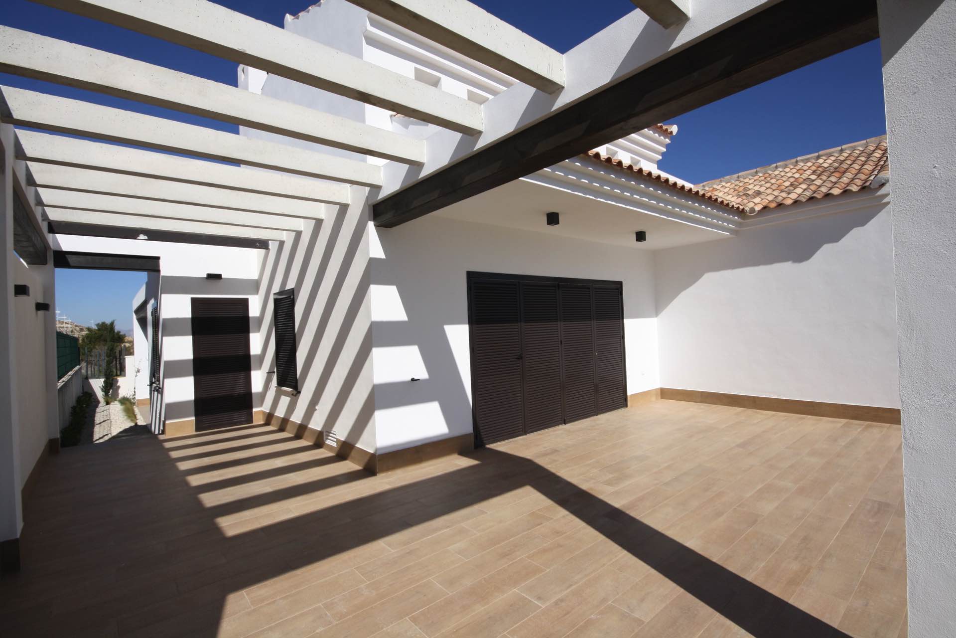 På La Finca Golf finder du denne smukke villa. Villaen tilbyder 3 soveværelser med dobbeltsenge og 2 badeværelser, det store soveværelse har en-suite badeværelse. Arkitekturen er traditionel spansk stil på og interiøret er i førsteklasses materialer. Store vinduer ud til terrassen lukker masser af naturligt lys ind i den rummelige stue og åbne køkken. Villaen har privat parkeringsplads. Den sydvendte terrasse ligger op ad den fælles swimmingpool. La Finca Golf tilbyder en af de mest populære 18-hullers golfbaner på Costa Blanca, i smukke omgivelser og har en betagende udsigt til de omkringliggende bjerge. Udover golfbanen finder du også et 5-stjernet hotel med spa-faciliteter og forskellige restauranter.