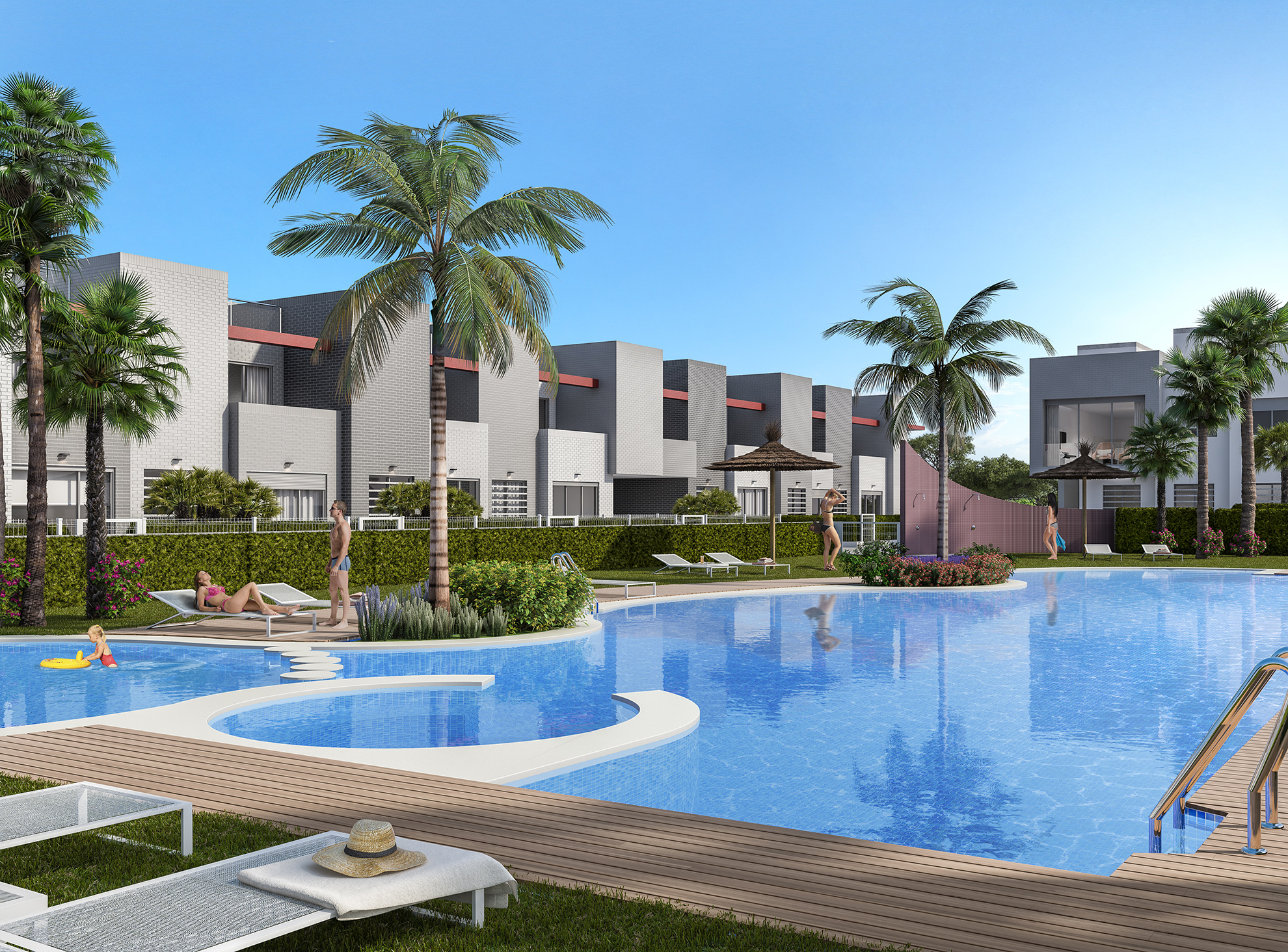 Opførelsen af komplekset er lavet i to højder, med mulighed for 2 eller 3 soveværelser, solterrasse eller have, alle huse har garage inkluderet i prisen og uovertruffen udsigt.