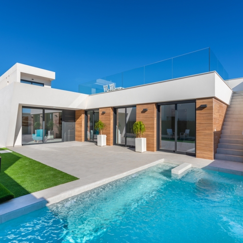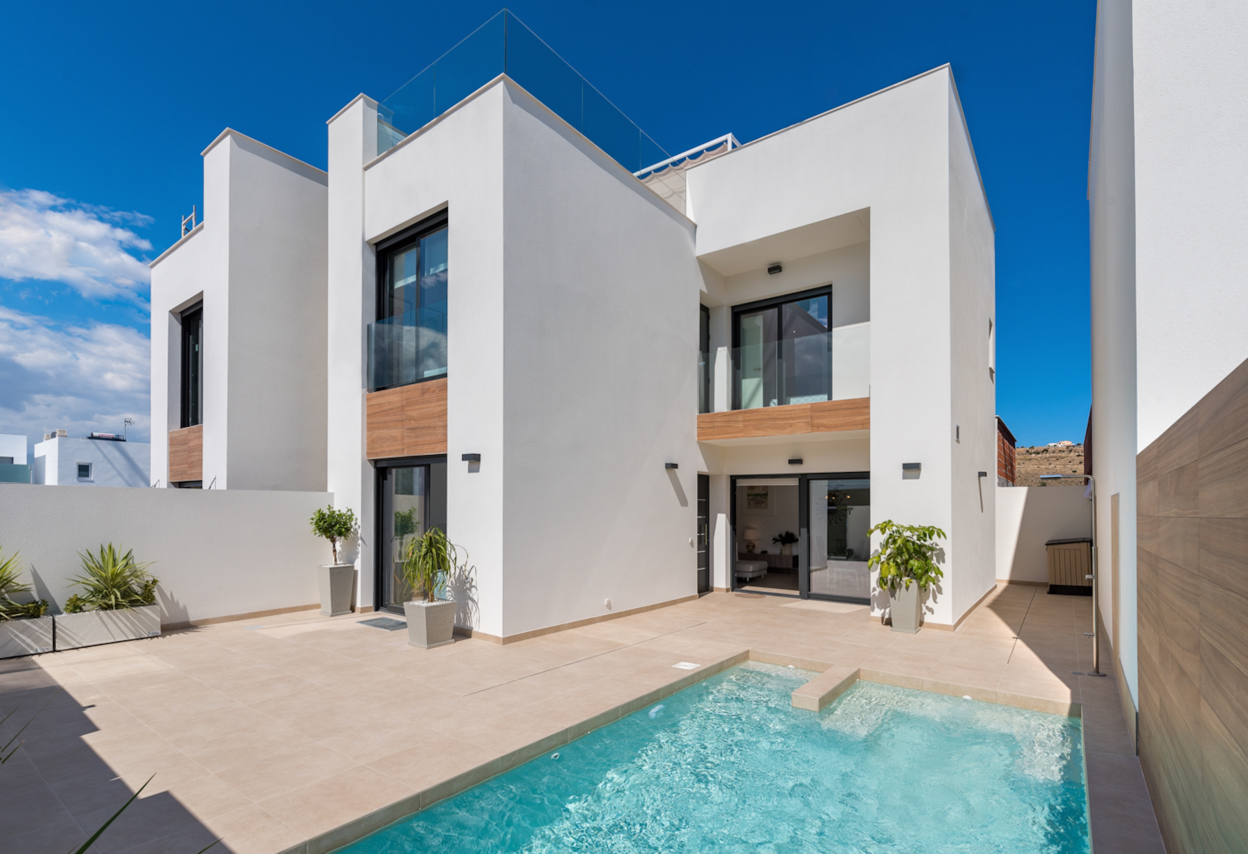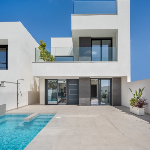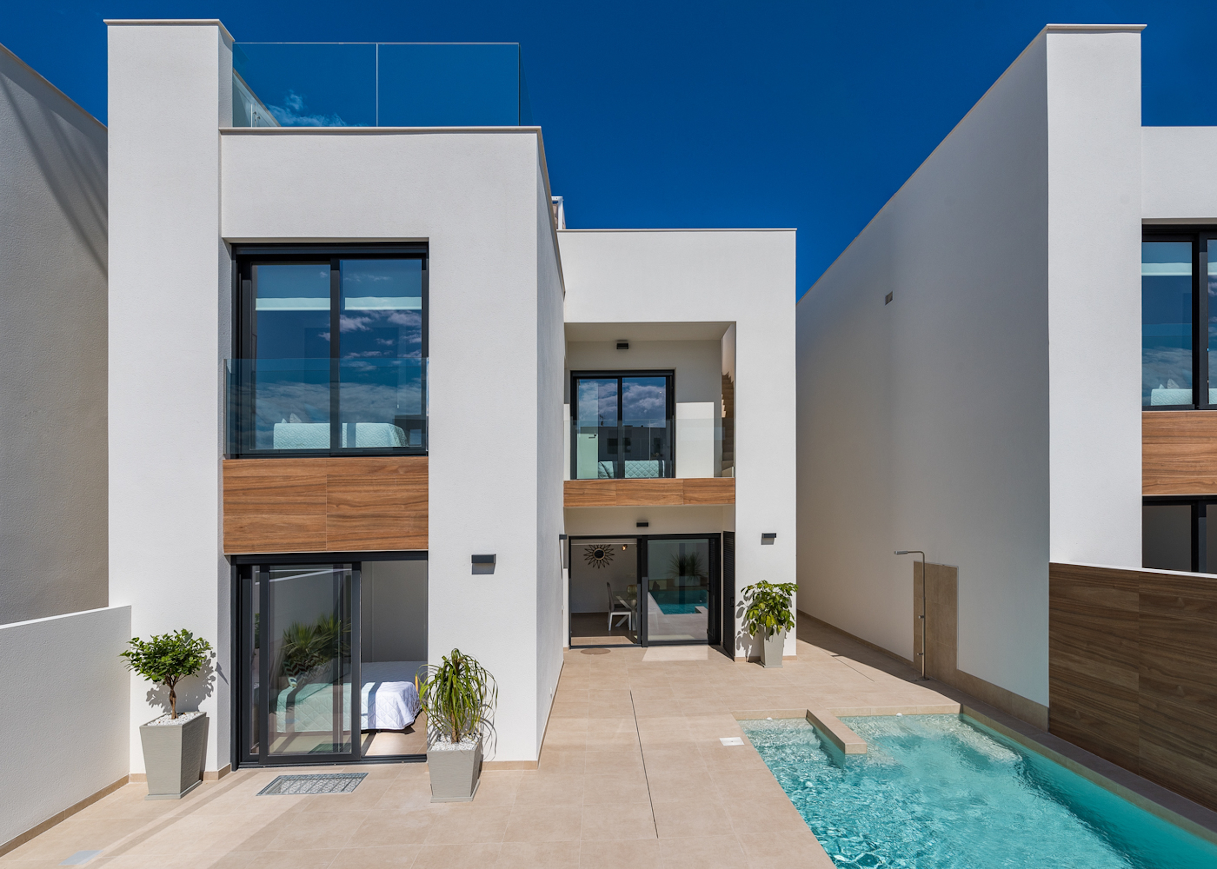 Benijofar er et ekstraordinært område på Costa Blanca, der er udstyret med alle faciliteter: 20 minutter væk fra Alicante lufthavn, tæt på strandene i Guardamar og golfbaner. Villaer i moderne stil, som består af en stue, 3 soveværelser (2 af dem med badeværelse i suite), møbleret køkken og 3 badeværelser. Privat terrasse og pool, parkeringsplads, have i middelhavsstil og to solarier med fantastisk udsigt.