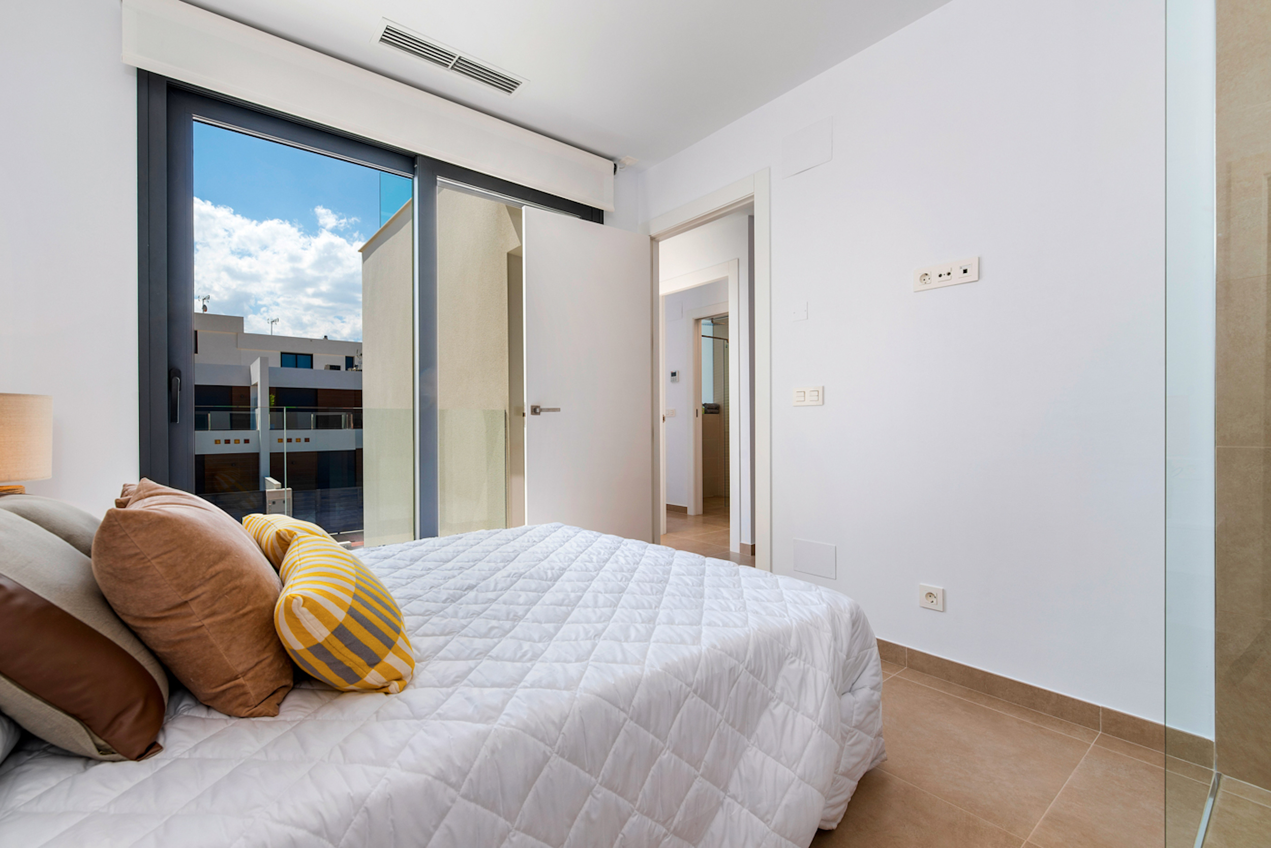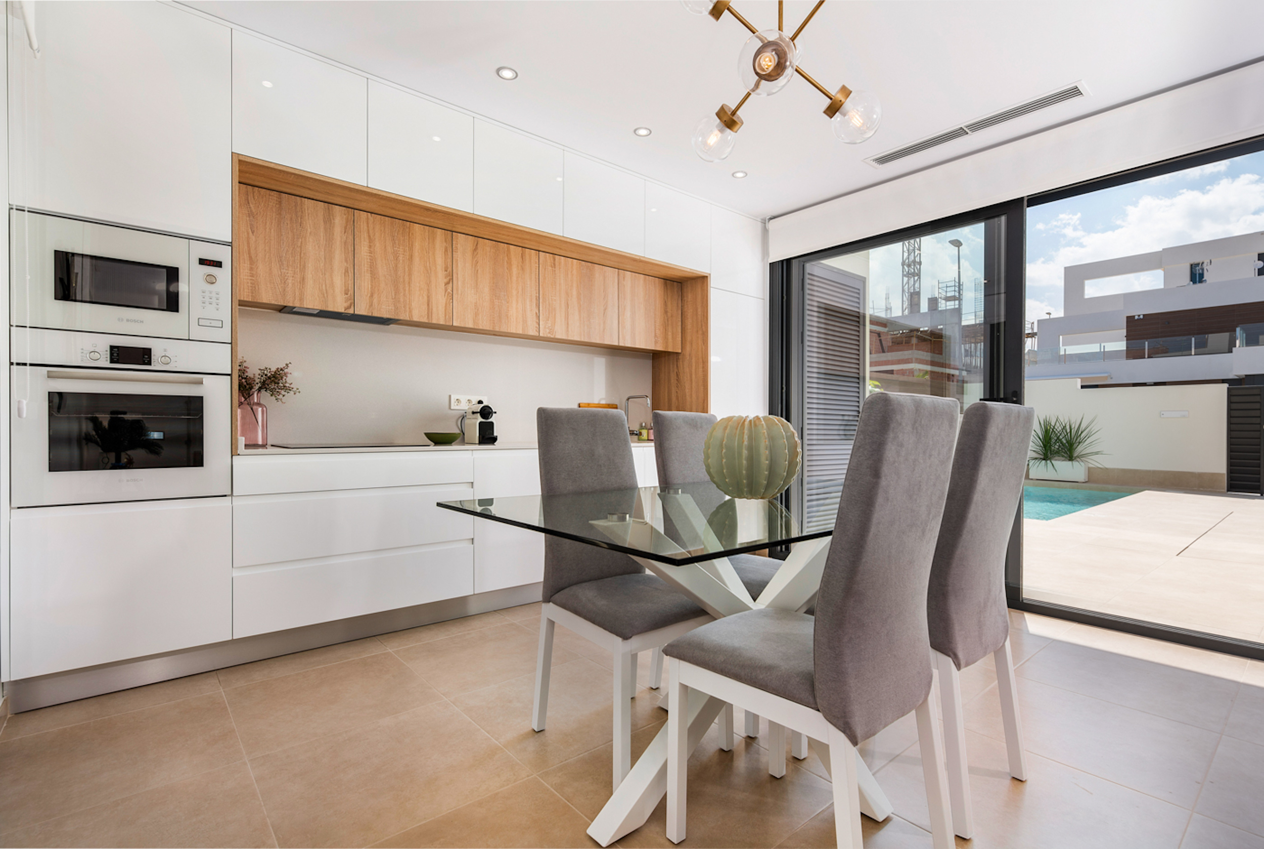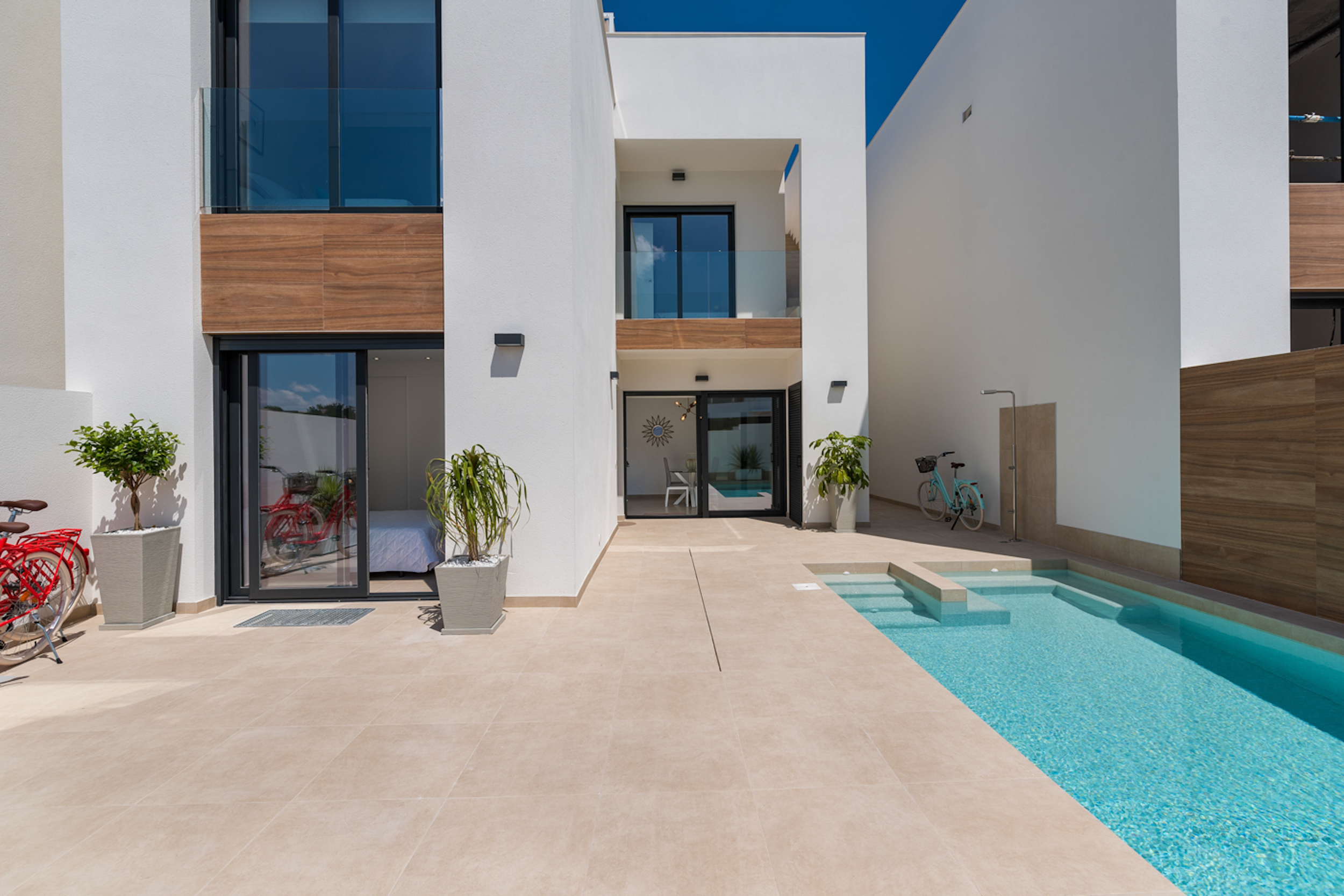 Benijofar er et ekstraordinært område på Costa Blanca, der er udstyret med alle faciliteter: 20 minutter væk fra Alicante lufthavn, tæt på strandene i Guardamar og golfbaner. Villaer i moderne stil, som består af en stue, 3 soveværelser (2 af dem med badeværelse i suite), møbleret køkken og 3 badeværelser. Privat terrasse og pool, parkeringsplads, have i middelhavsstil og to solarier med fantastisk udsigt.