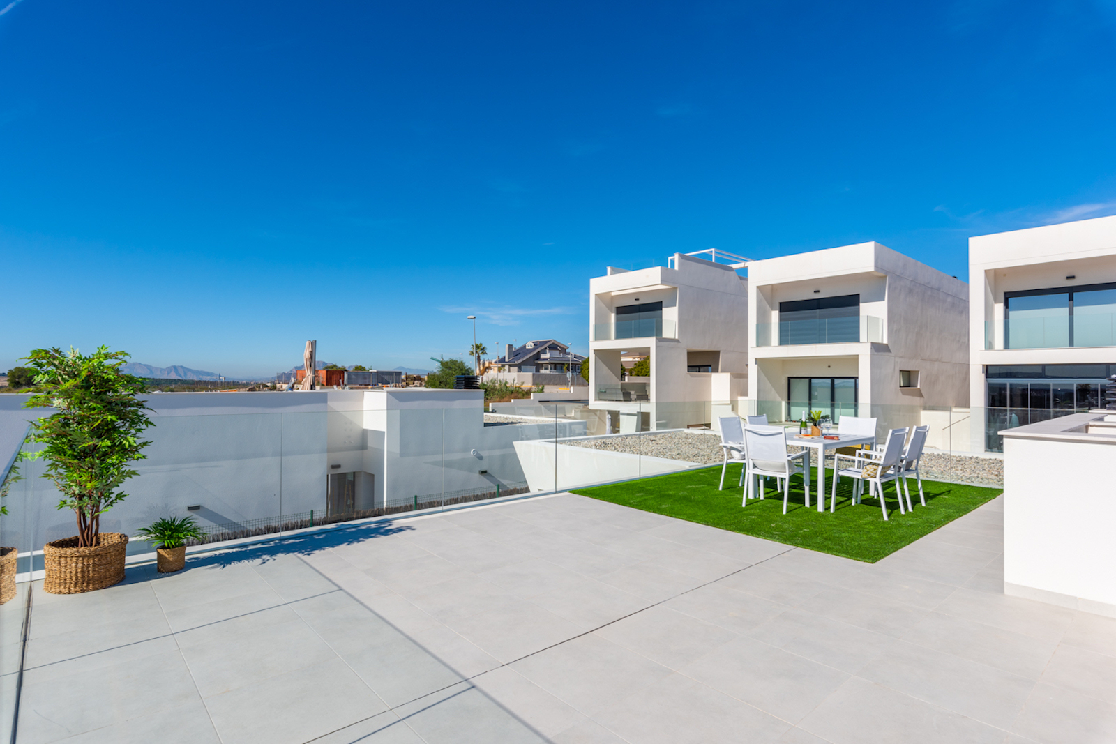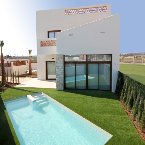 Moderne ejendomme, der består af en rummelig stue, spisestue med åbent køkken, 3 soveværelser og 2 badeværelser (et med eget badeværelse). Hver privat grund er fordelt med terrasse, parkeringsplads, egen swimmingpool og have i middelhavsstil, hver villa har også et solarium med udsigt.