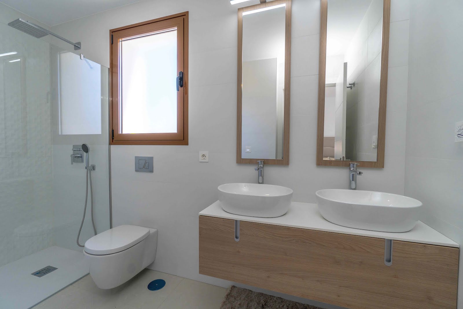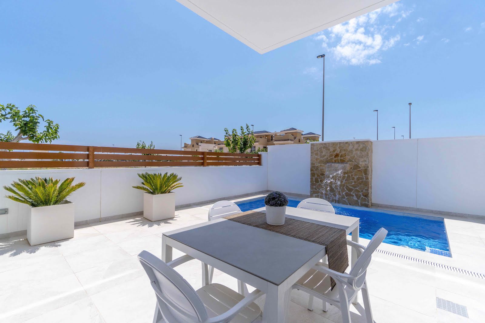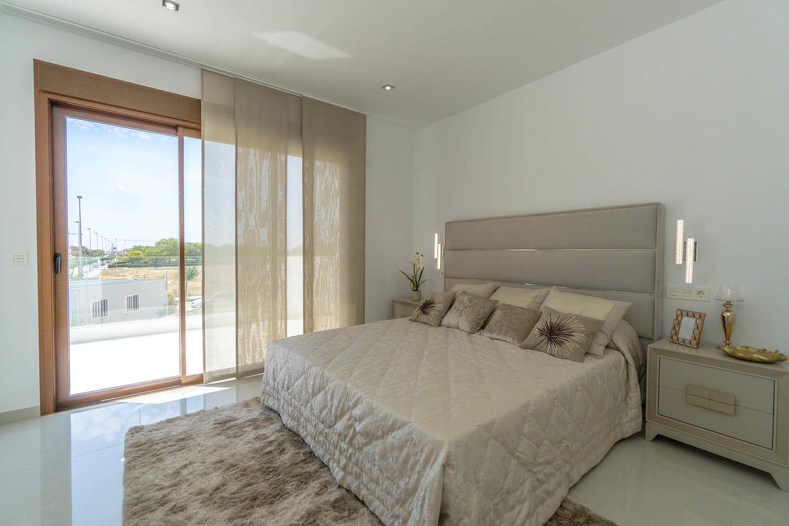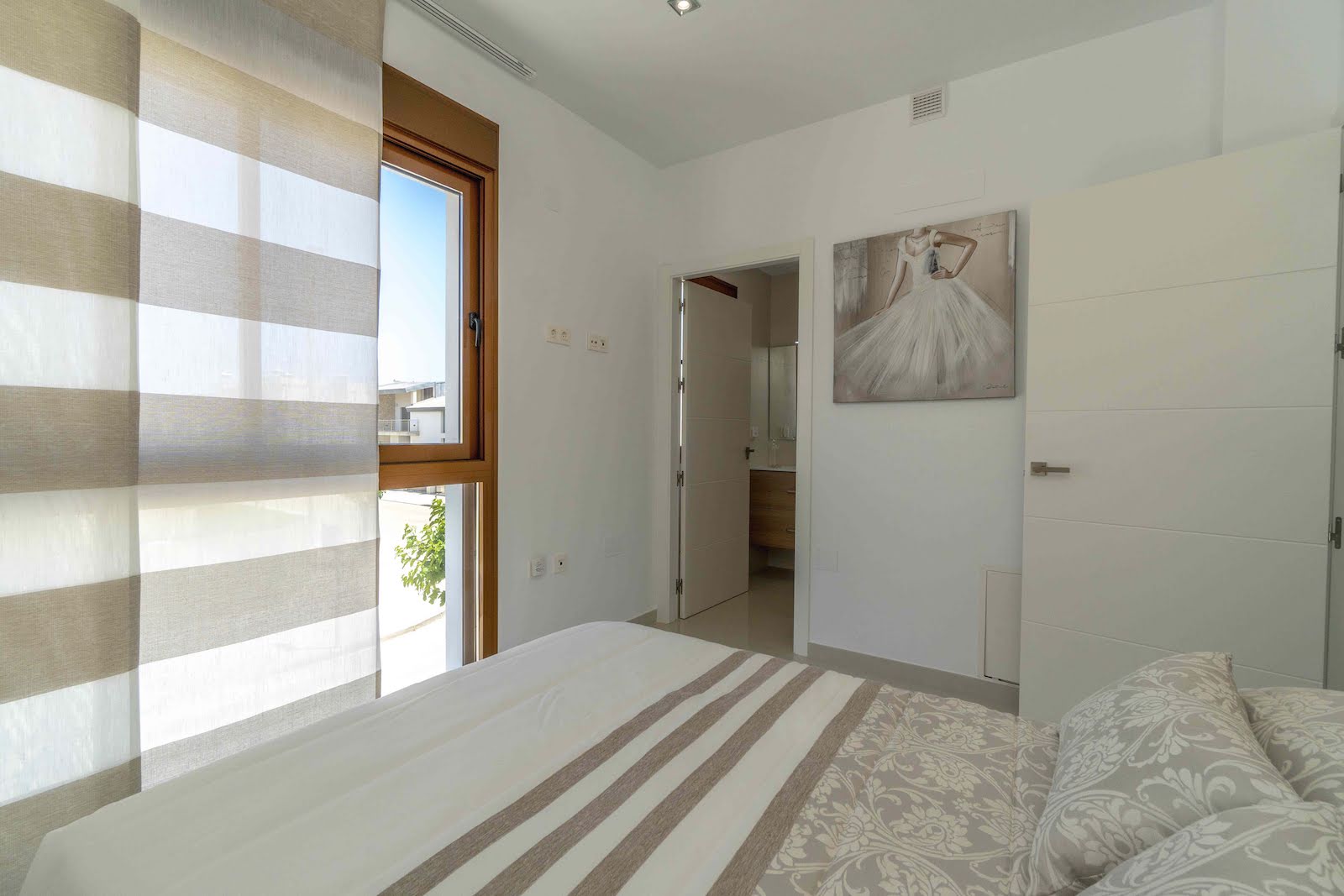 Disse moderne villaer har 3 rummelige soveværelser og 3 fuldt udstyrede badeværelser. I stueetagen finder du et soveværelse med indbygget garderobe, et badeværelse og en stor stue-spisestue forbundet til et åbent køkken med udsigt over den private pool.