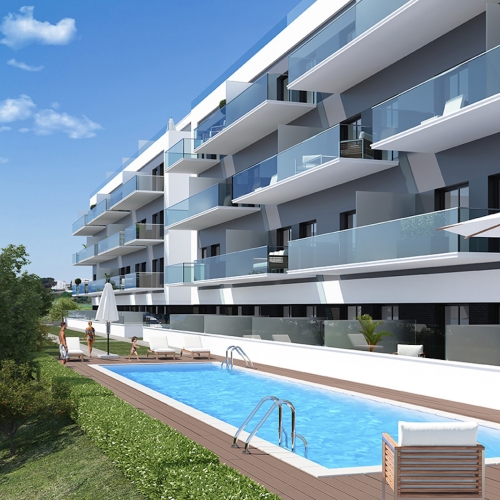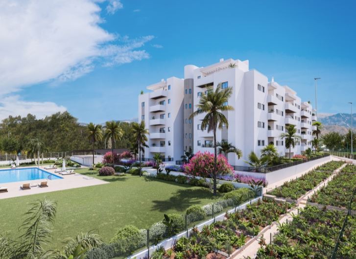 Nyt projektsalg bestående af 84 lejligheder med to eller tre soveværelser og to badeværelser. Til hver lejlighed hører desuden en privat have/grund på 3×3 meter. og fællesområde med grønne områder og saltvandspool. Projektet er beliggende kun 500 meter fra stranden i Algarrobo. Lejligheden ligger kun 35 minutter i bil fra Malaga lufthavn.