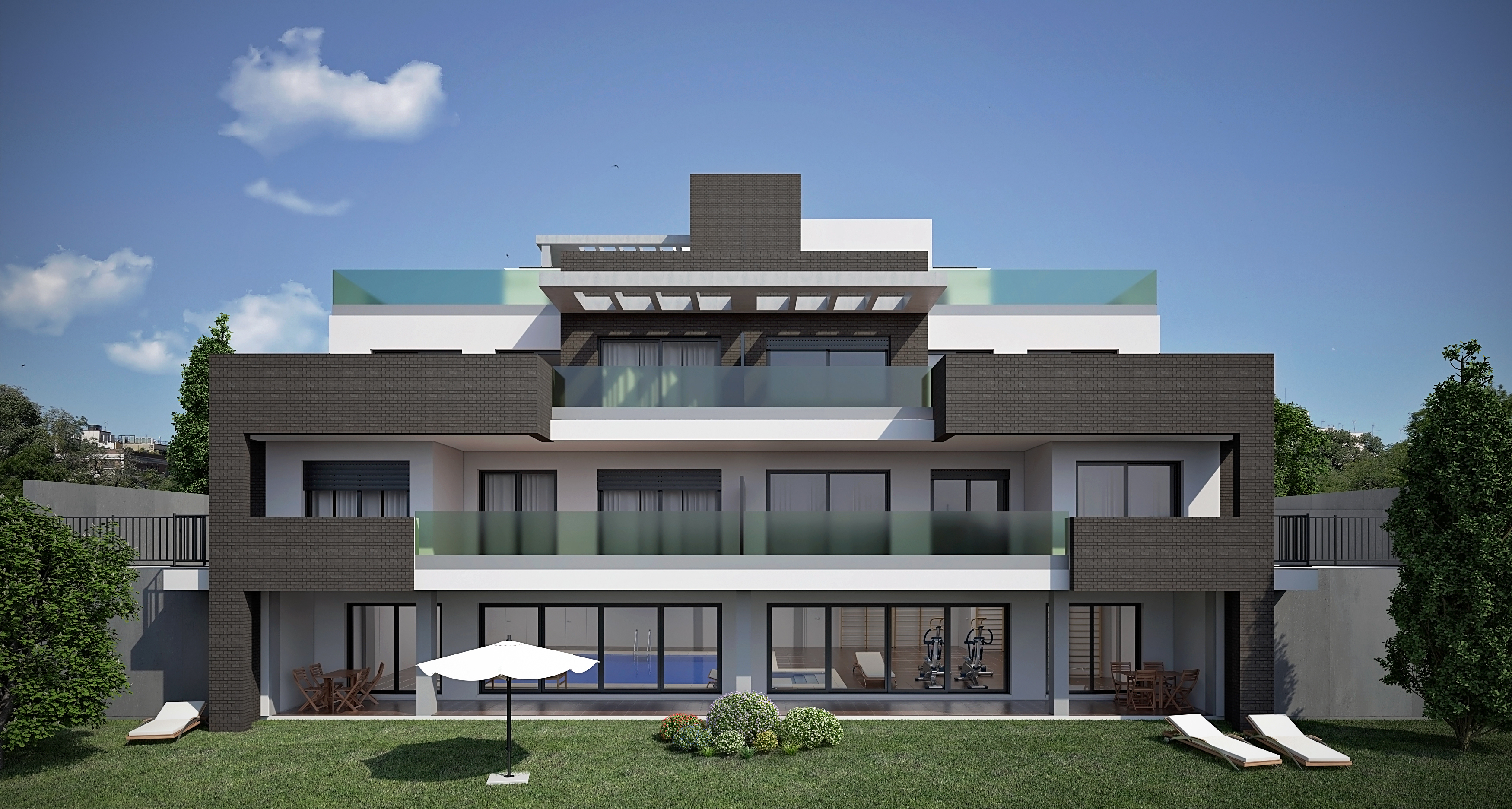 Boligen har en indendørs pool som man kan nyde på ethvert tidspunkt af året, og et stort motionscenter med sportsudstyr. For endnu mere komfort omfatter de 7 boliger fuldt møbleret køkken udstyret med apparater af høj kvalitet og centraliseret klimaanlæg.