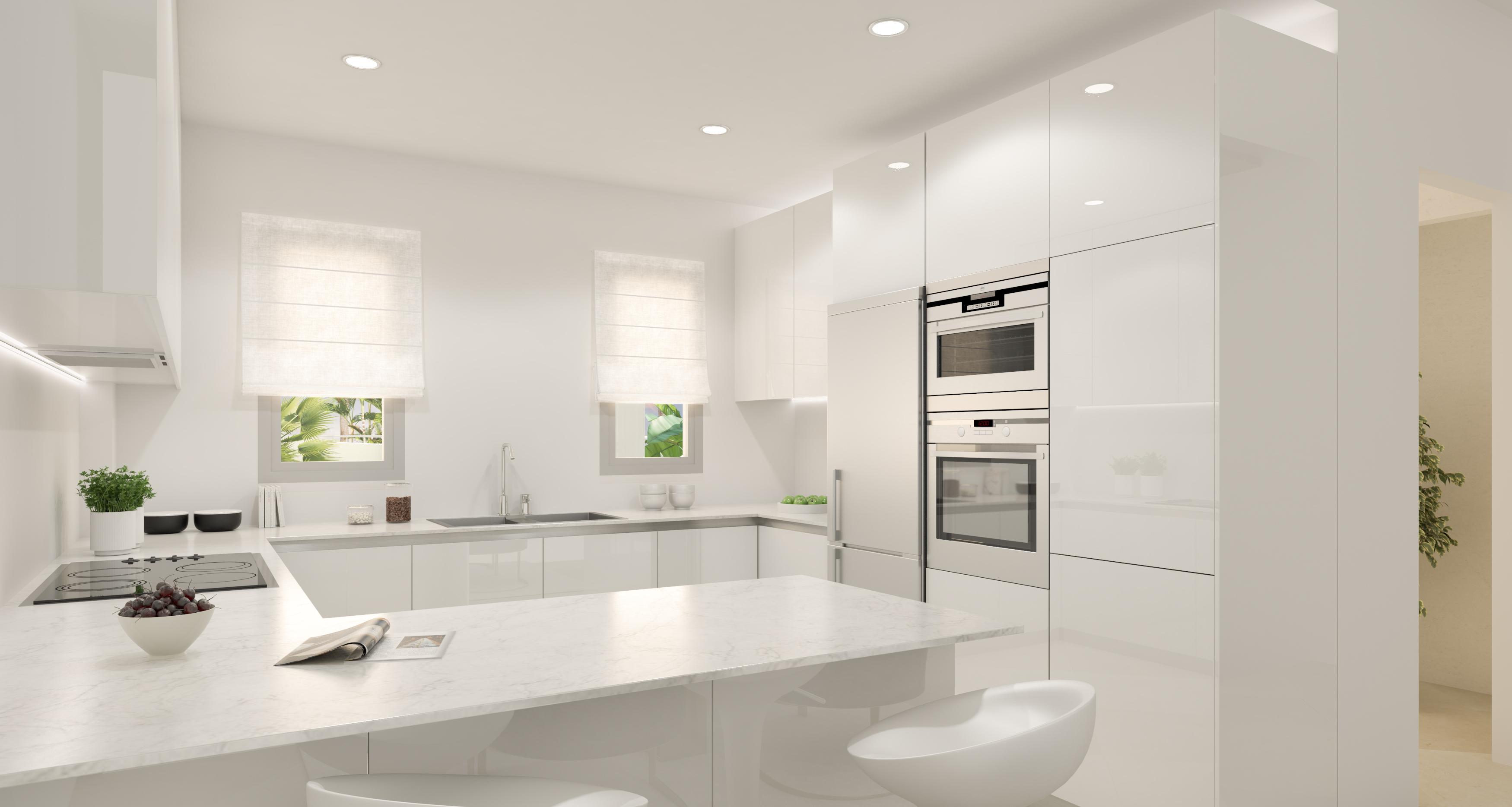 Konstrueret på 4 niveauer omfatter boligerne en stor åben planløsning, fuldt udstyrede køkkener med apparater fra Bosch og sømløs adgang med gulv til loft vinduer til en udendørs terrasse og et privat have område.